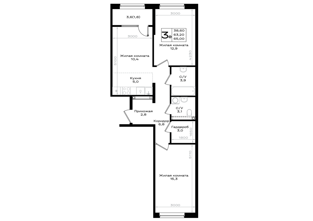 3-комнатная (65м2)