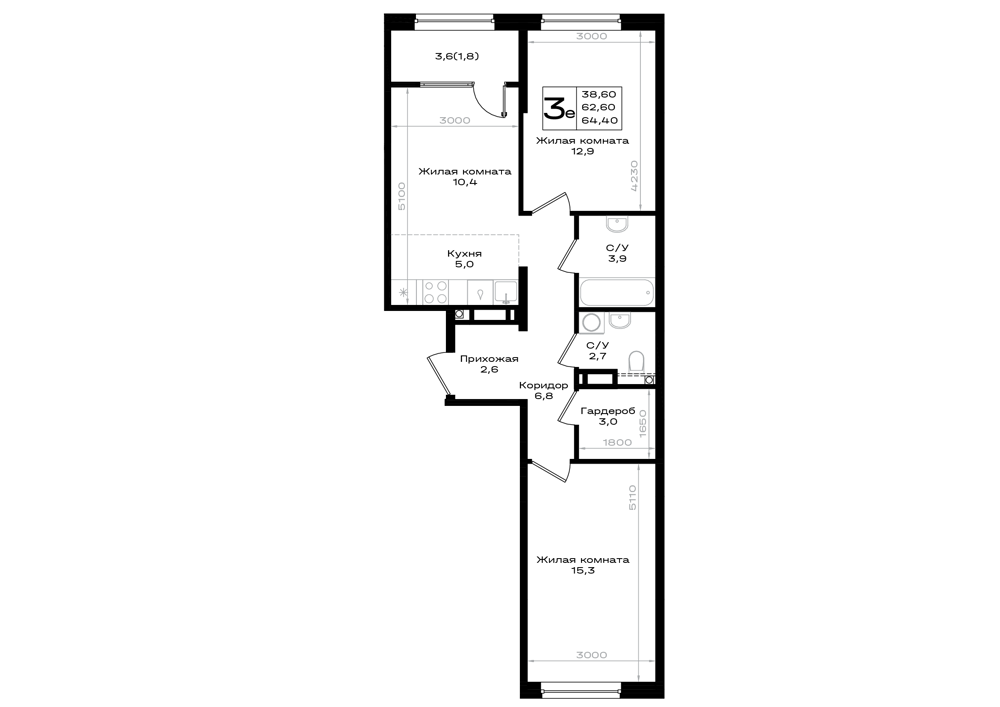 3-комнатная (64.4м2)