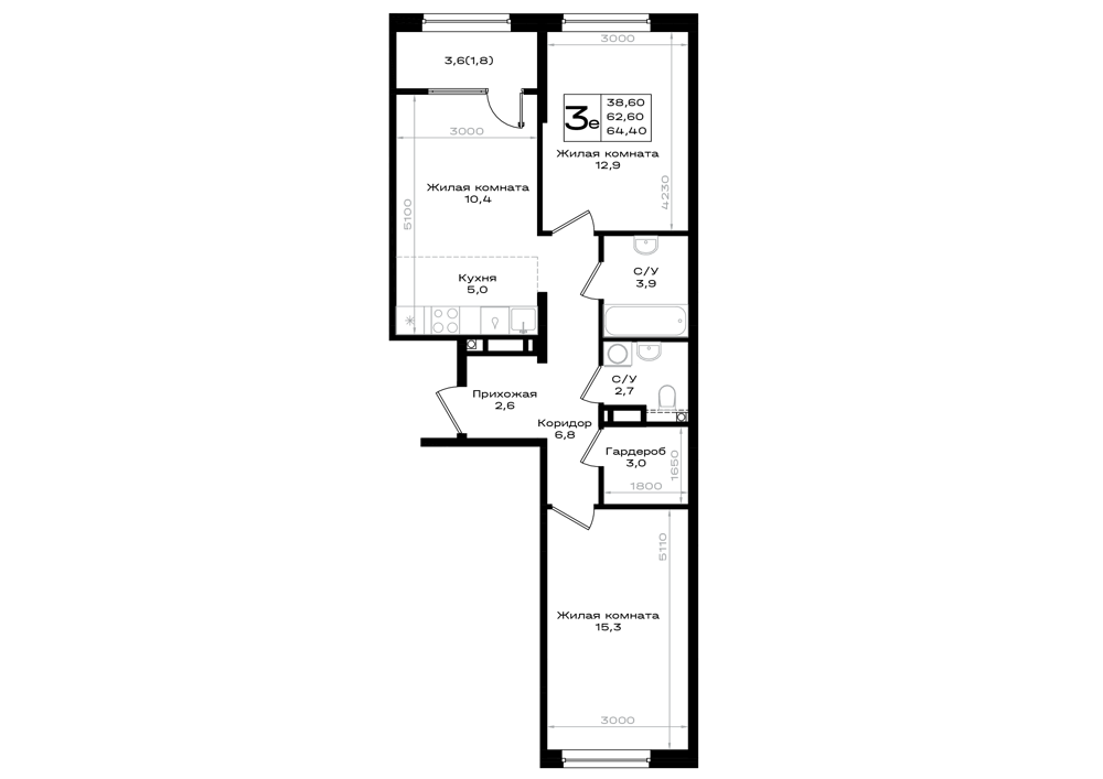 3-комнатная (64.4м2)