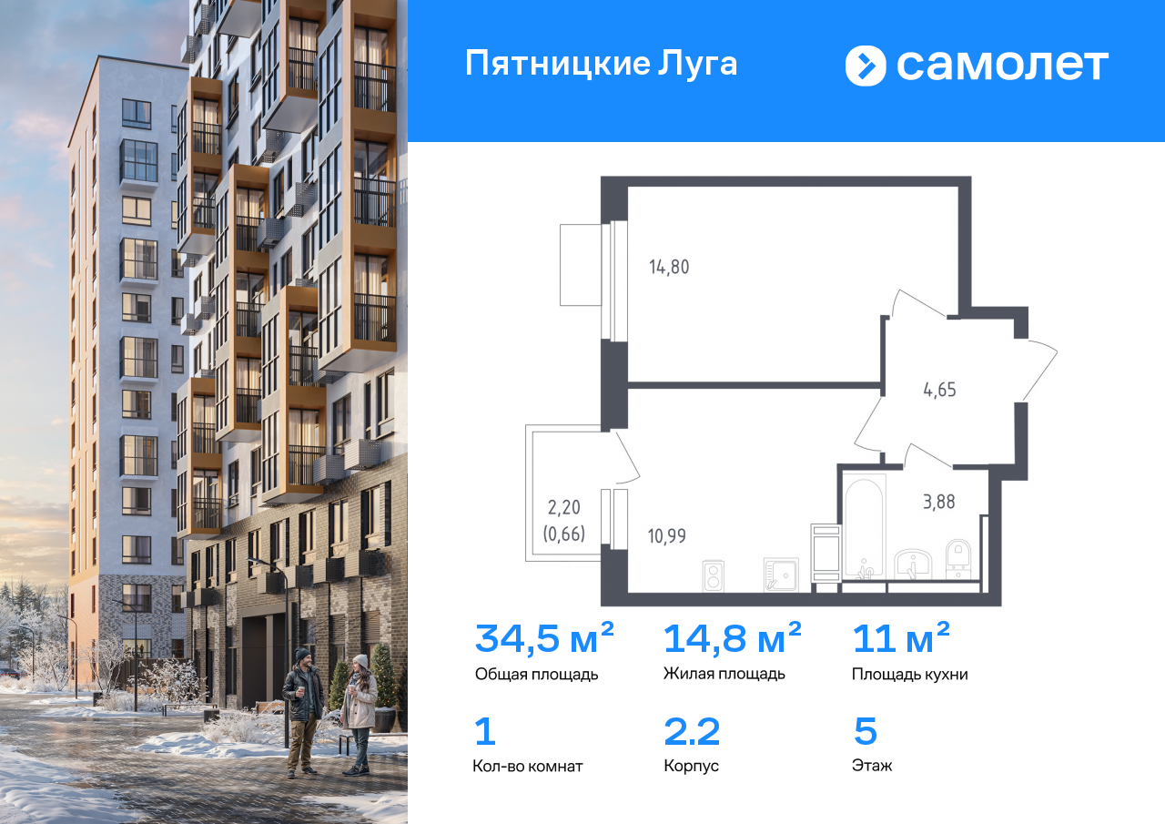 Однокомнатные квартиры в ЖК «Пятницкие Луга»
