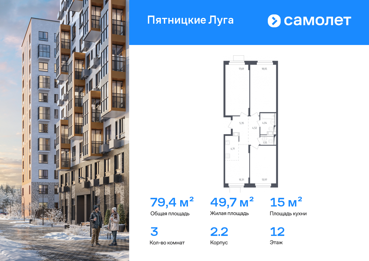 Трехкомнатные квартиры в ЖК «Пятницкие Луга»