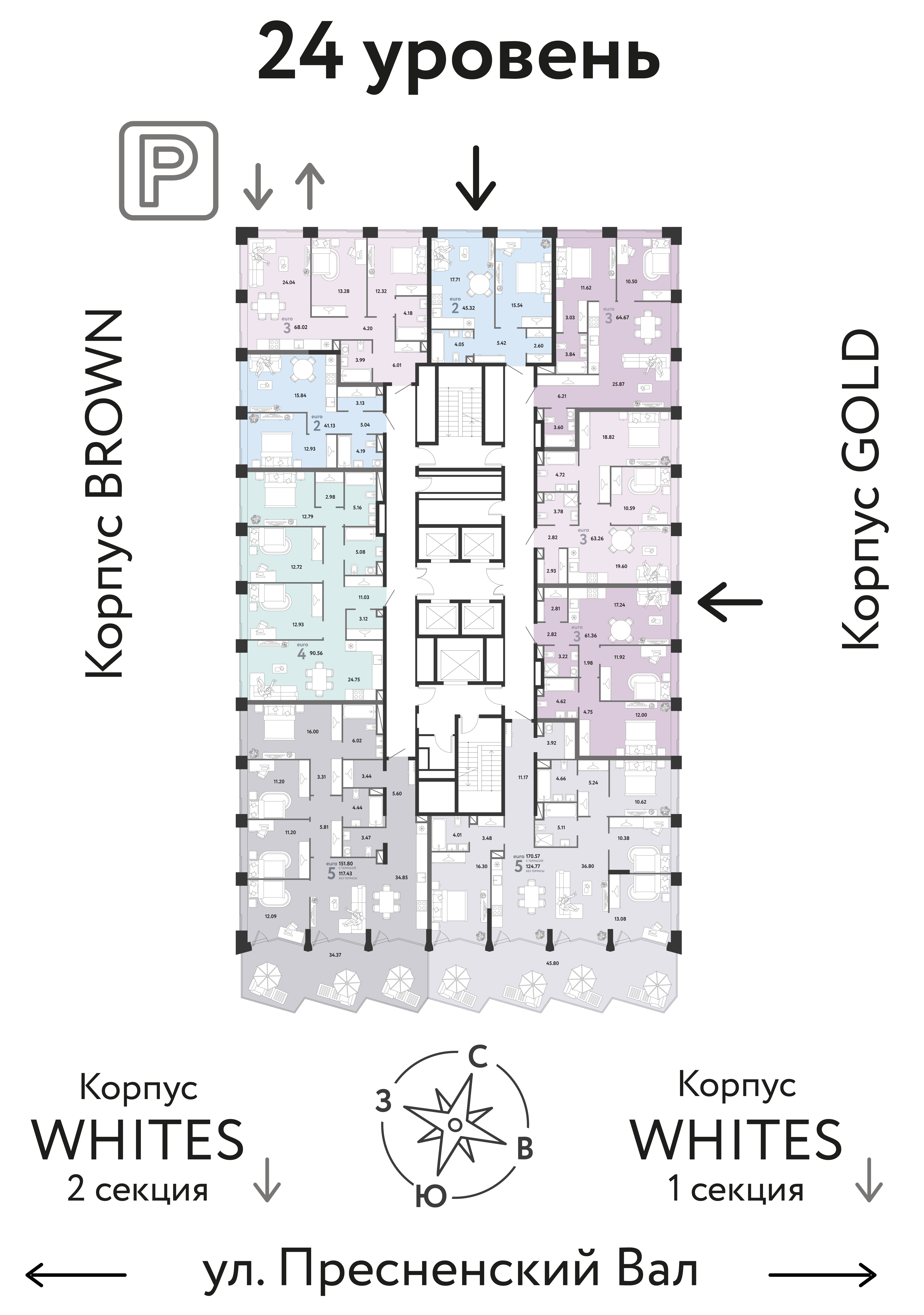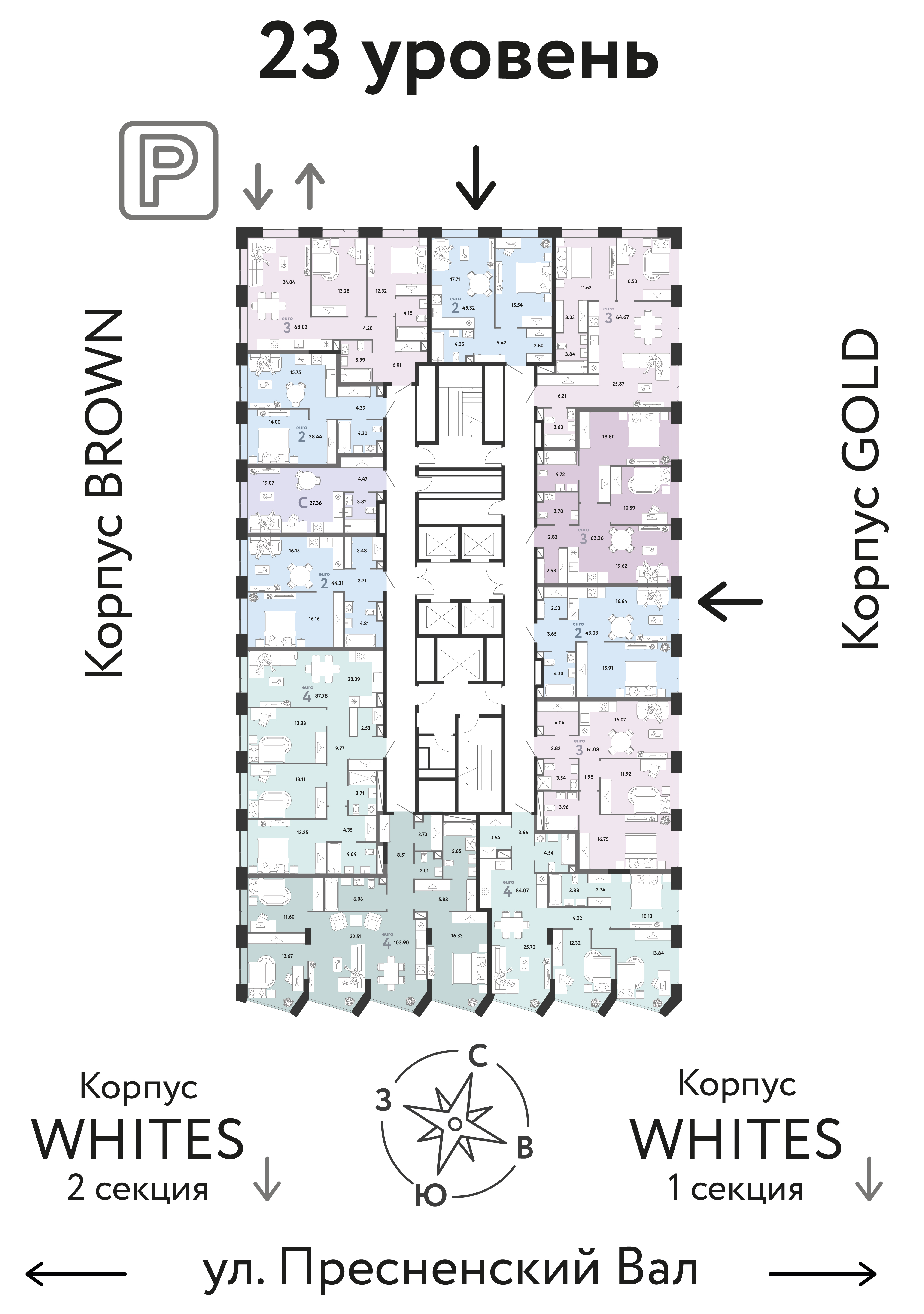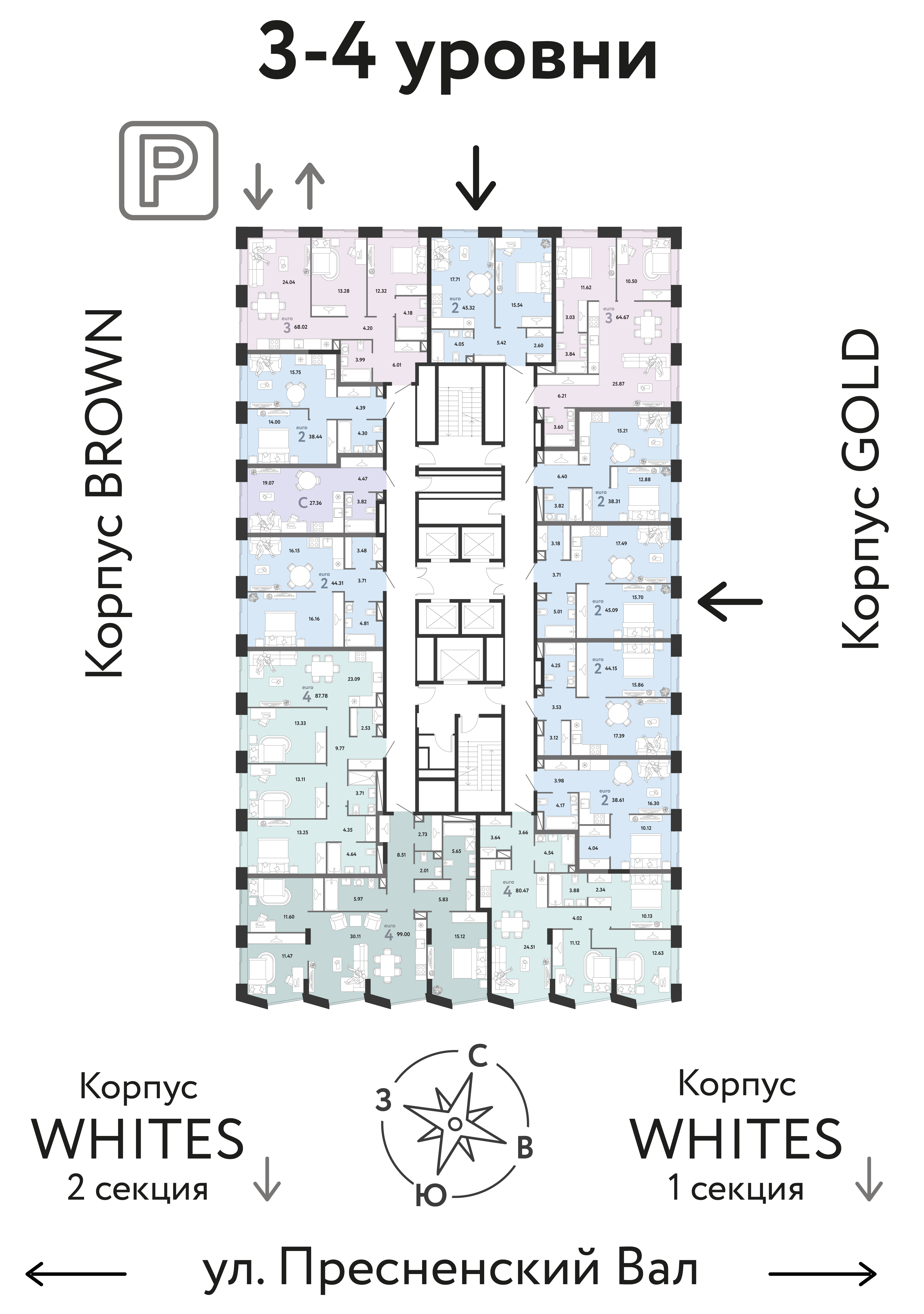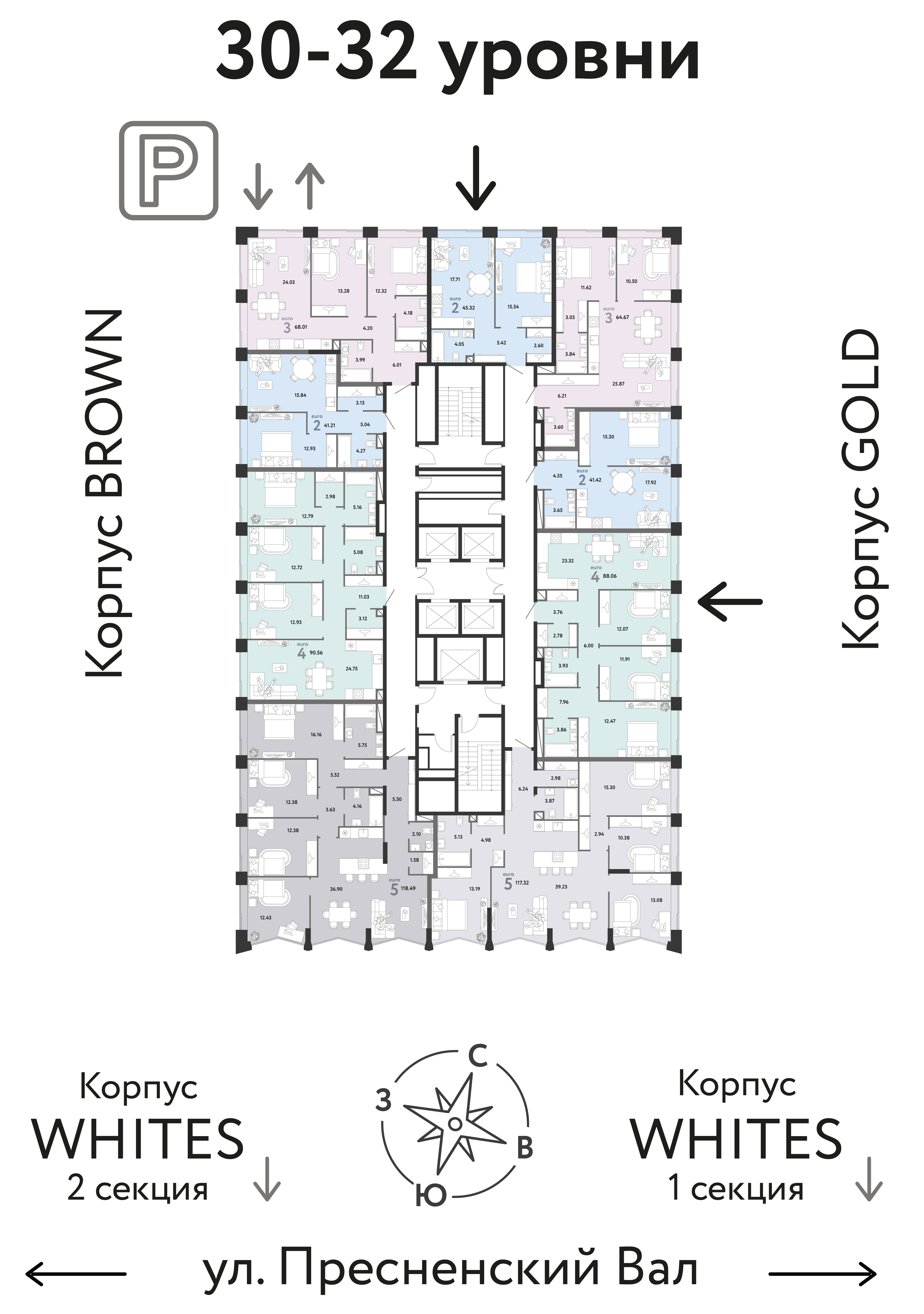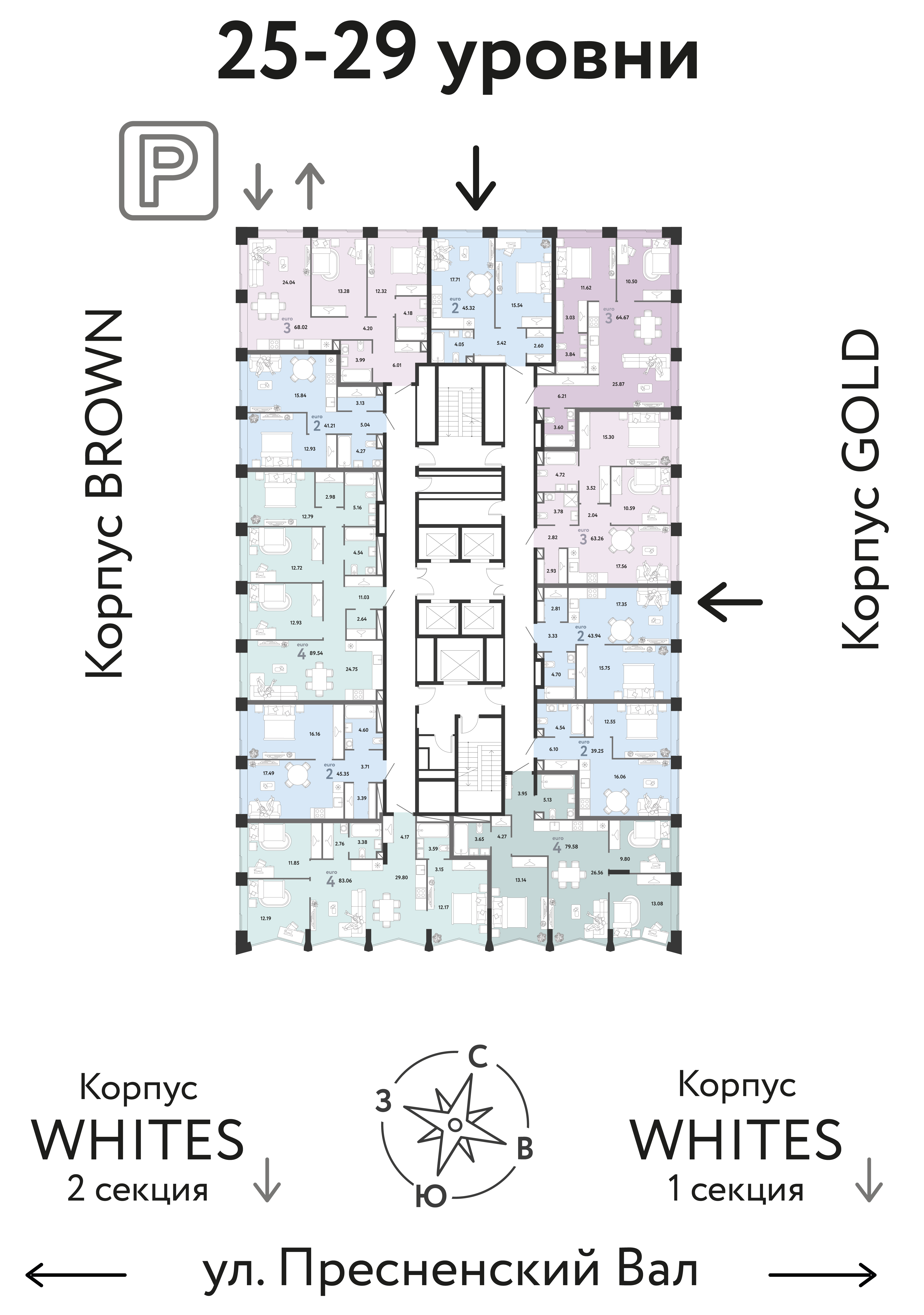 - Просторные кладовые на 3-8 жилых этажах и в подземном паркинге