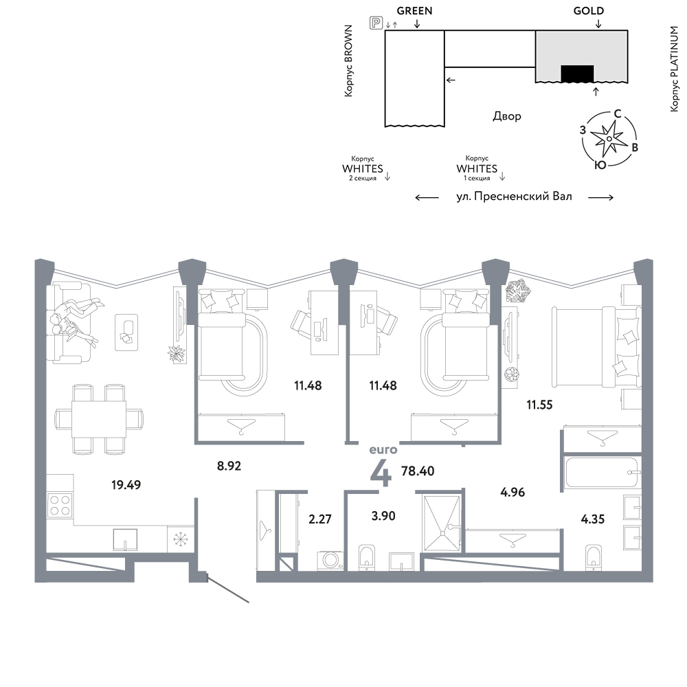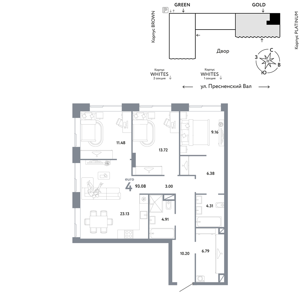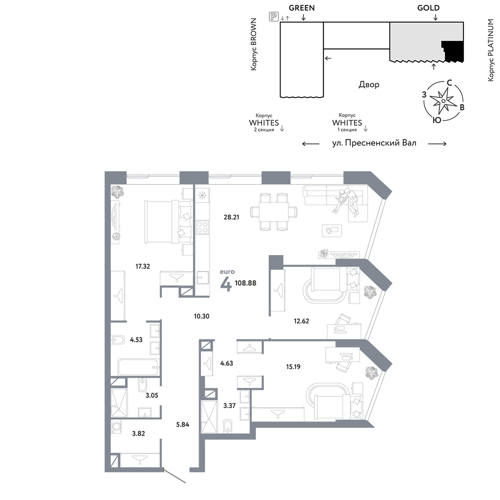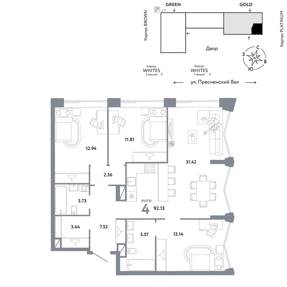 - Квартиры представлены в отделке white box и без отделки