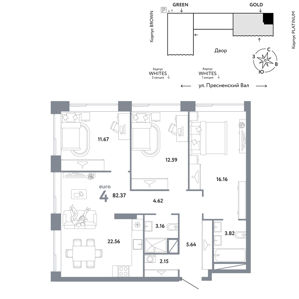 Всем жителям будет доступна дополнительная опция — клубная гостиная — это доступное для всех жильцов многофункциональное пространство с оборудованной кухней, зоной релакса с мягкой мебелью и спортивной зоной.