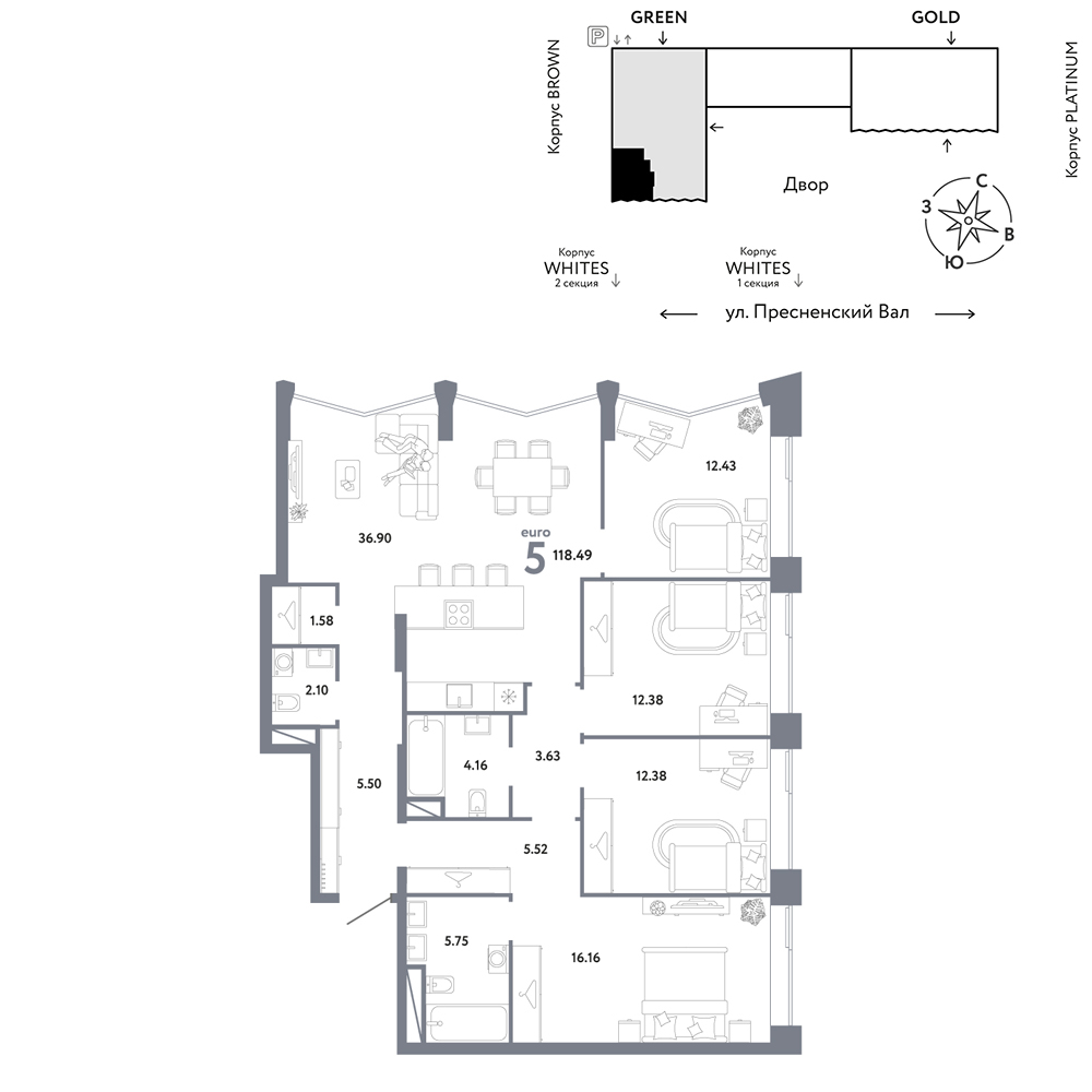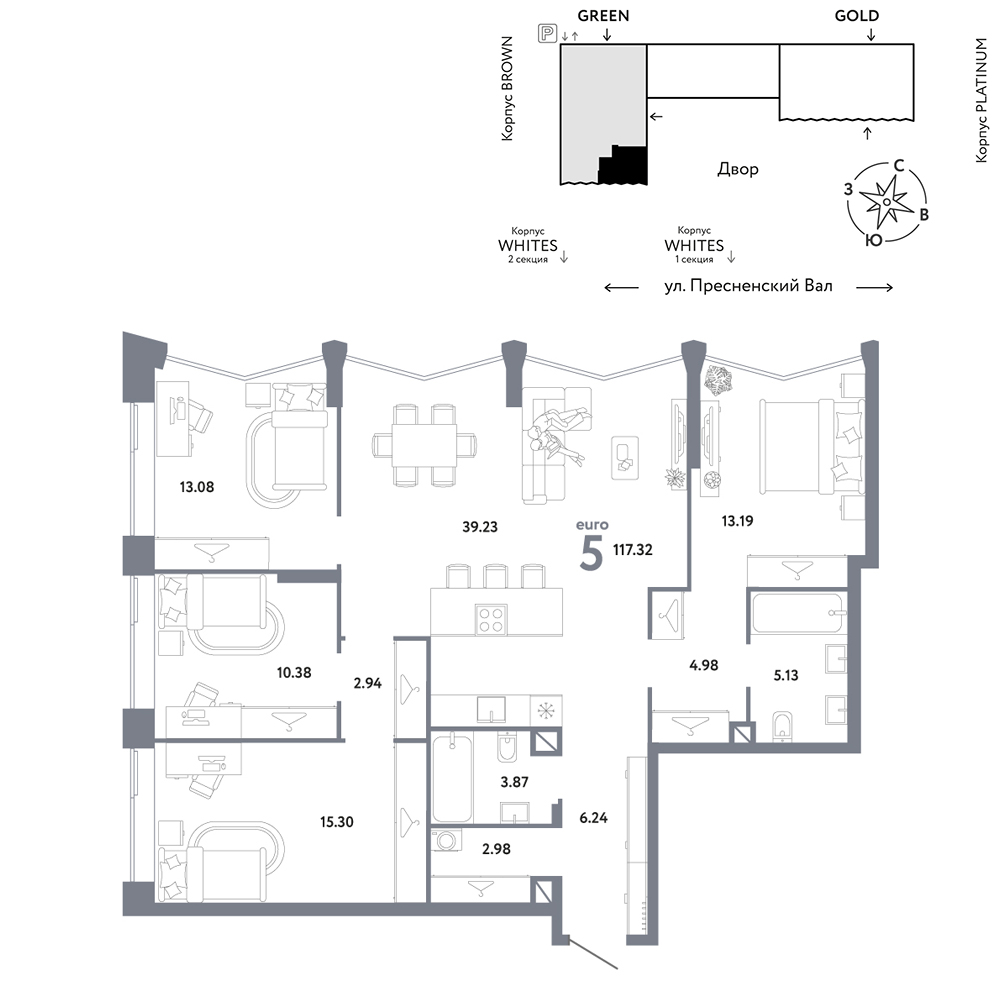 - Квартиры представлены в отделке white box и без отделки