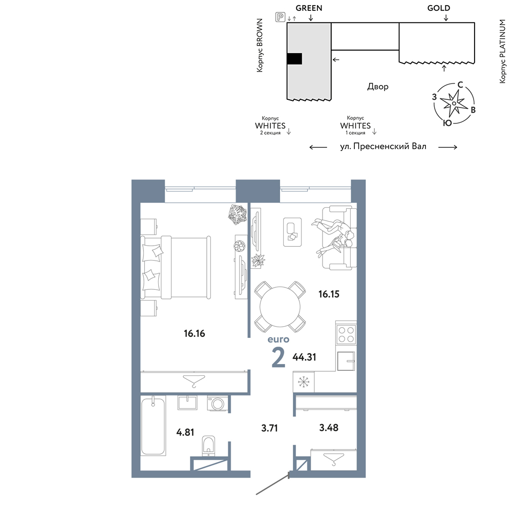 Всем жителям будет доступна дополнительная опция — клубная гостиная — это доступное для всех жильцов многофункциональное пространство с оборудованной кухней, зоной релакса с мягкой мебелью и спортивной зоной.