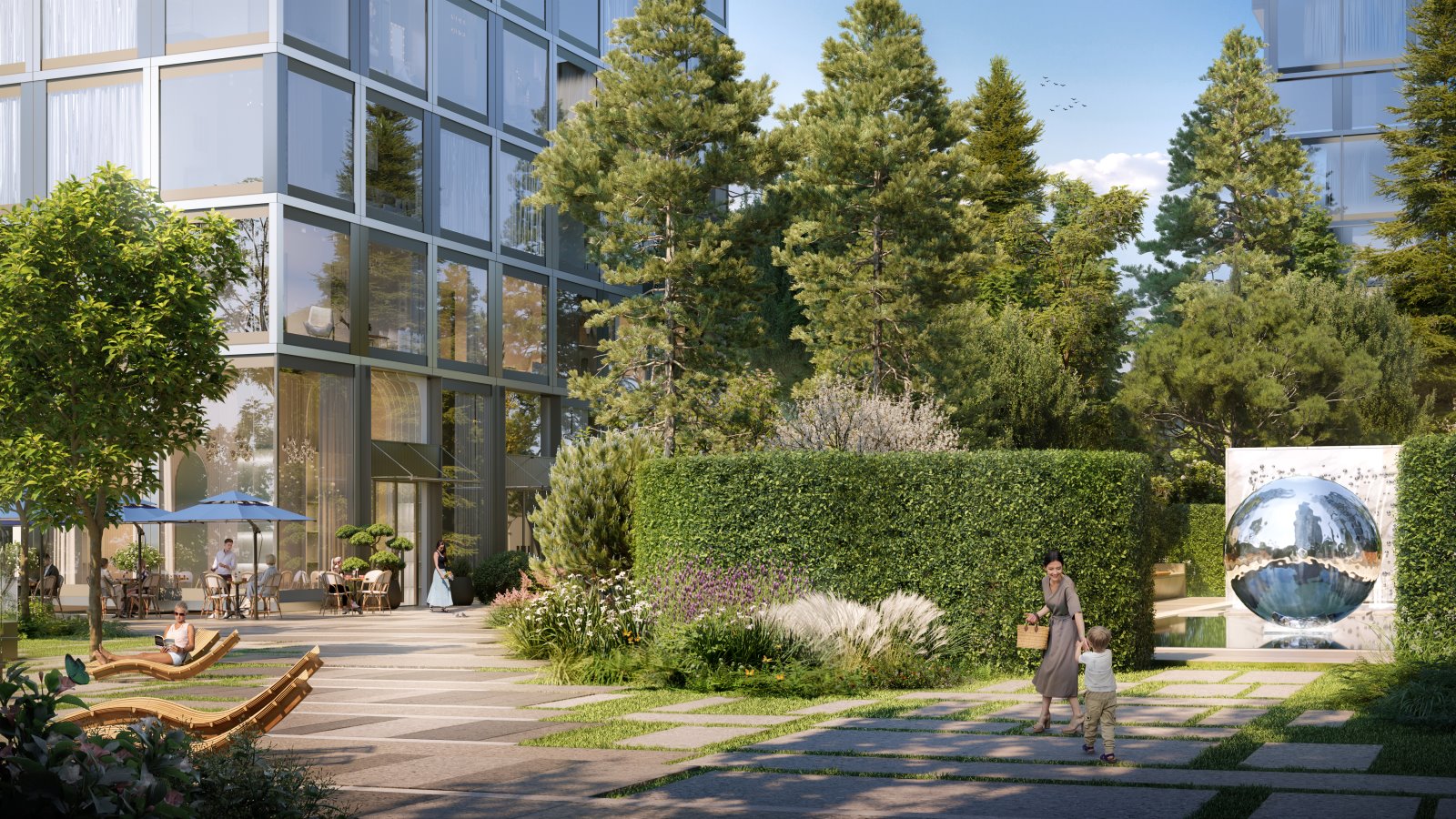 Благоустройство комплекса занимает 3 гектара и разработано мировым экспертом по городским парковым ландшафтам — голландским бюро WEST8. Концепция проекта — дать жителям отдохнуть от городского ритма и расслабиться среди природы. В приватном парке уже высажены хвойные деревья‑крупномеры: сосны и ели.