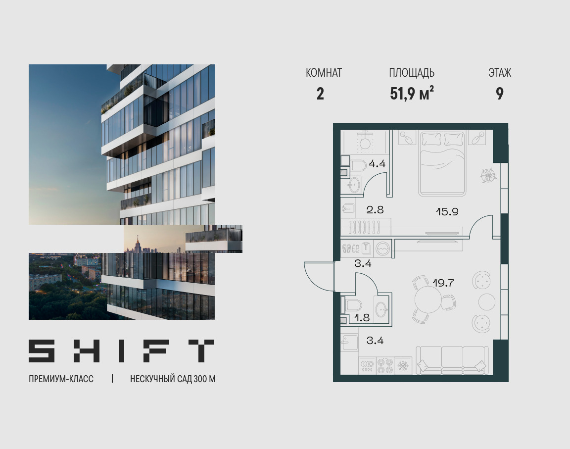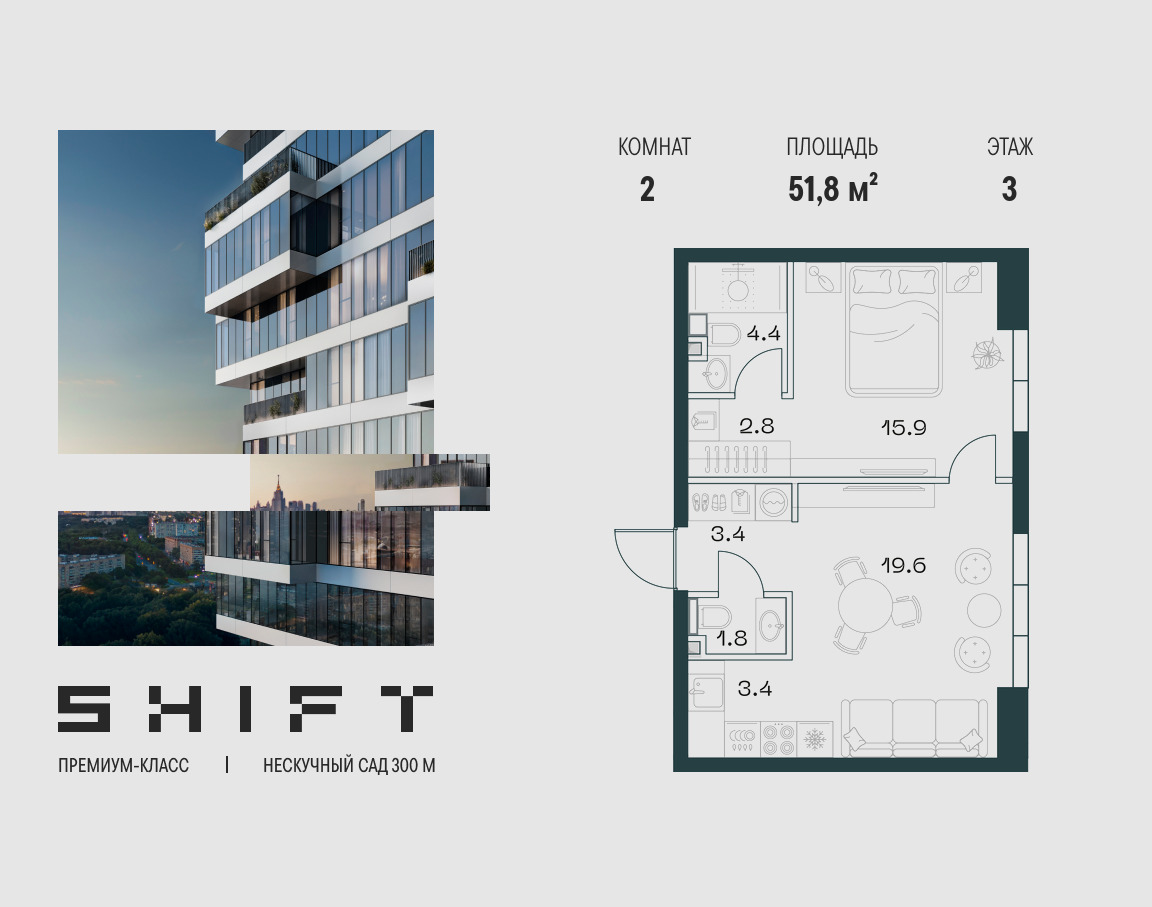 Двухкомнатные квартиры в ЖК SHIFT (Шифт)