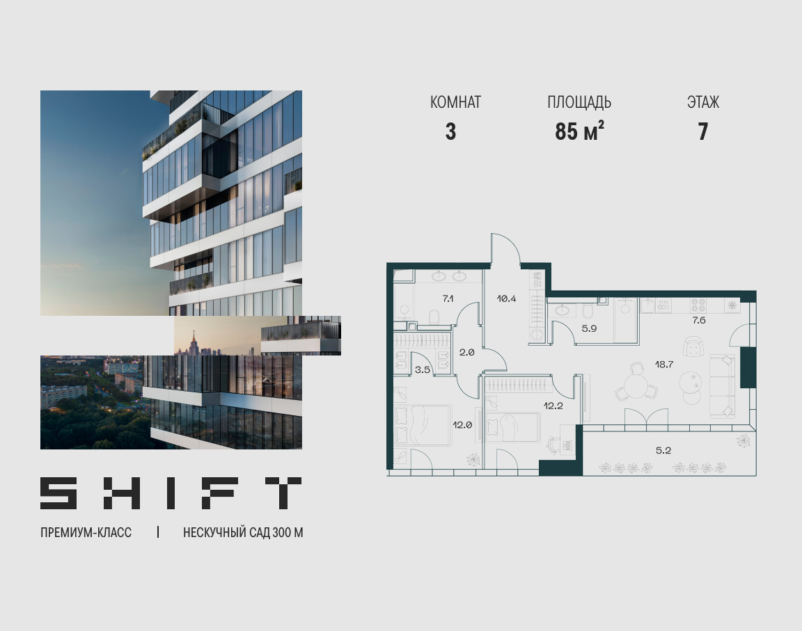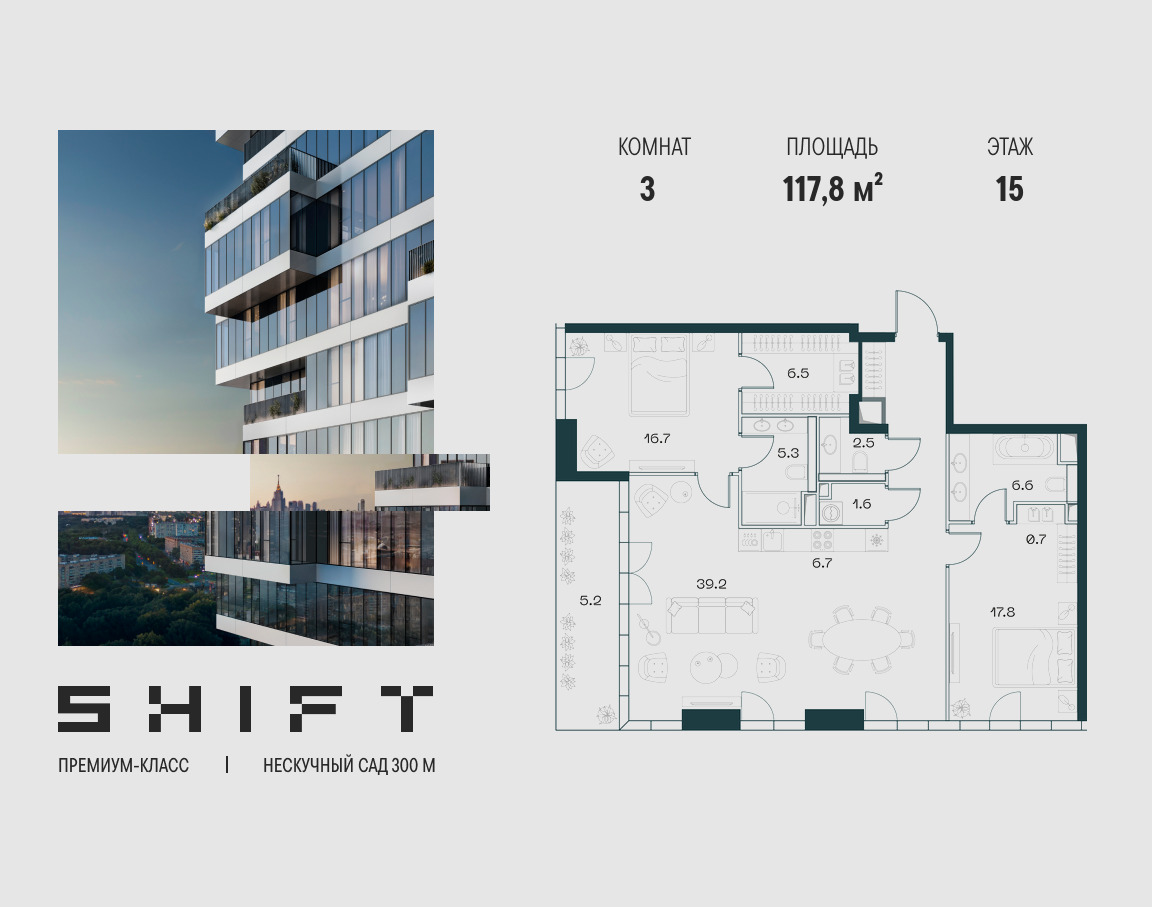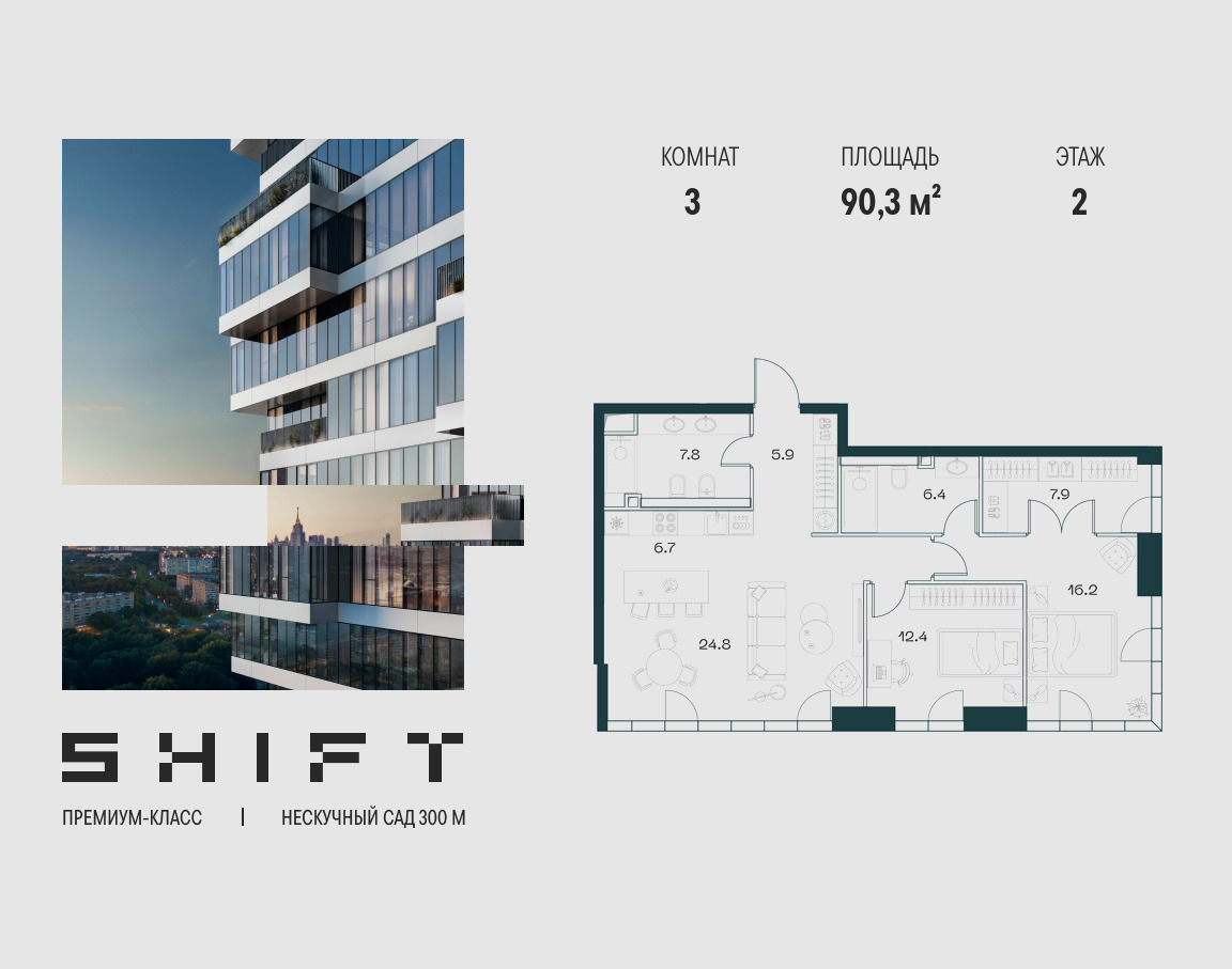 Трехкомнатные квартиры в ЖК SHIFT (Шифт)