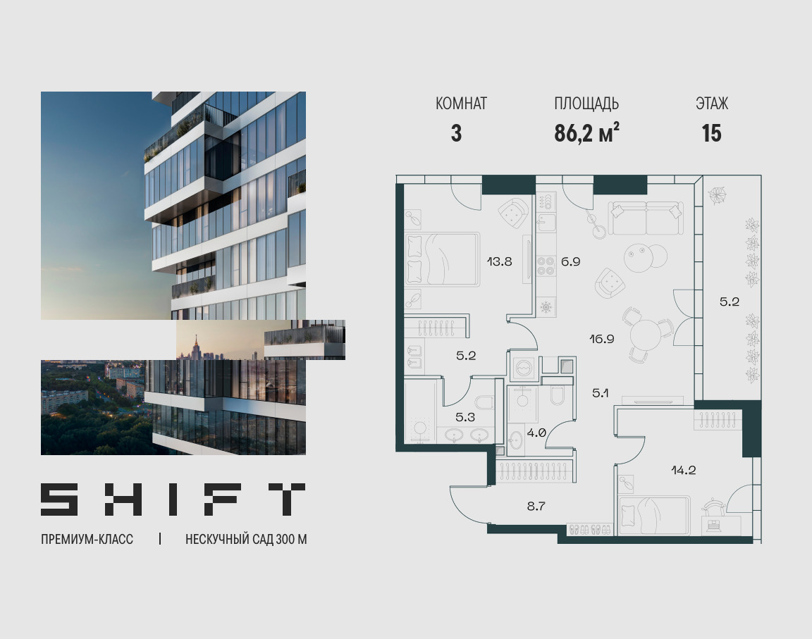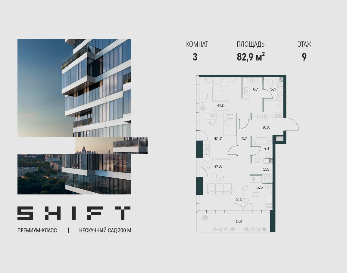 Трехкомнатные квартиры в ЖК SHIFT (Шифт)