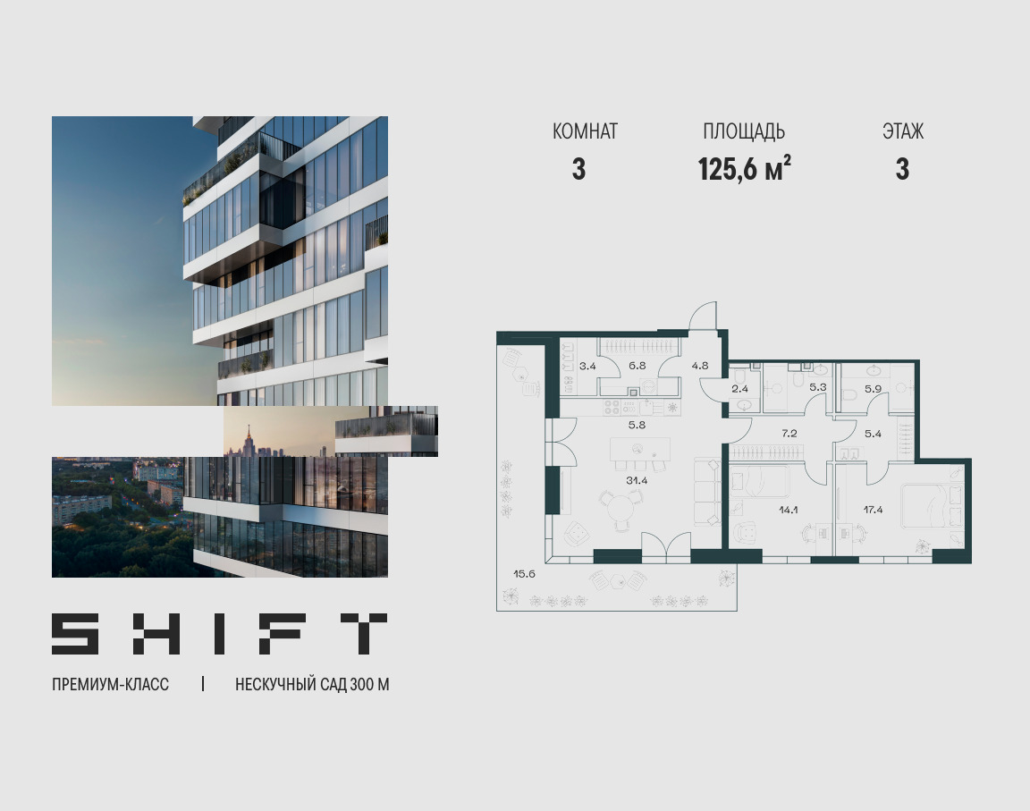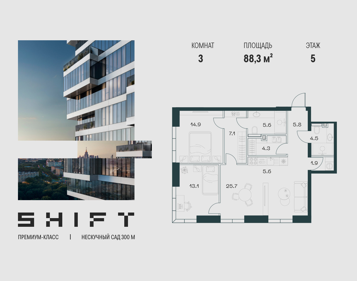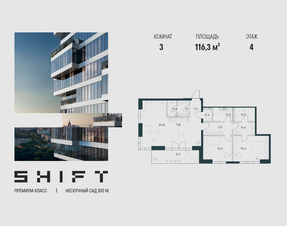 Трехкомнатные квартиры в ЖК SHIFT (Шифт)