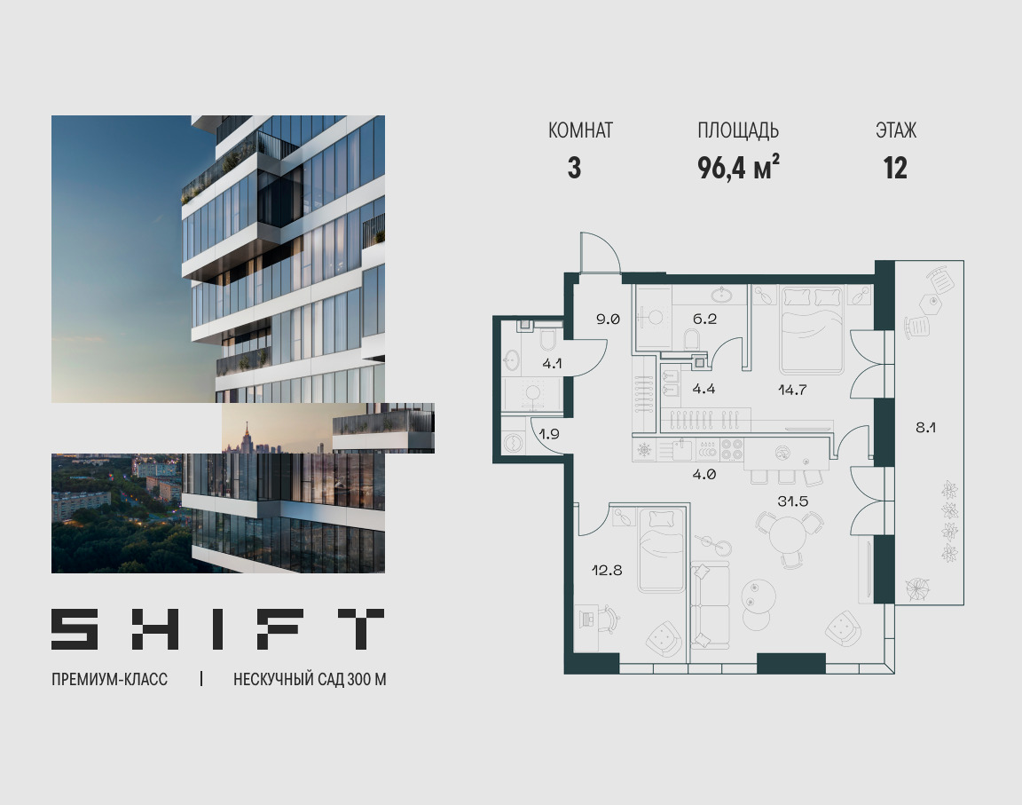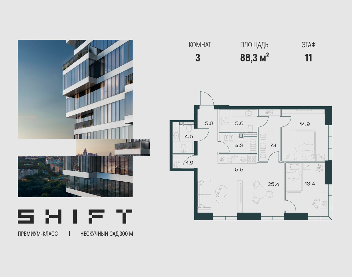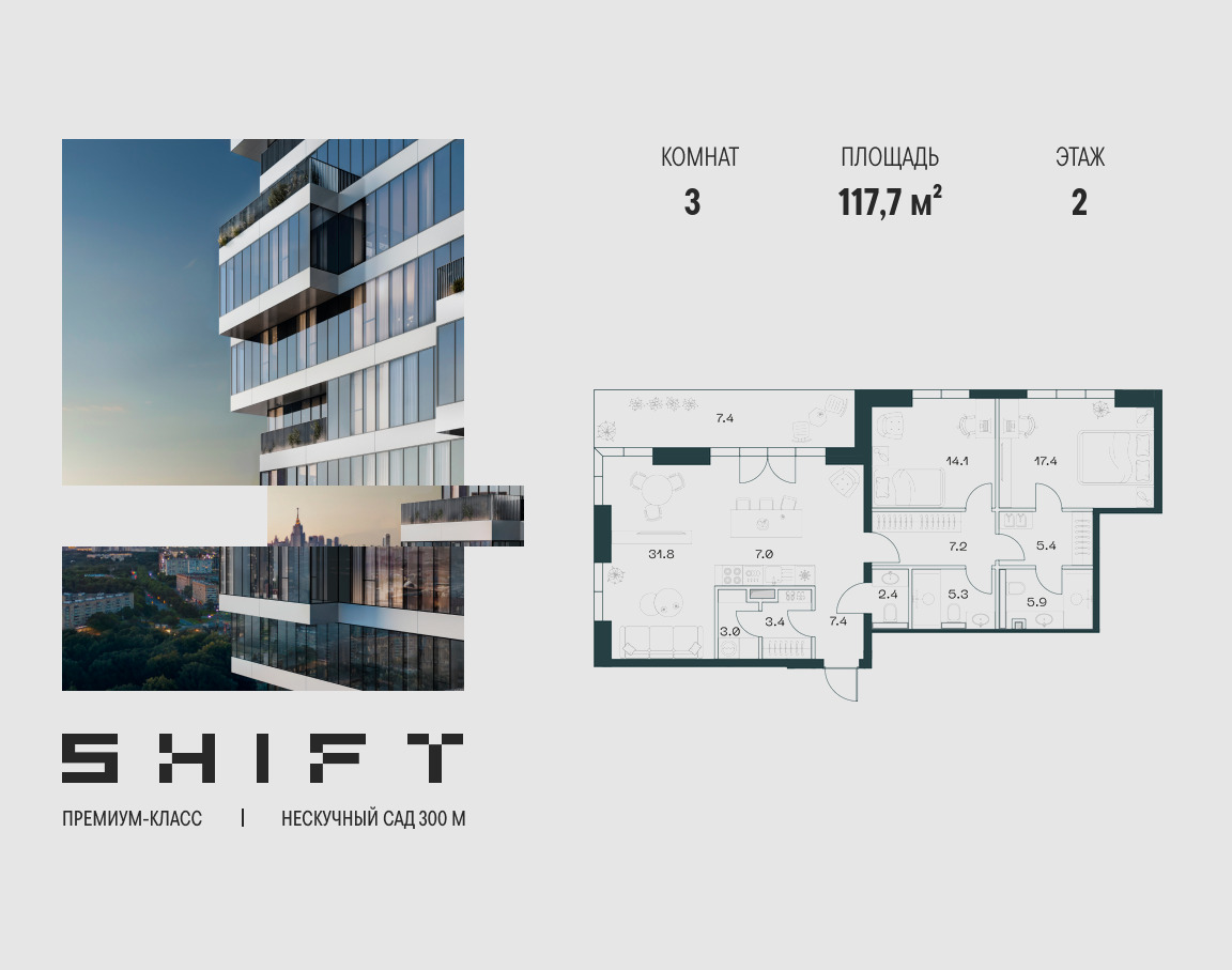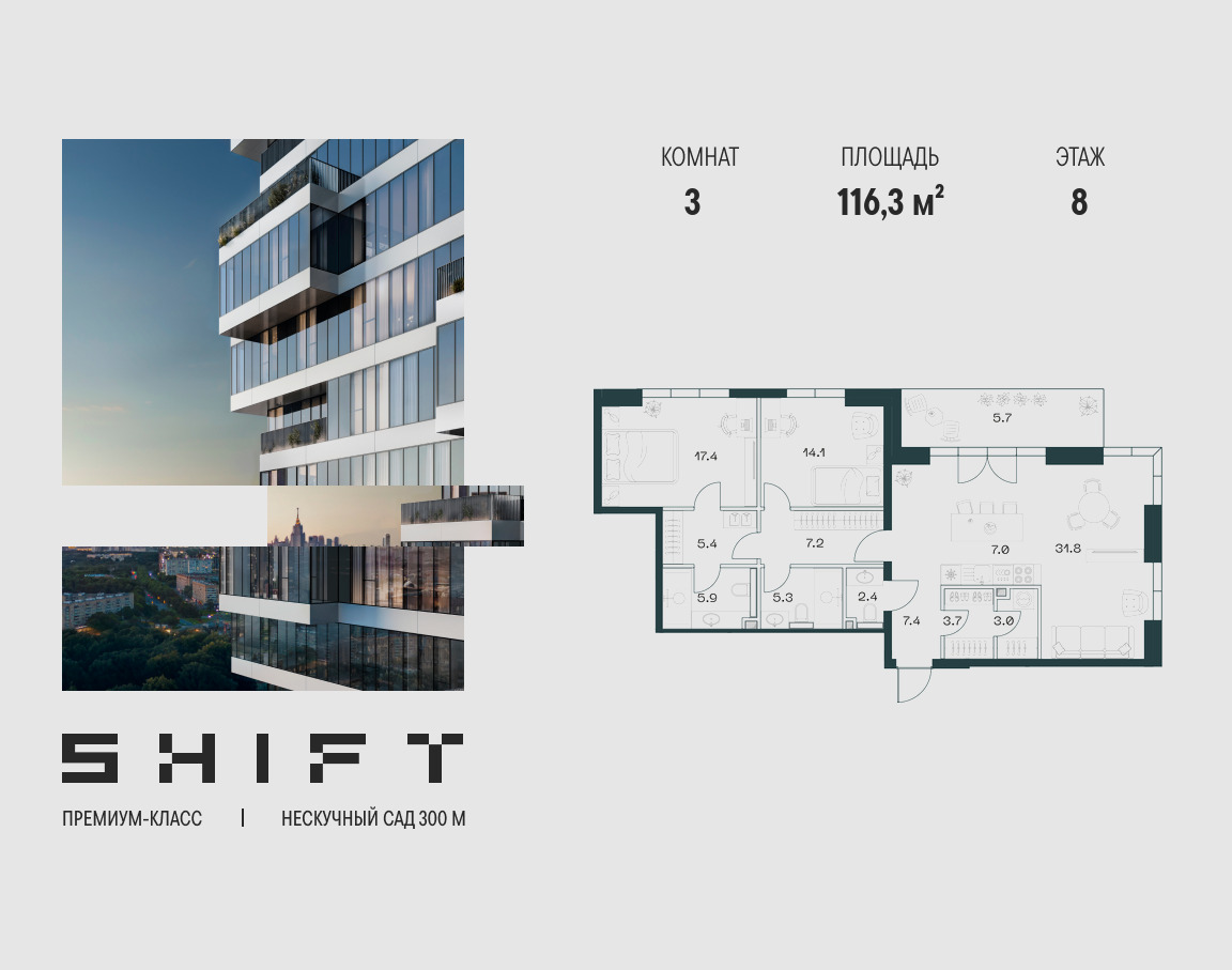 Трехкомнатные квартиры в ЖК SHIFT (Шифт)