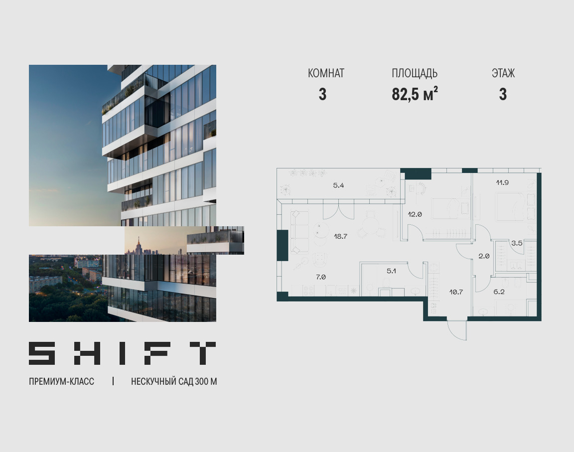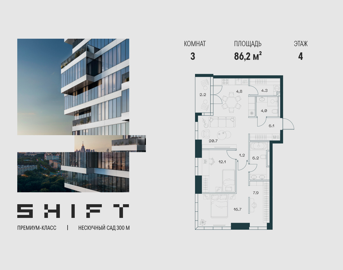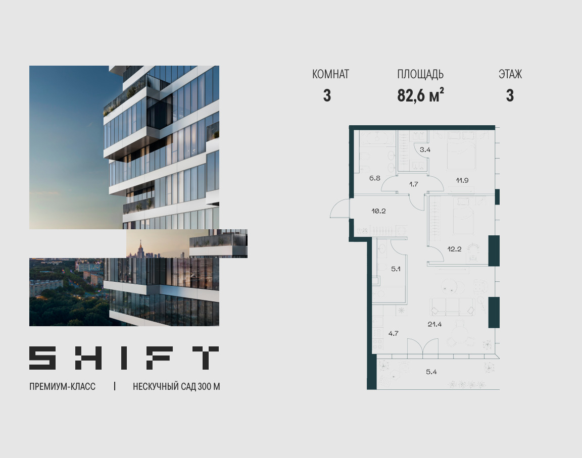 Трехкомнатные квартиры в ЖК SHIFT (Шифт)
