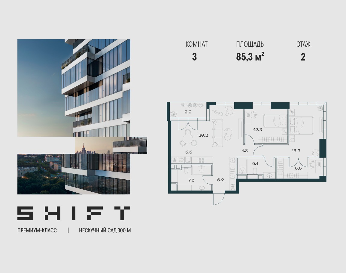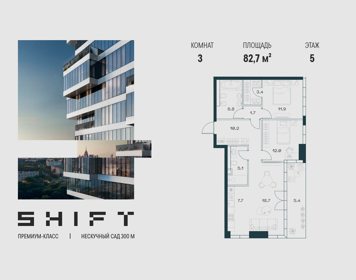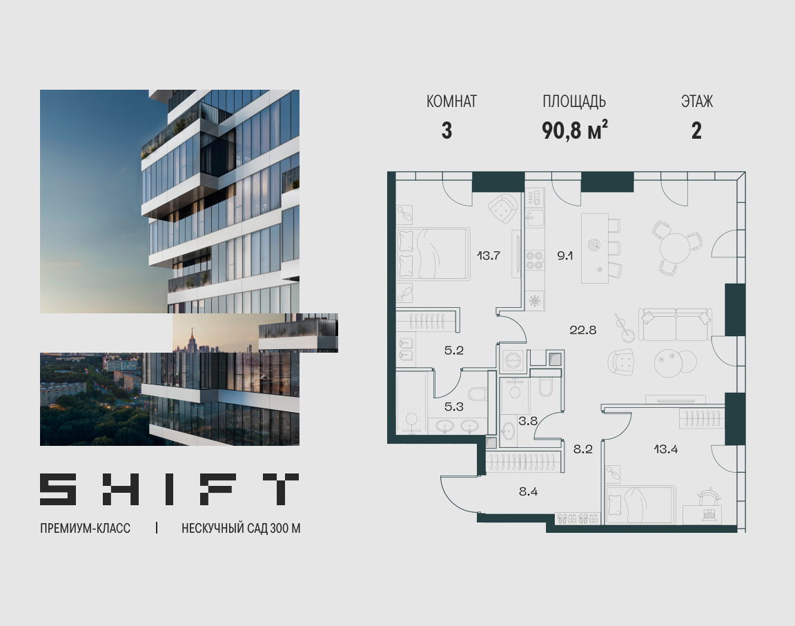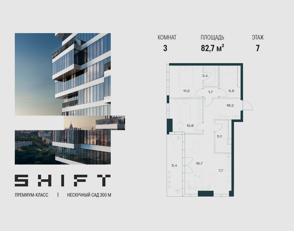 Трехкомнатные квартиры в ЖК SHIFT (Шифт)