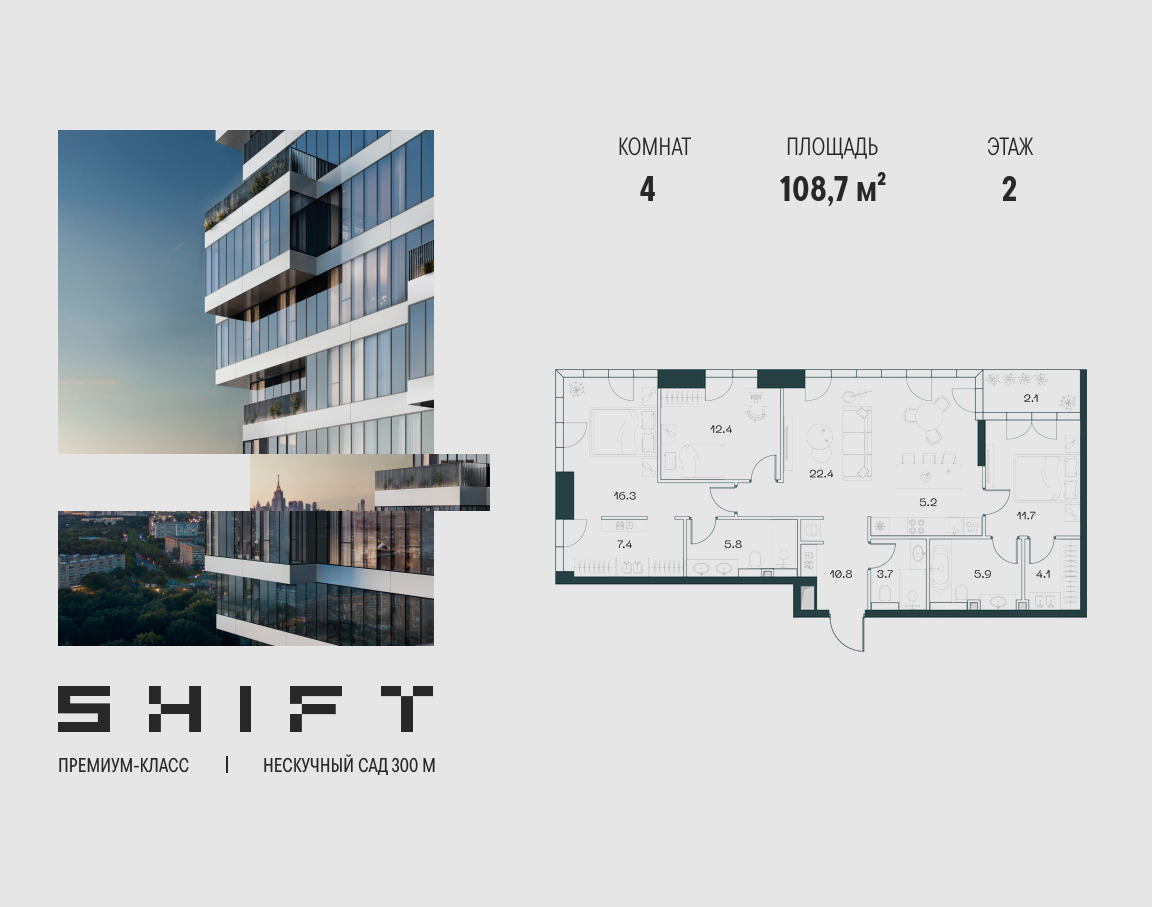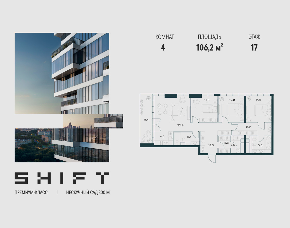 Четырехкомнатные квартиры в ЖК SHIFT (Шифт)
