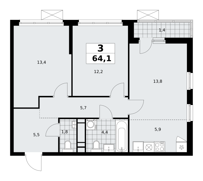 3-комнатная (64.1м2)
