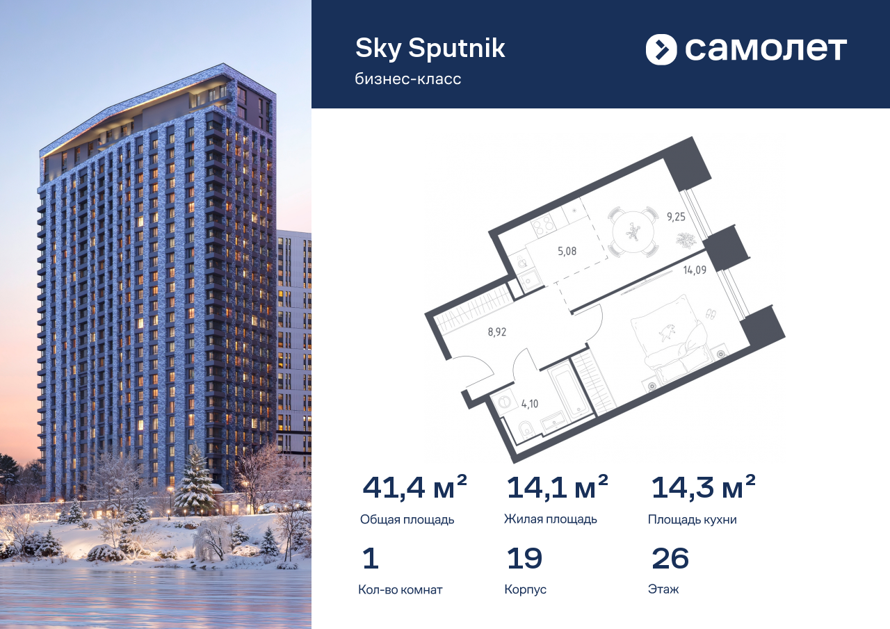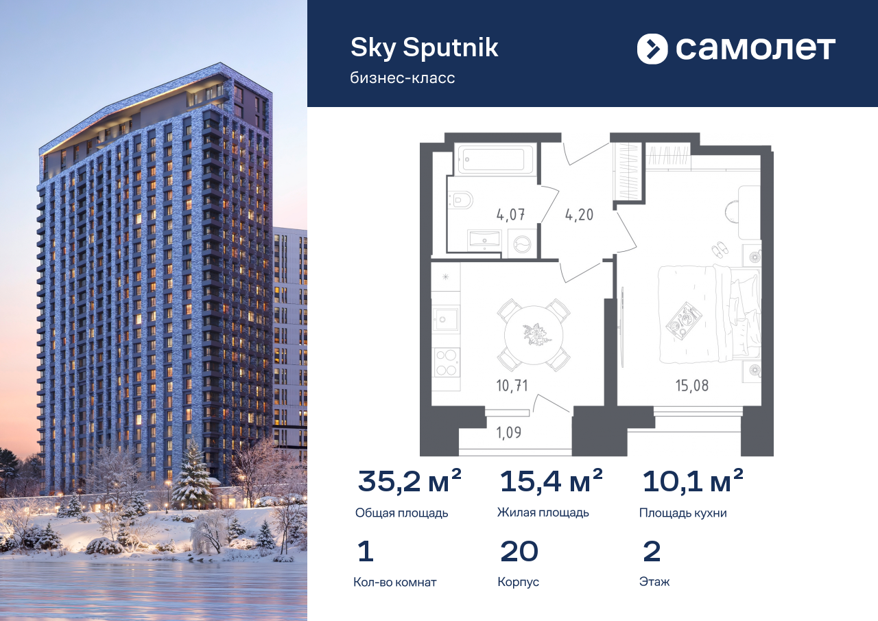 Однокомнатные квартиры в ЖК «Sky Sputnik»/Самолёт