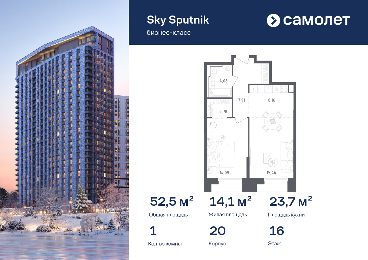 Однокомнатные квартиры в ЖК «Sky Sputnik»/Самолёт