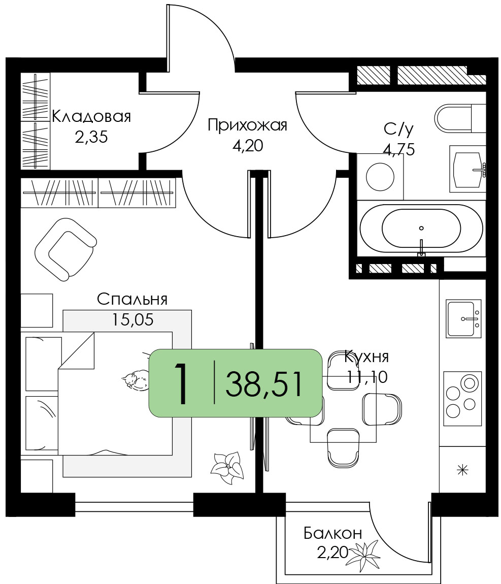 Однокомнатные квартиры в ЖК СреДА