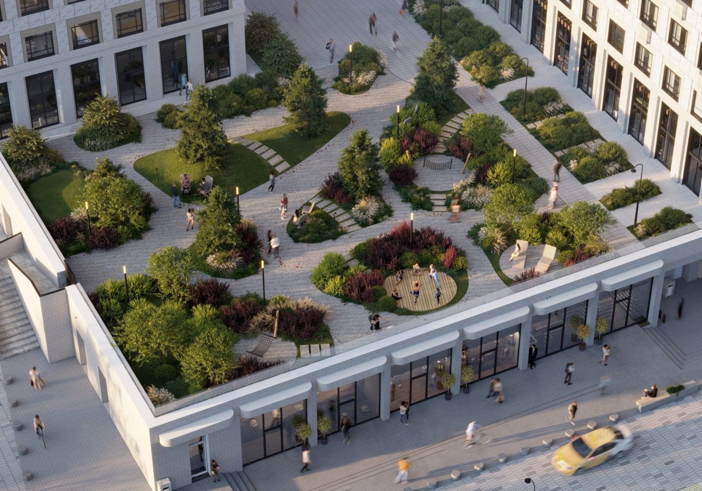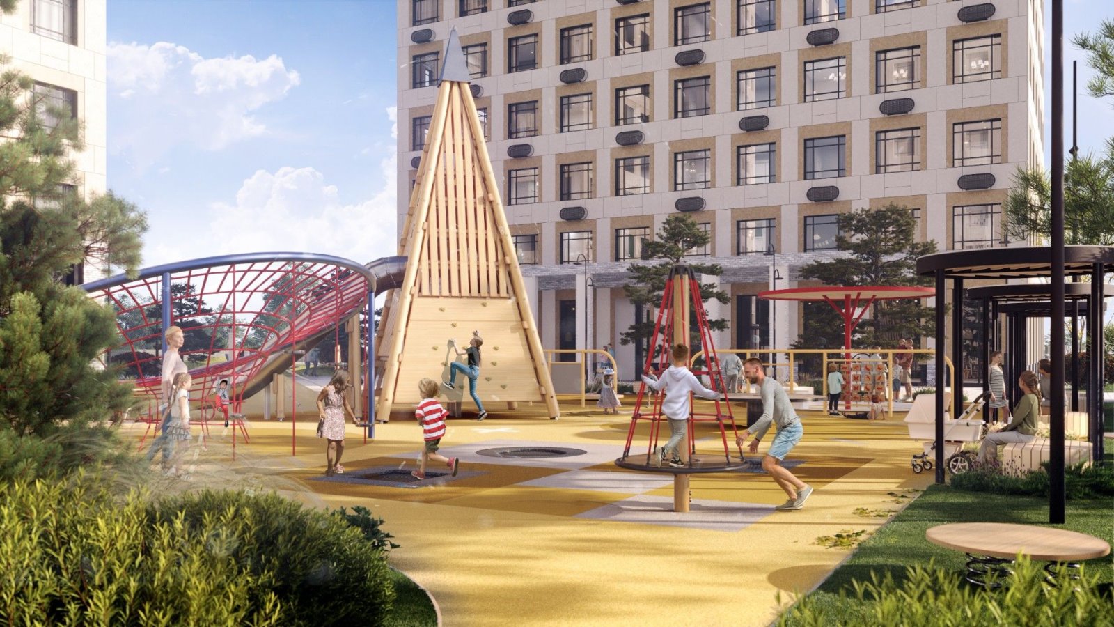 Опции, которые предлагает застройщик для проекта ЖК Stories (Сторис): подземная и гостевая парковка, детские и спортивные площадки, коммерческие помещения на первом этаже, закрытый двор без машин, видеонаблюдение, пропускная система, фитнес-центр.