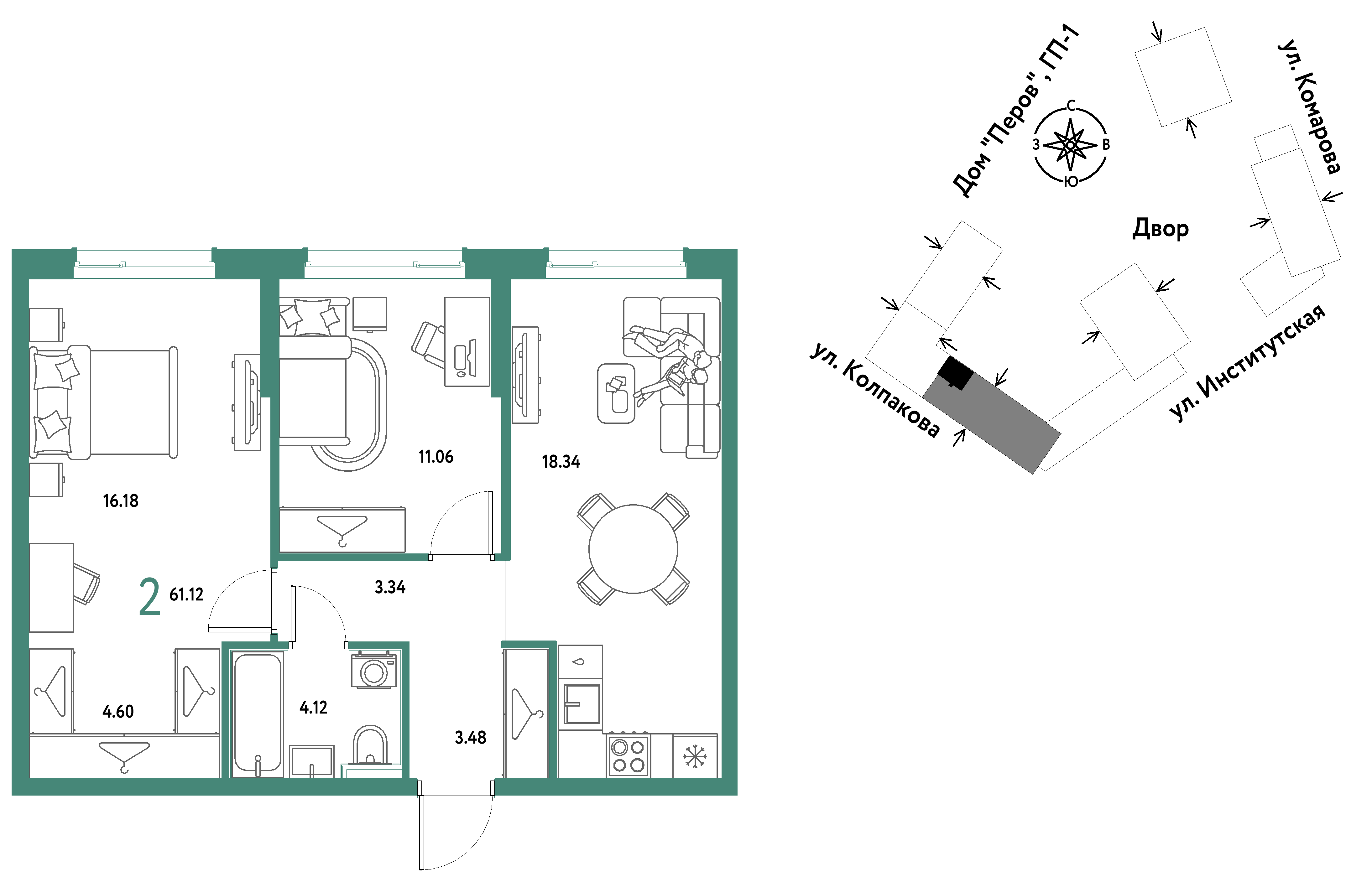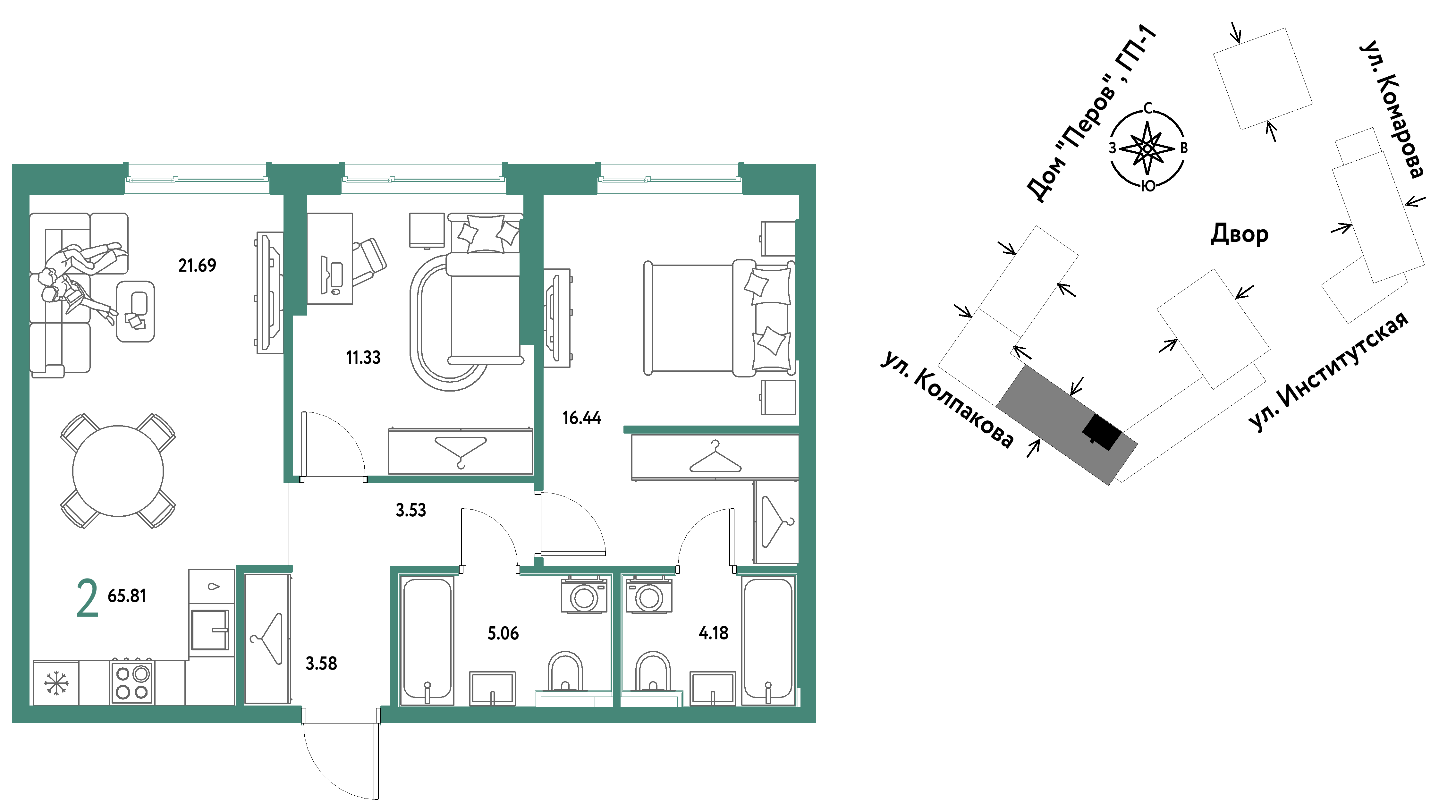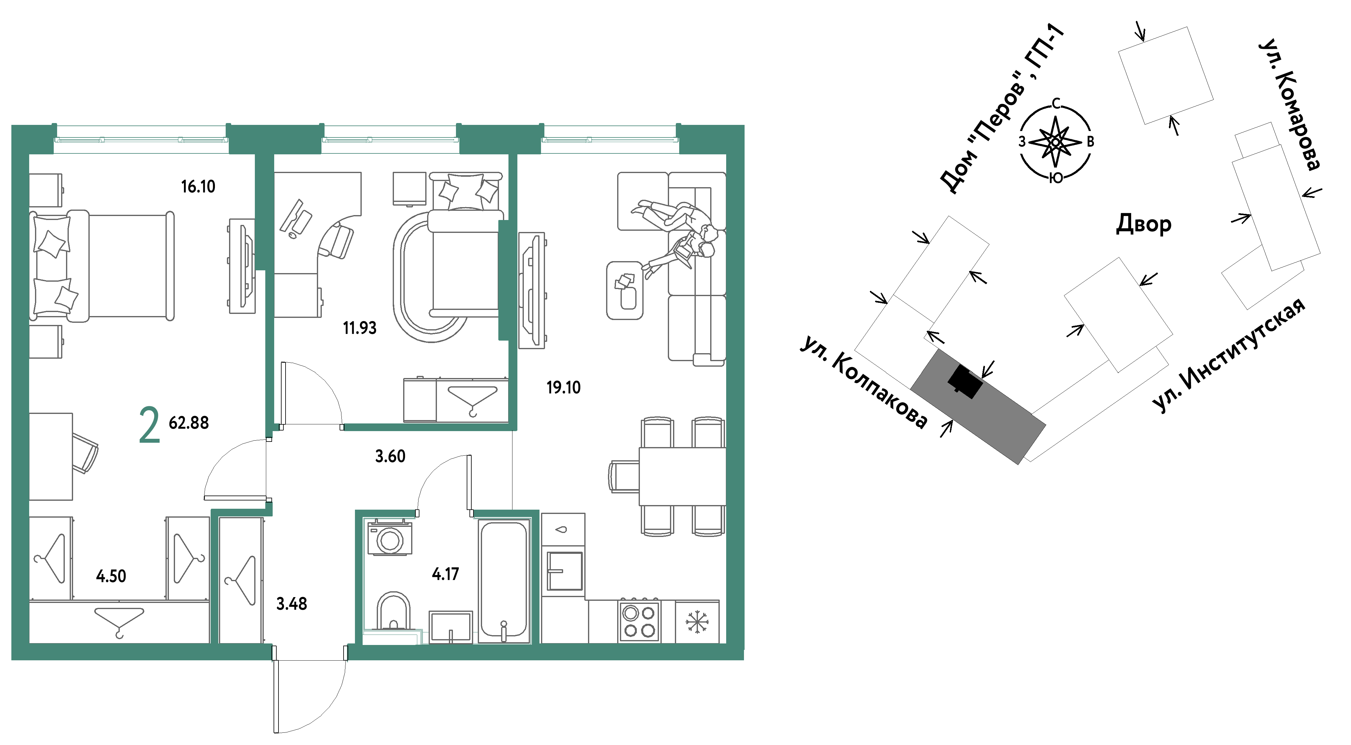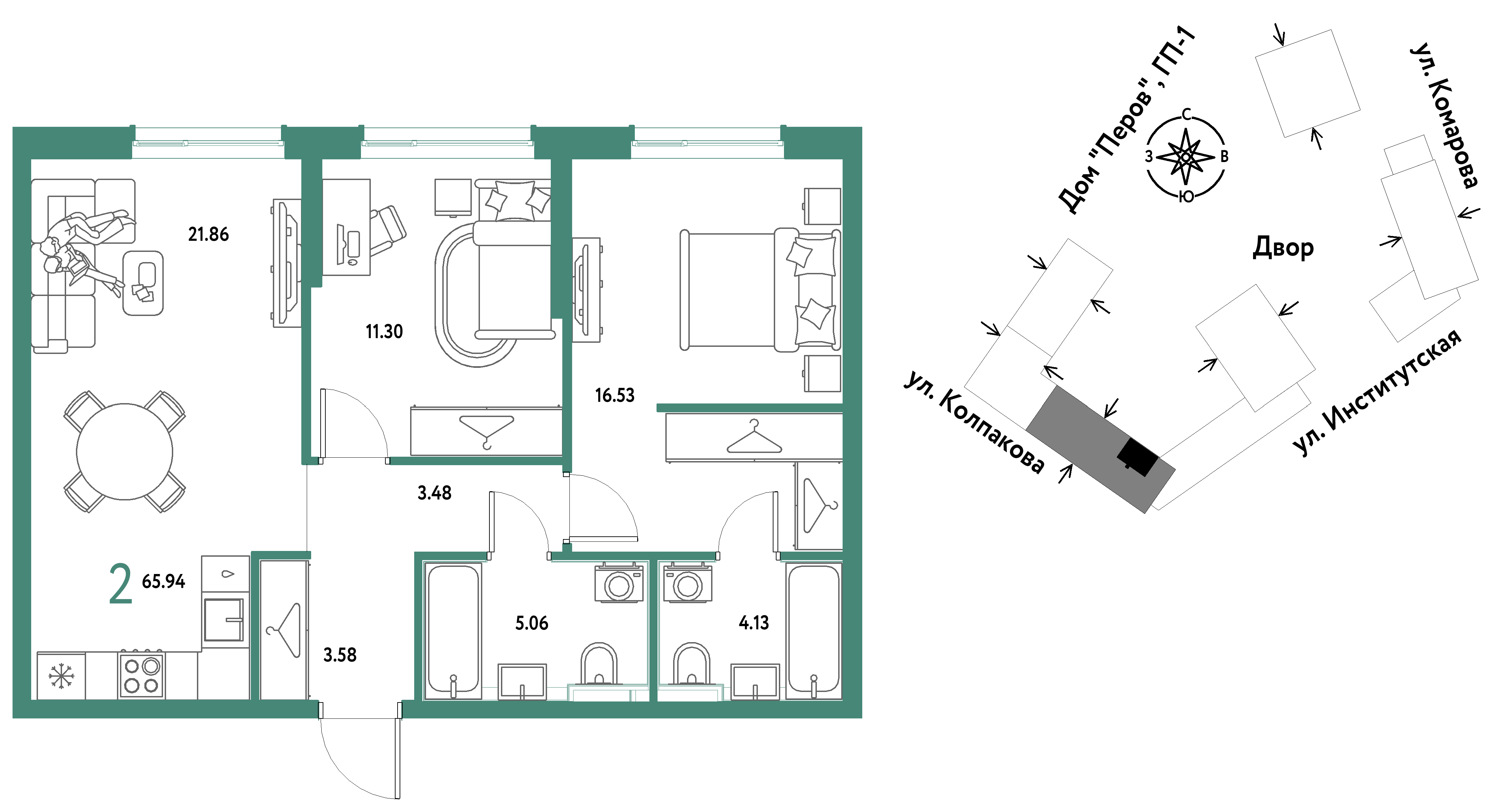 Евро двухкомнатные квартиры в ЖК Страна.Парковая