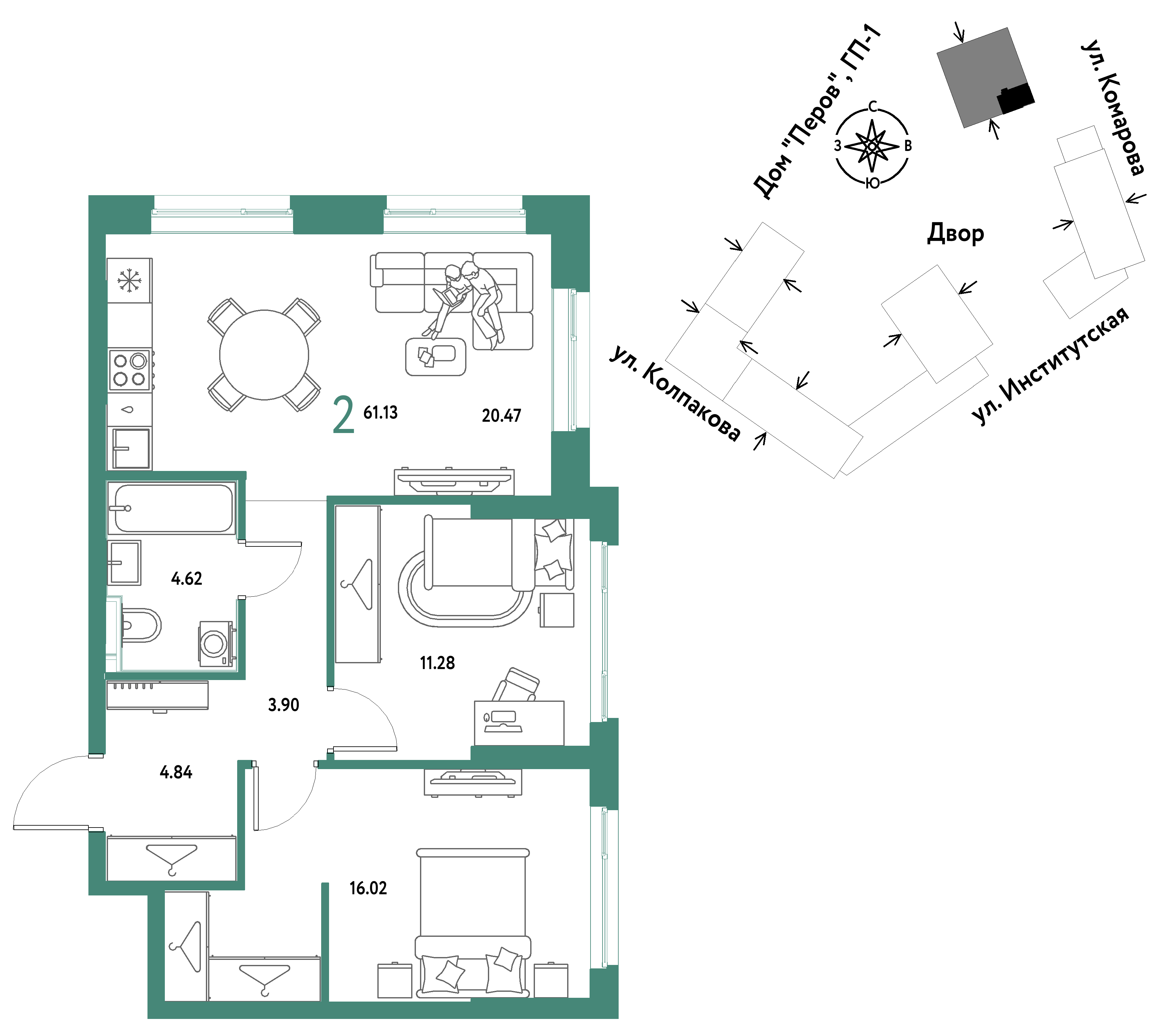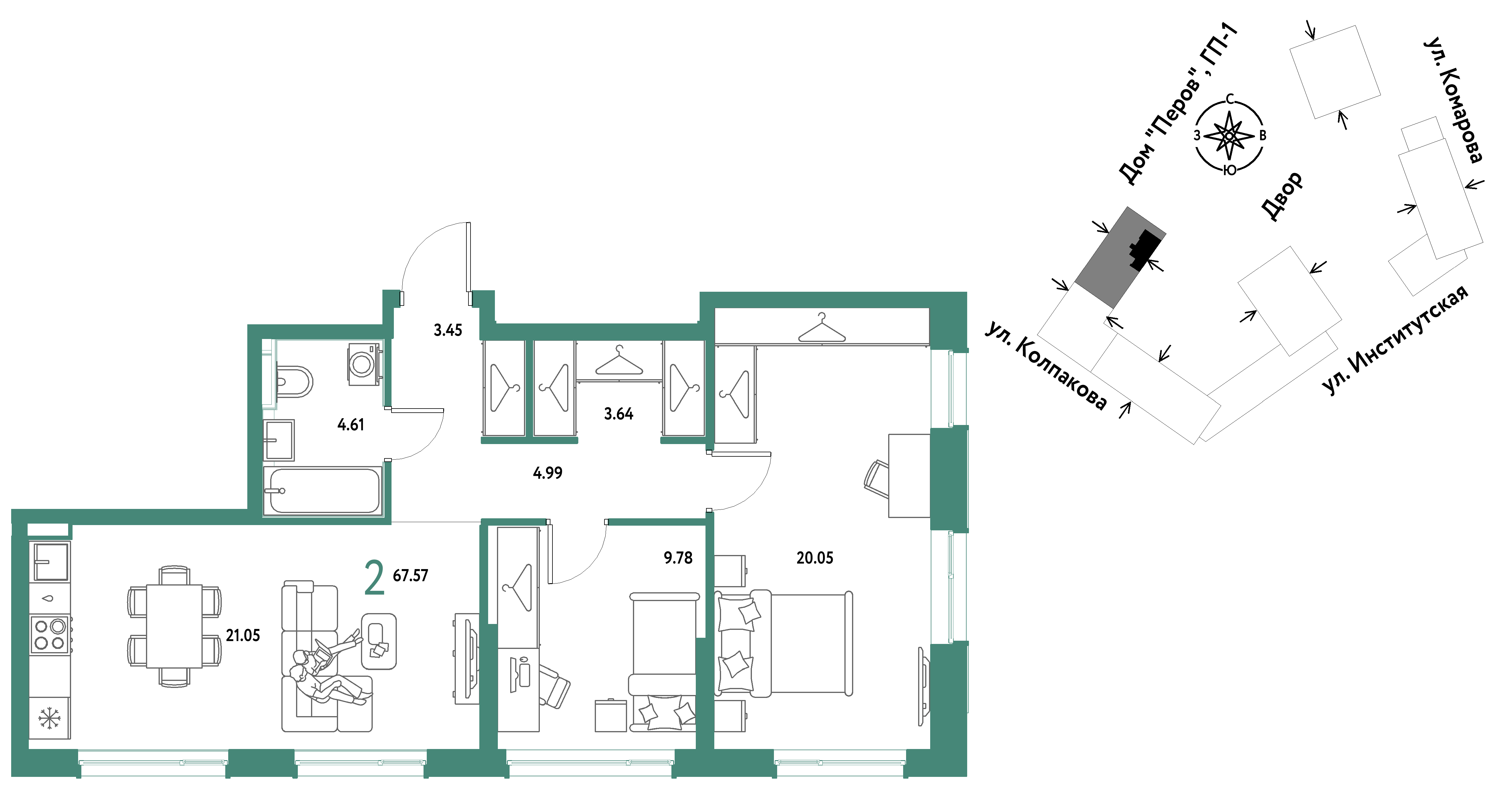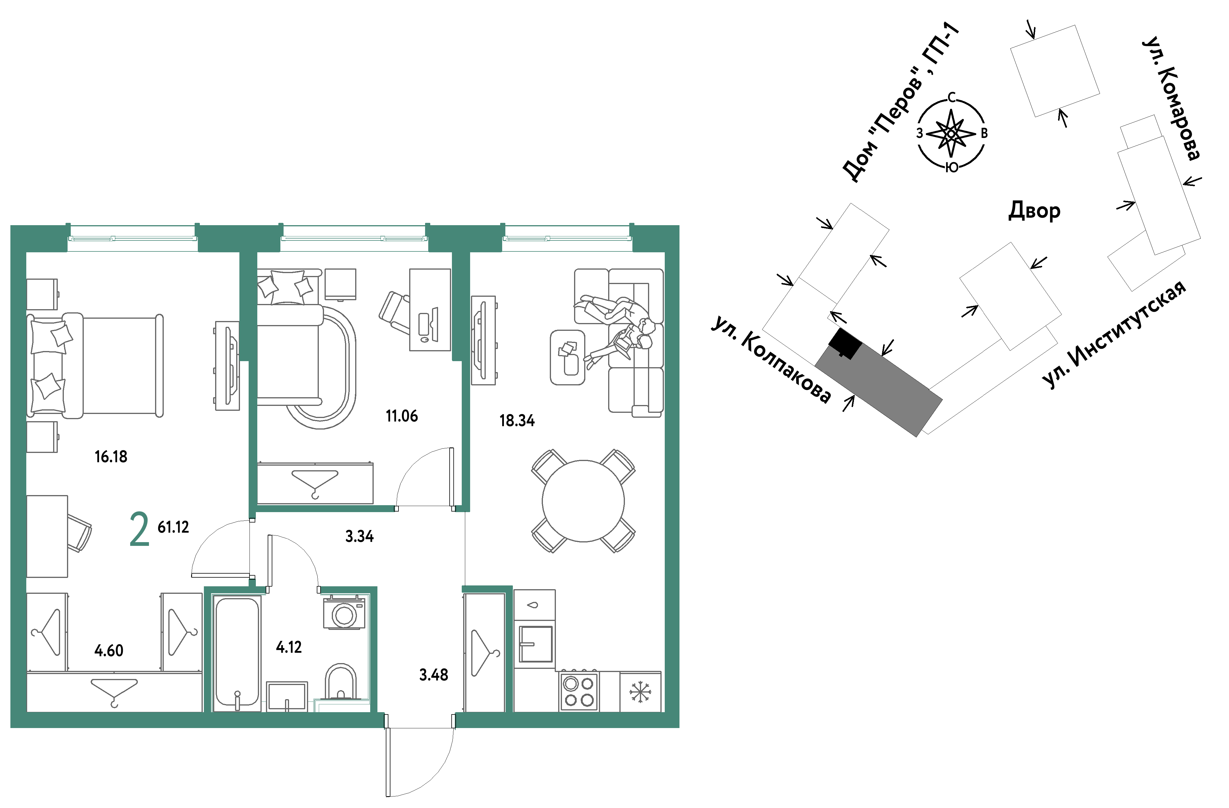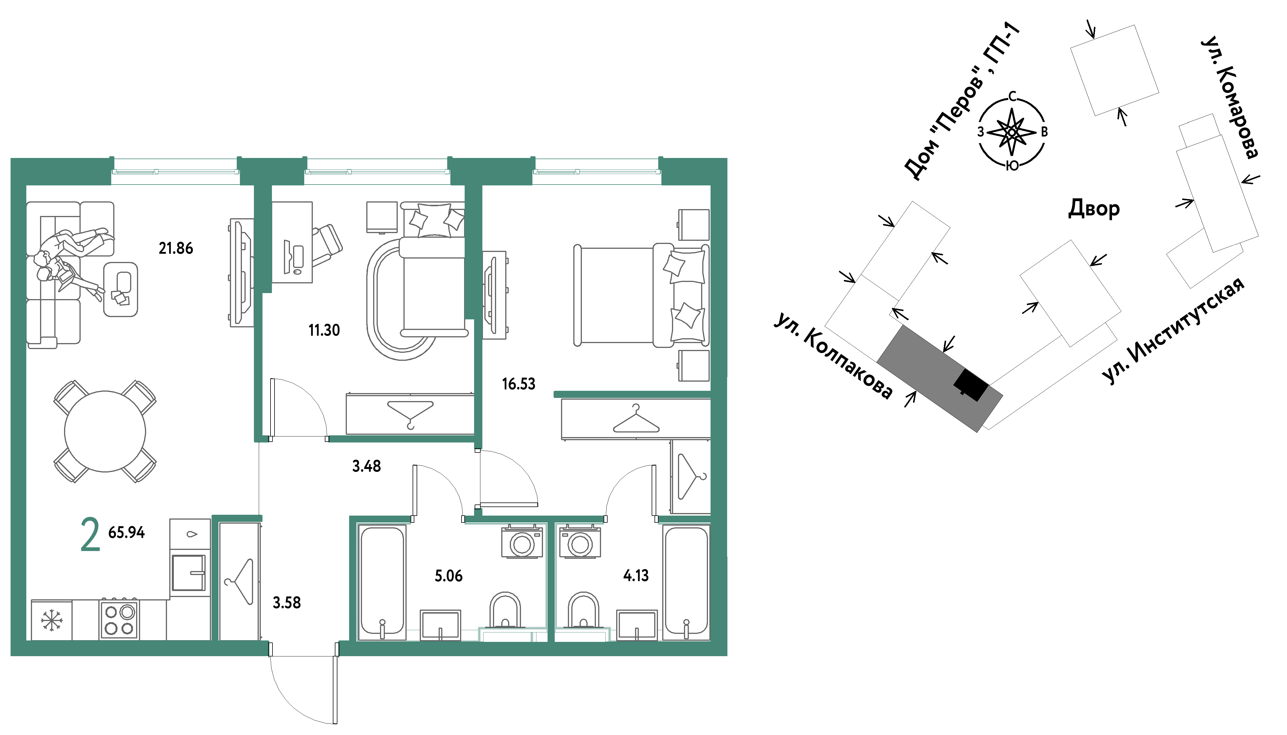 Евро двухкомнатные квартиры в ЖК Страна.Парковая