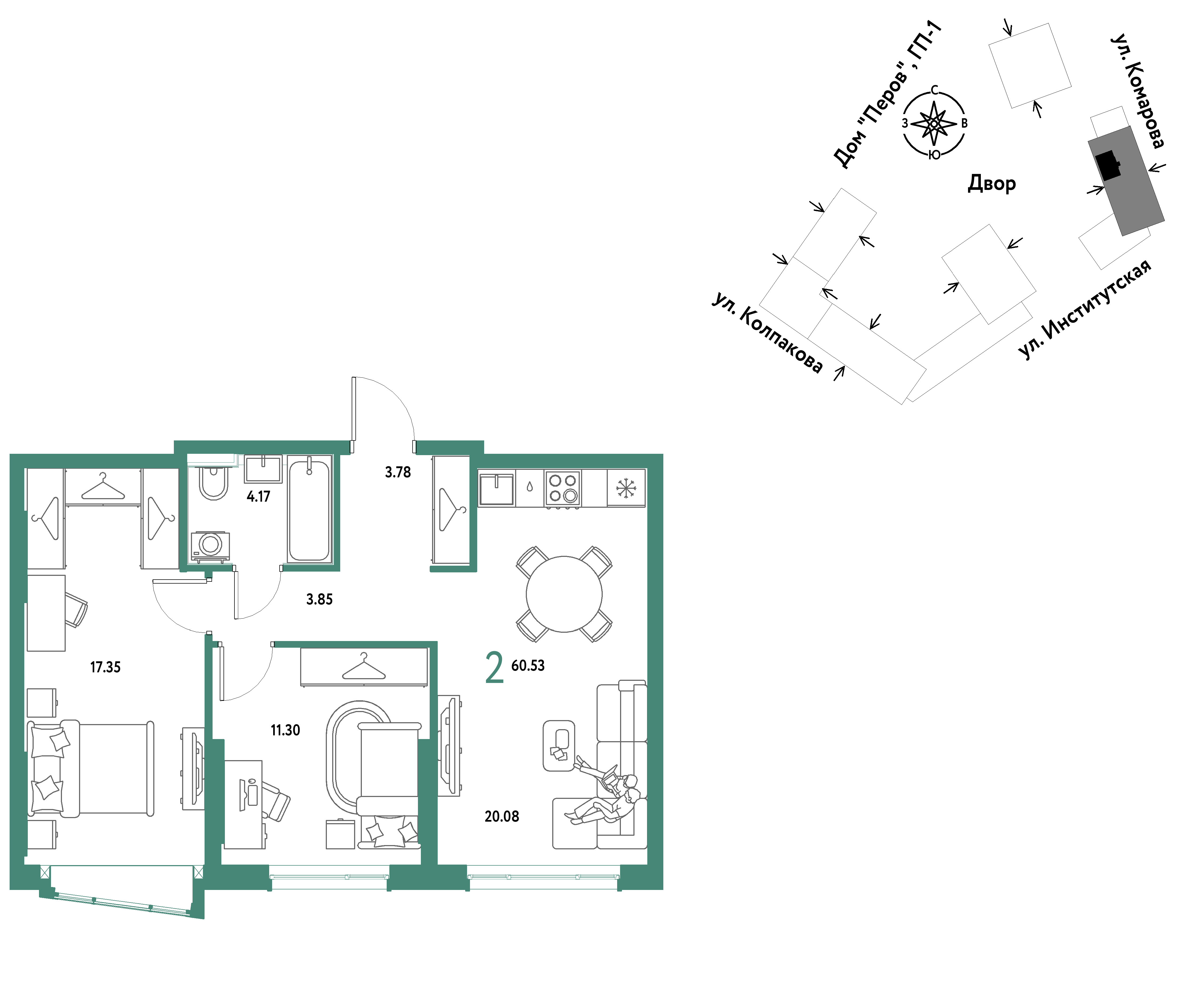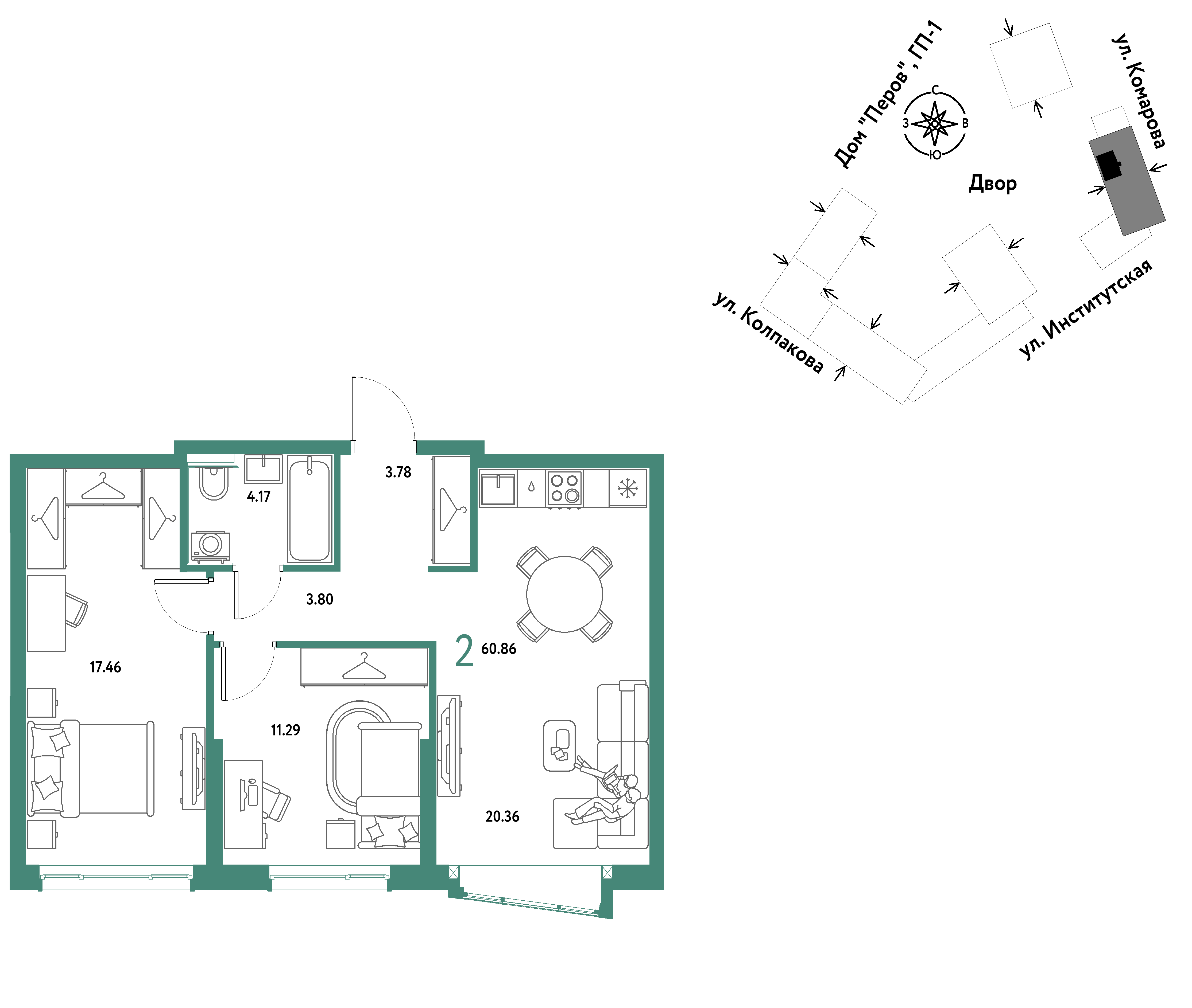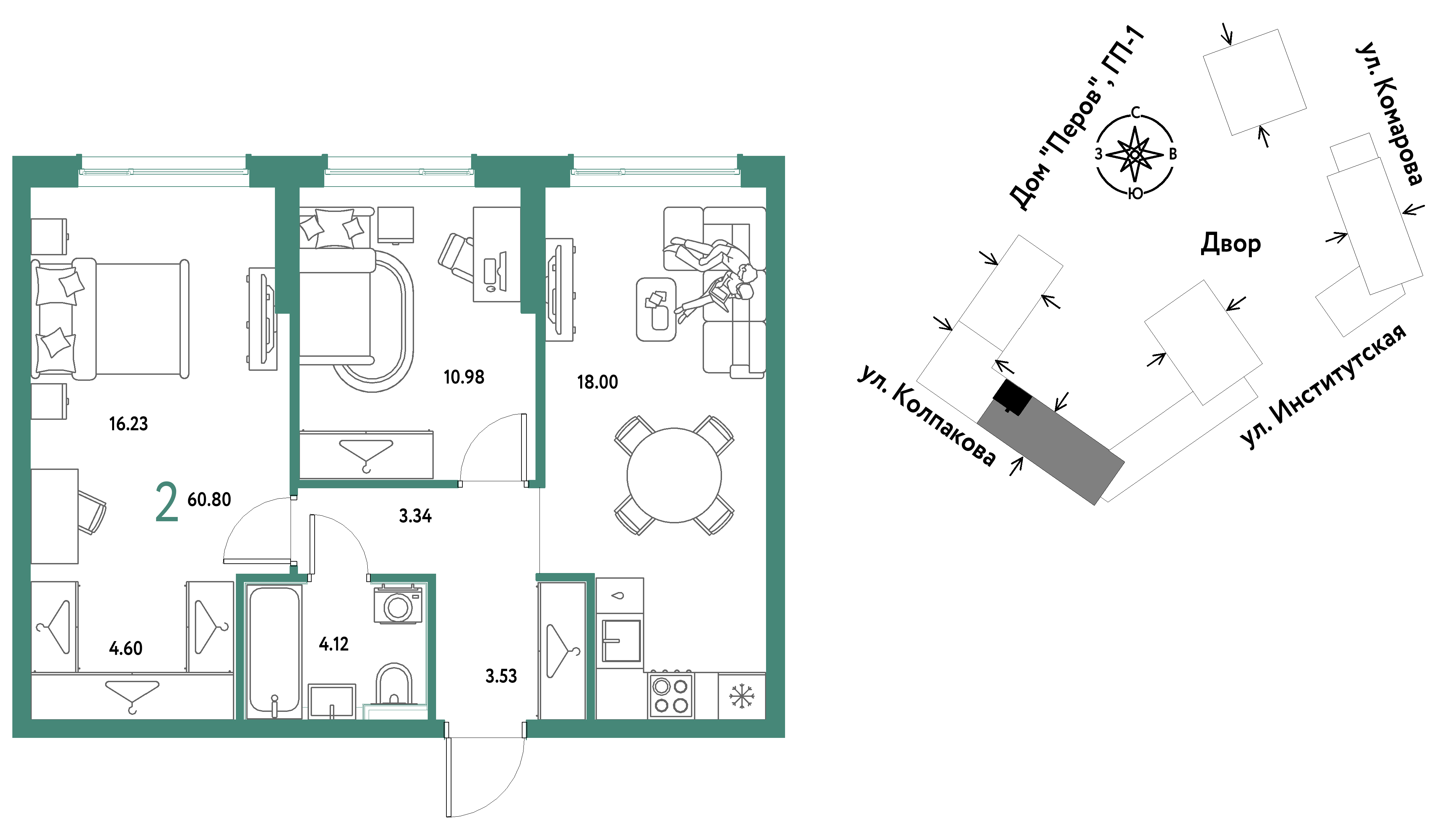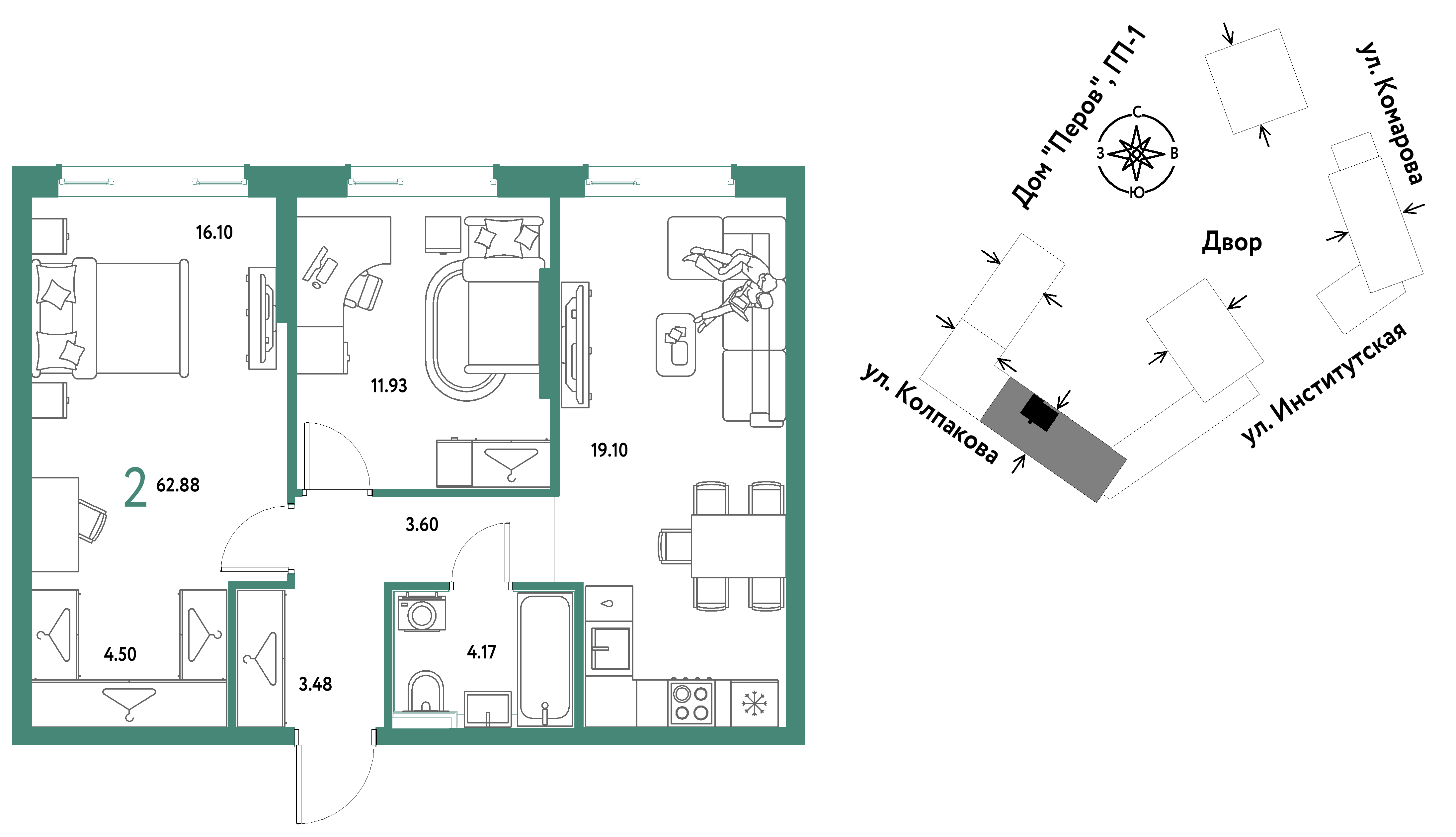 Евро двухкомнатные квартиры в ЖК Страна.Парковая