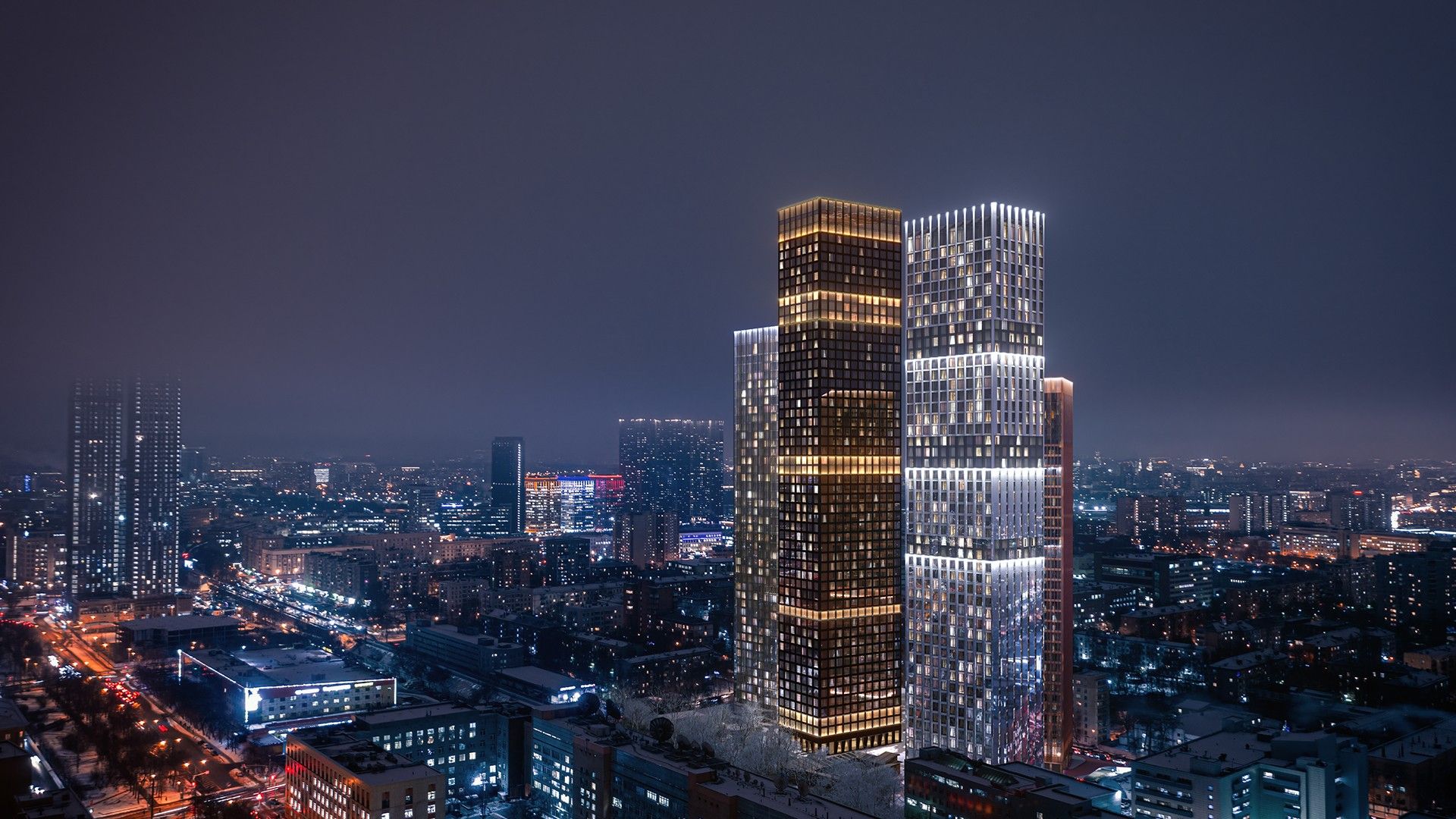ЖК Symphony 34 – это 4 небоскреба высотой от 36 до 54 этажей, которые строятся MR Group в Савеловском районе САО Москвы. Объект получил название в честь произведения В. А. Моцарта. Застройщик утверждает, что проект, подобно этой симфонии, гармонично сочетает в себе несочетаемые формы, элементы и материалы. Так, башня А выполнена в графитовом цвете, B – отделана закаленным стеклом, C – переливается серебряными и матовыми ламелями, D – сверкает медью, а вместе они создают целостную композицию города-силуэта.