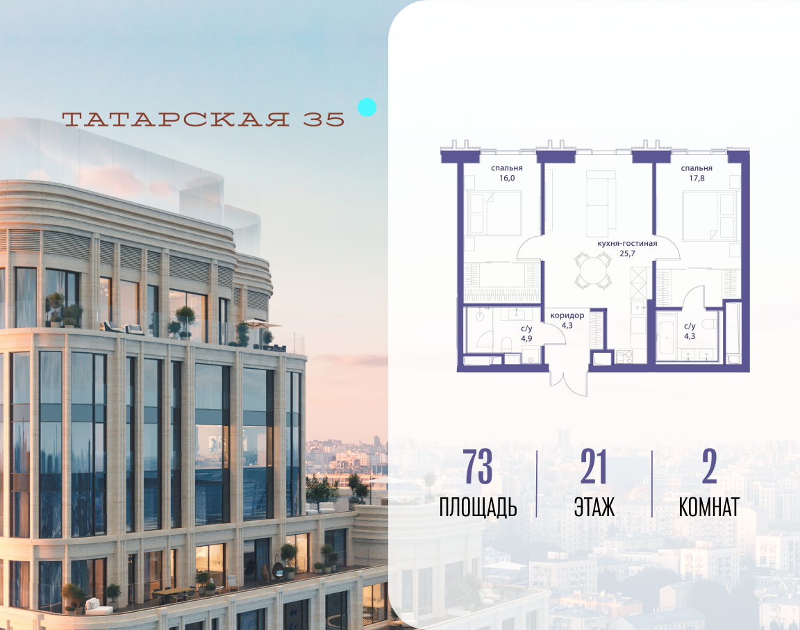 Двухкомнатные квартиры в ЖК Татарская 35