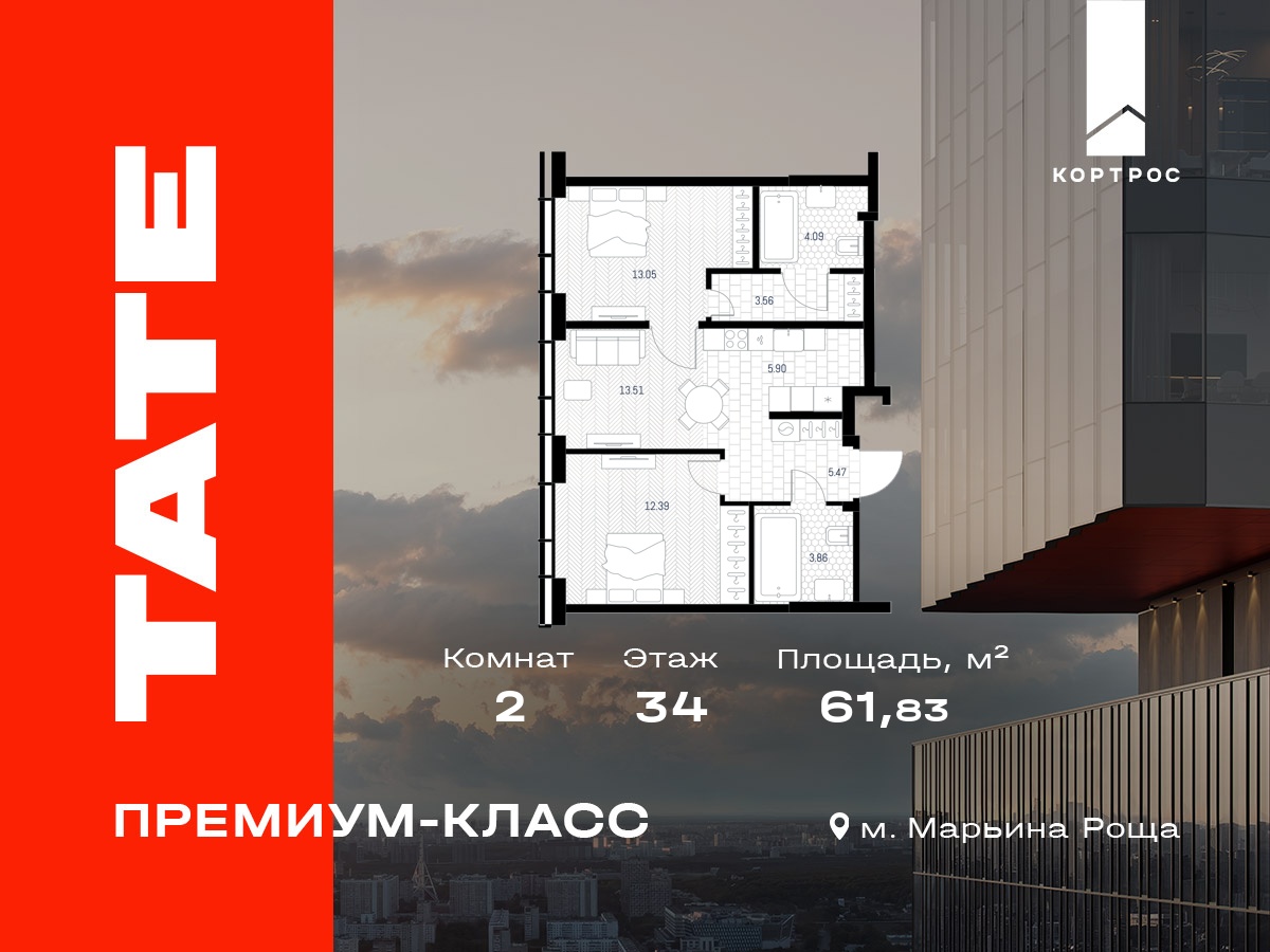 2-комнатная (61.83м2)