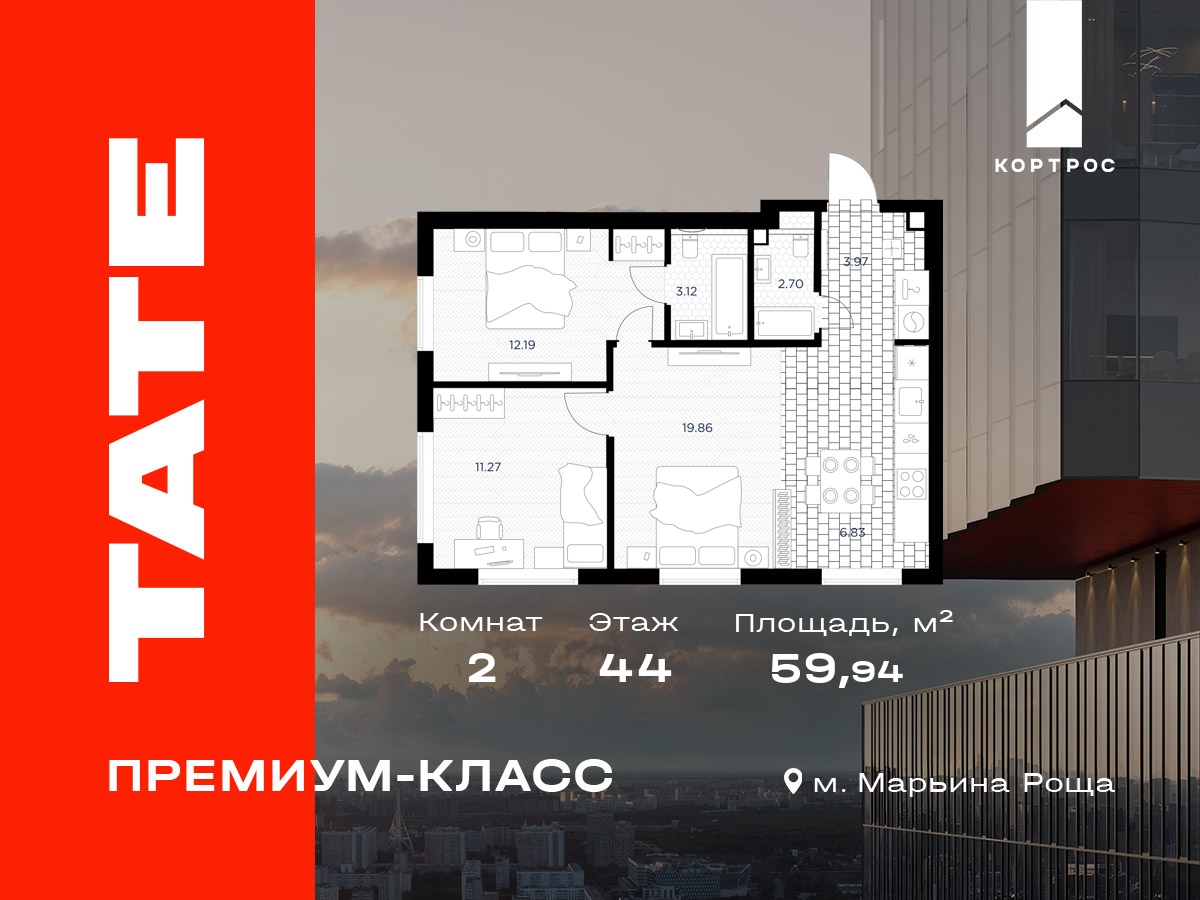 ЖК TATE (Тэйт) - современный жилищный комплекс, который будет построен в 2 квартале 2027 г. и относится к премиум-классу. Имеет удобное расположение: район Марьина Роща города Москва, Северо-Восточный округ, расстояние до ближайшего метро Марьина Роща - 20 минут пешком и 11 - на автомобиле. Также рядом находятся станции: Бутырская, Алексеевская.