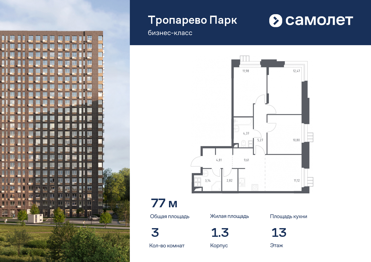 Трехкомнатные квартиры в ЖК «Тропарево Парк»