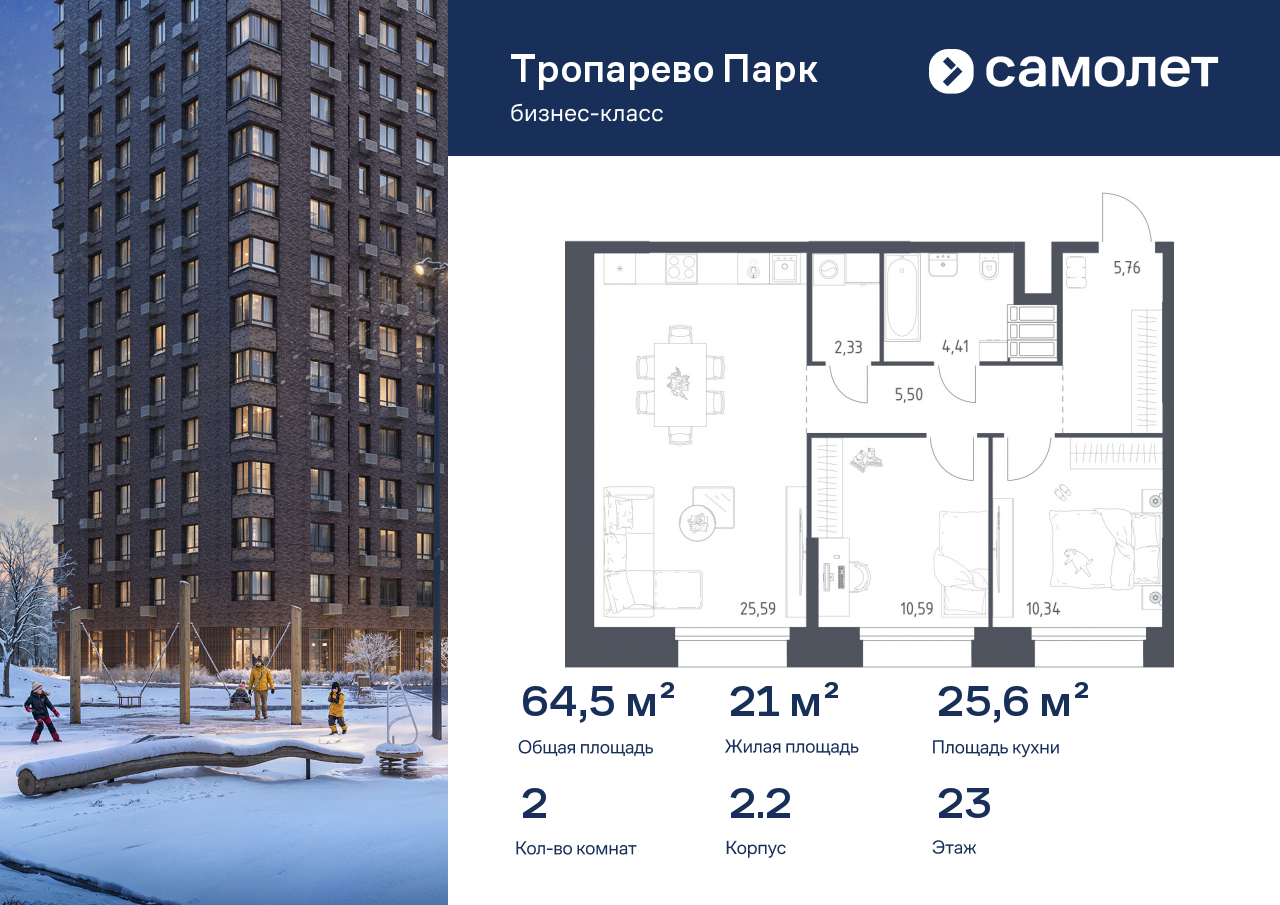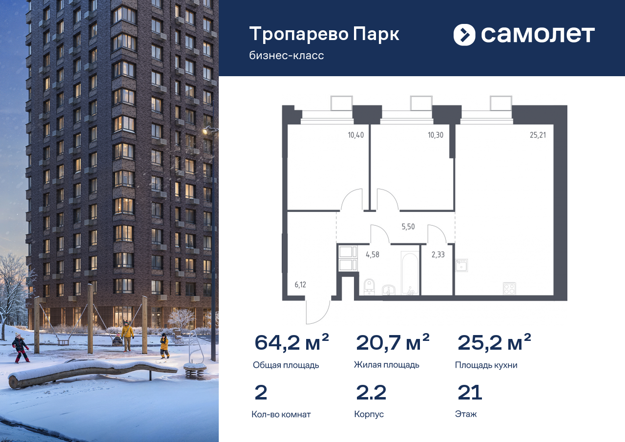 Евро двухкомнатные квартиры в ЖК «Тропарево Парк»