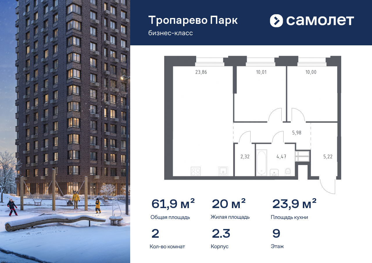 ЖК «Тропарево Парк» это проект комфорт-класса от застройщика Группа "Самолет". В него входят 7 жилых зданий расположившихся на территории деревни Дудкино в посёлке Мосрентген. Благодаря близости МКАД, Киевского шоссе и станции метро он идеально подойдет людям, которые привыкли жить в движении.