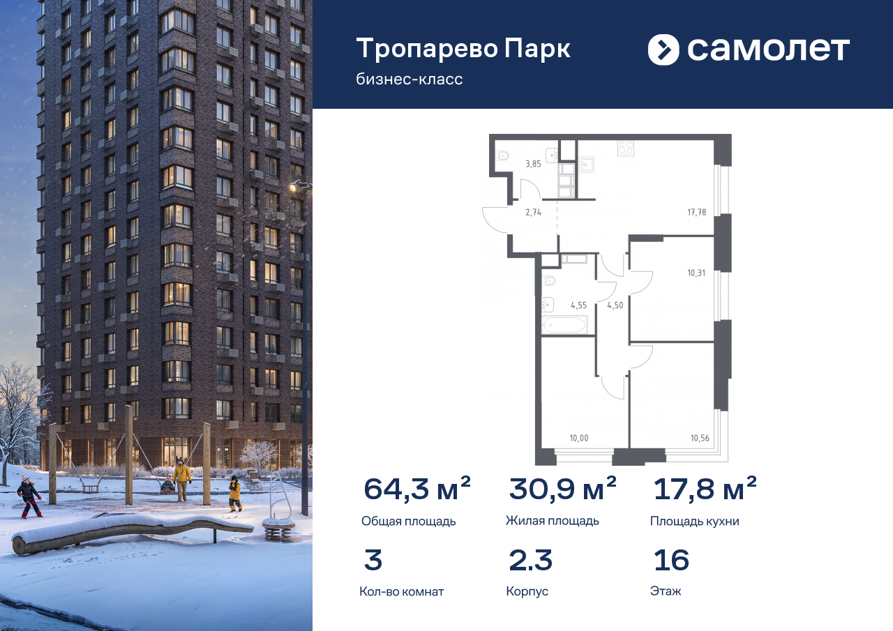 Евро трехкомнатные квартиры в ЖК «Тропарево Парк»
