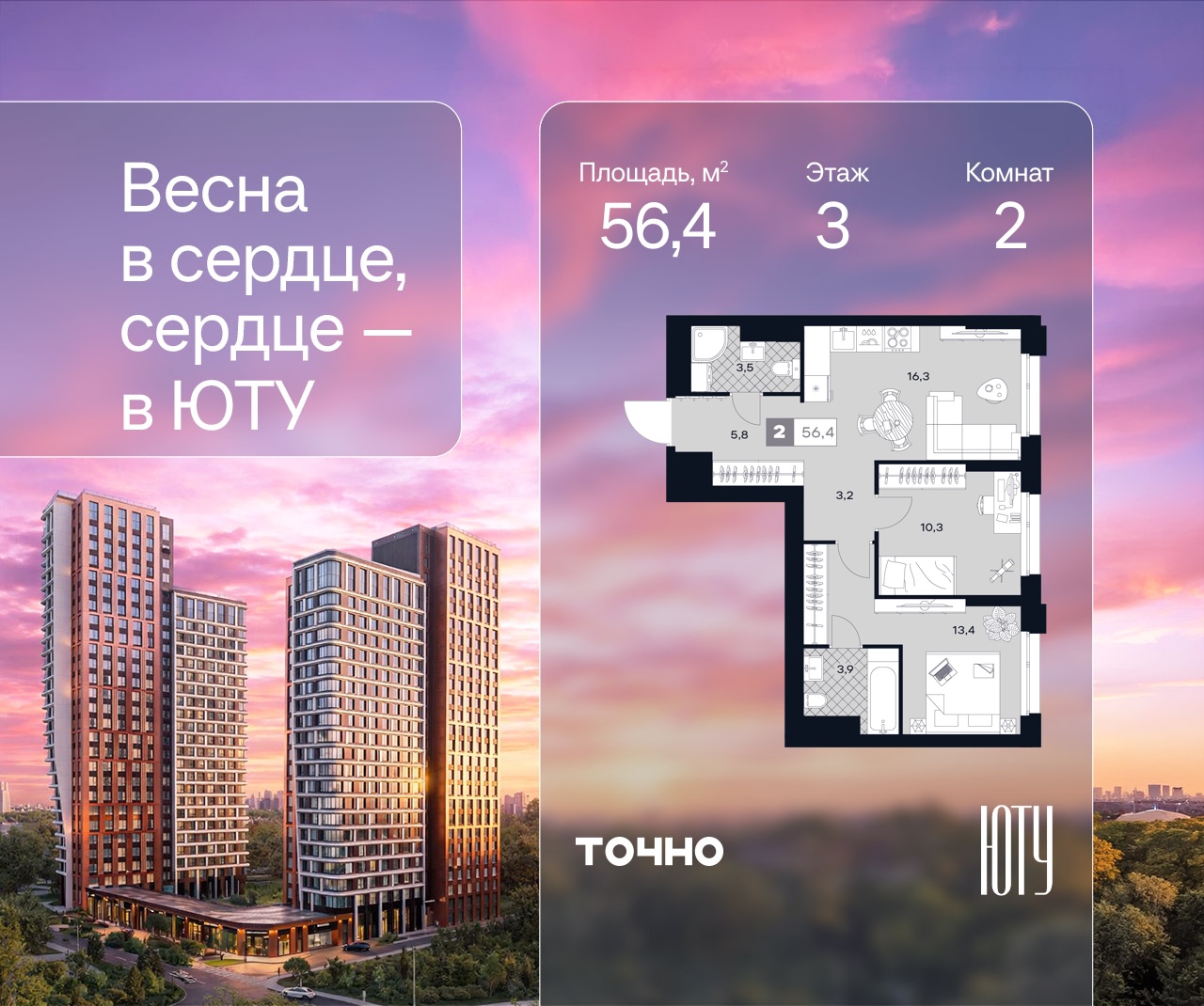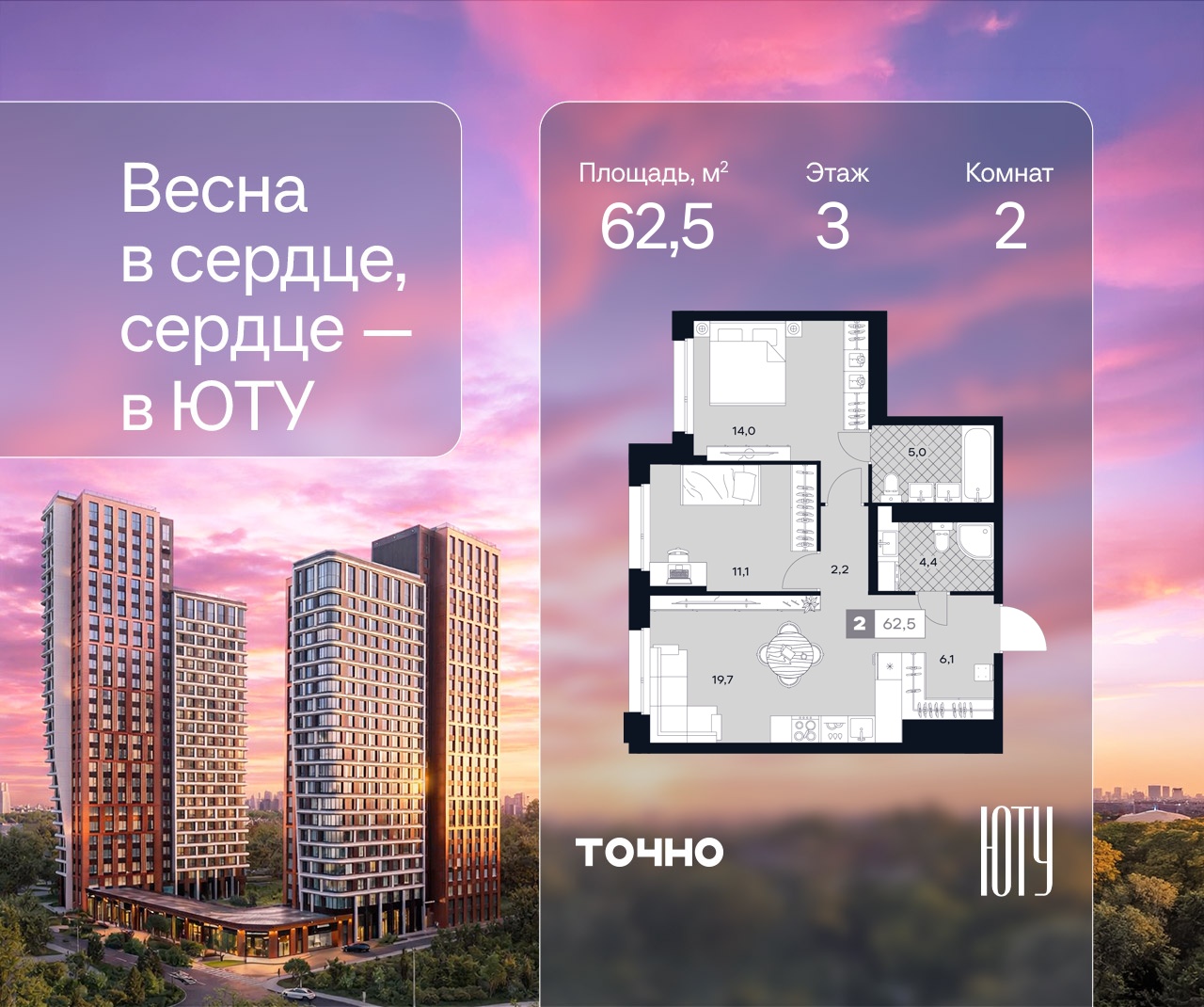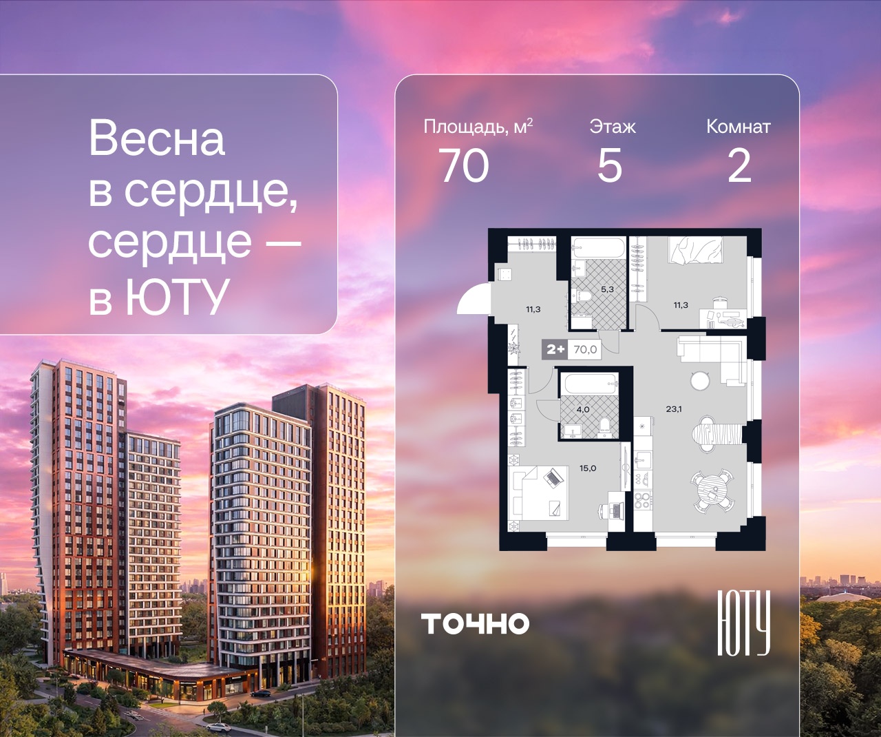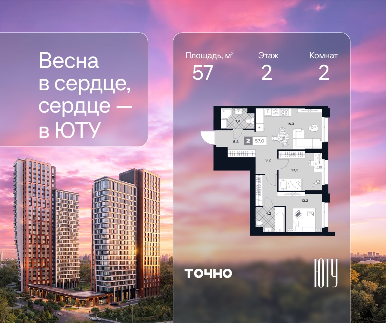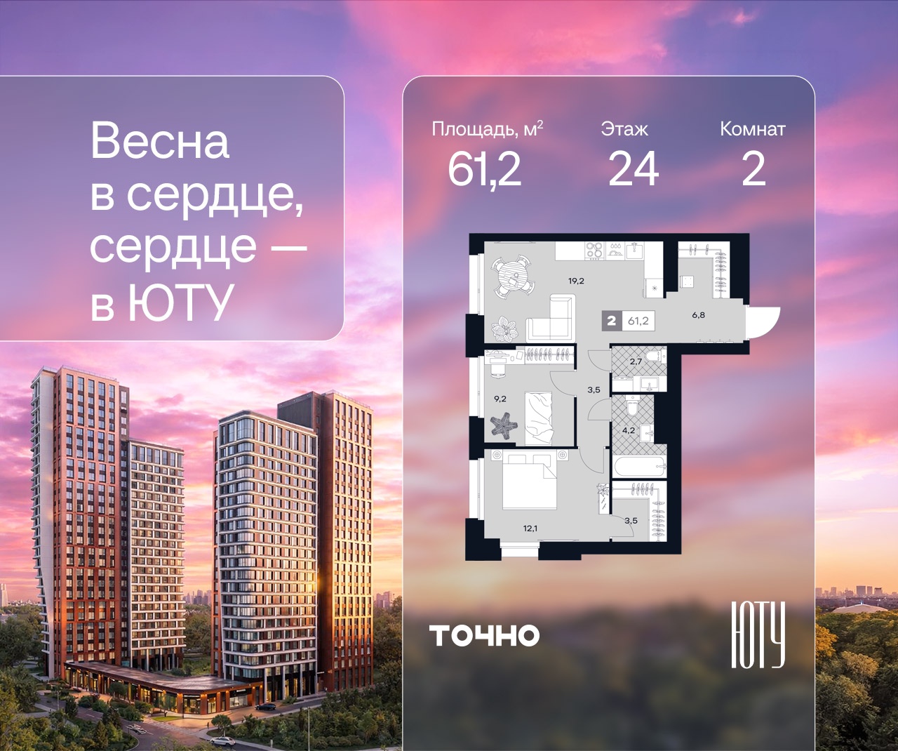 Двухкомнатные квартиры в ЖК U2 (ЮТУ)