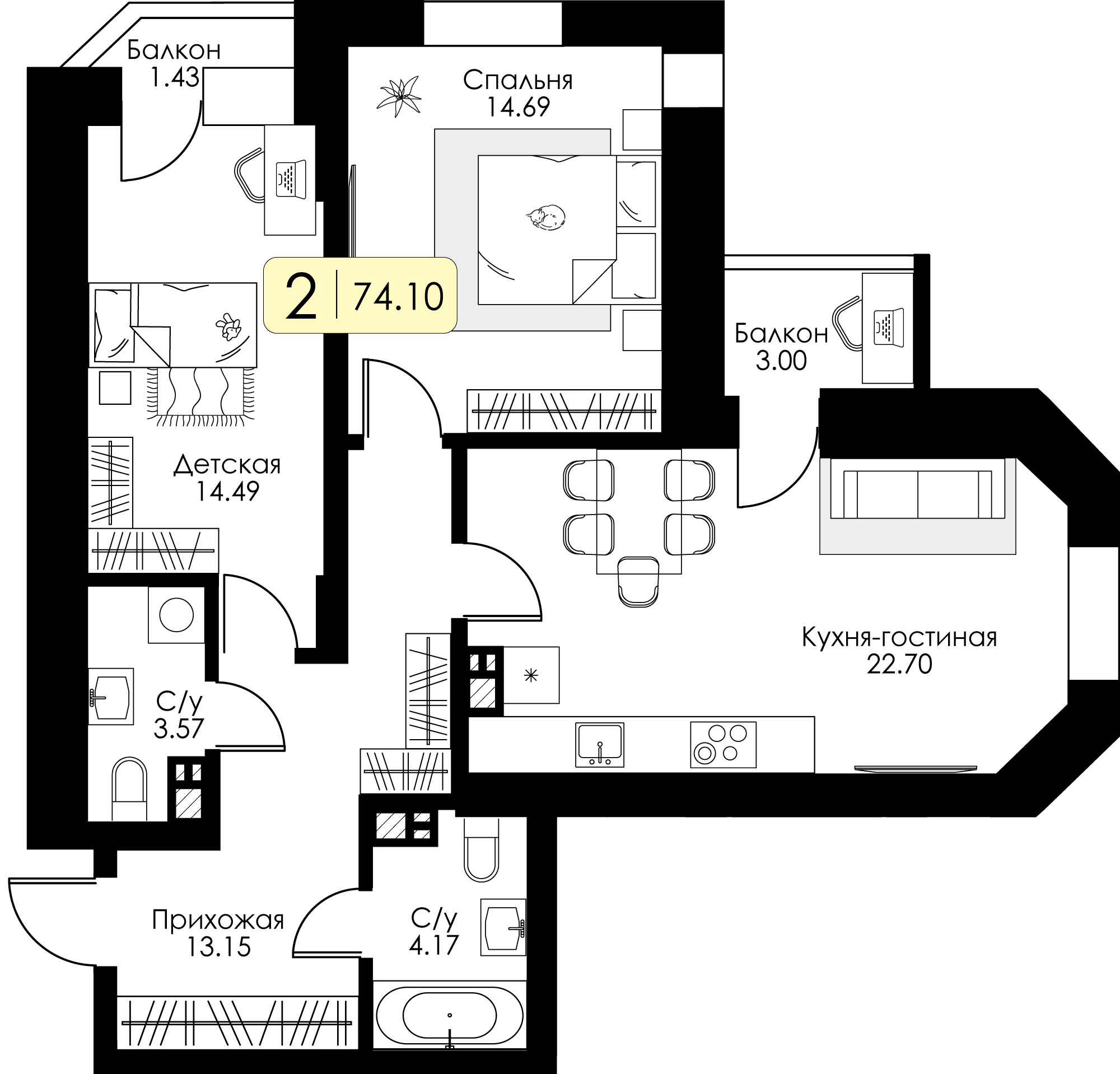 • Цена за м2 114 900 руб