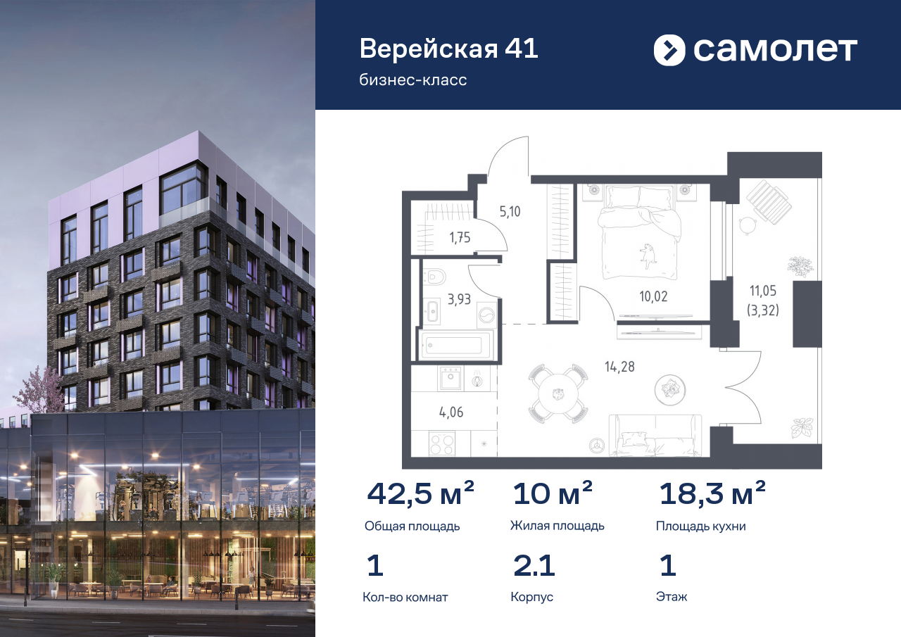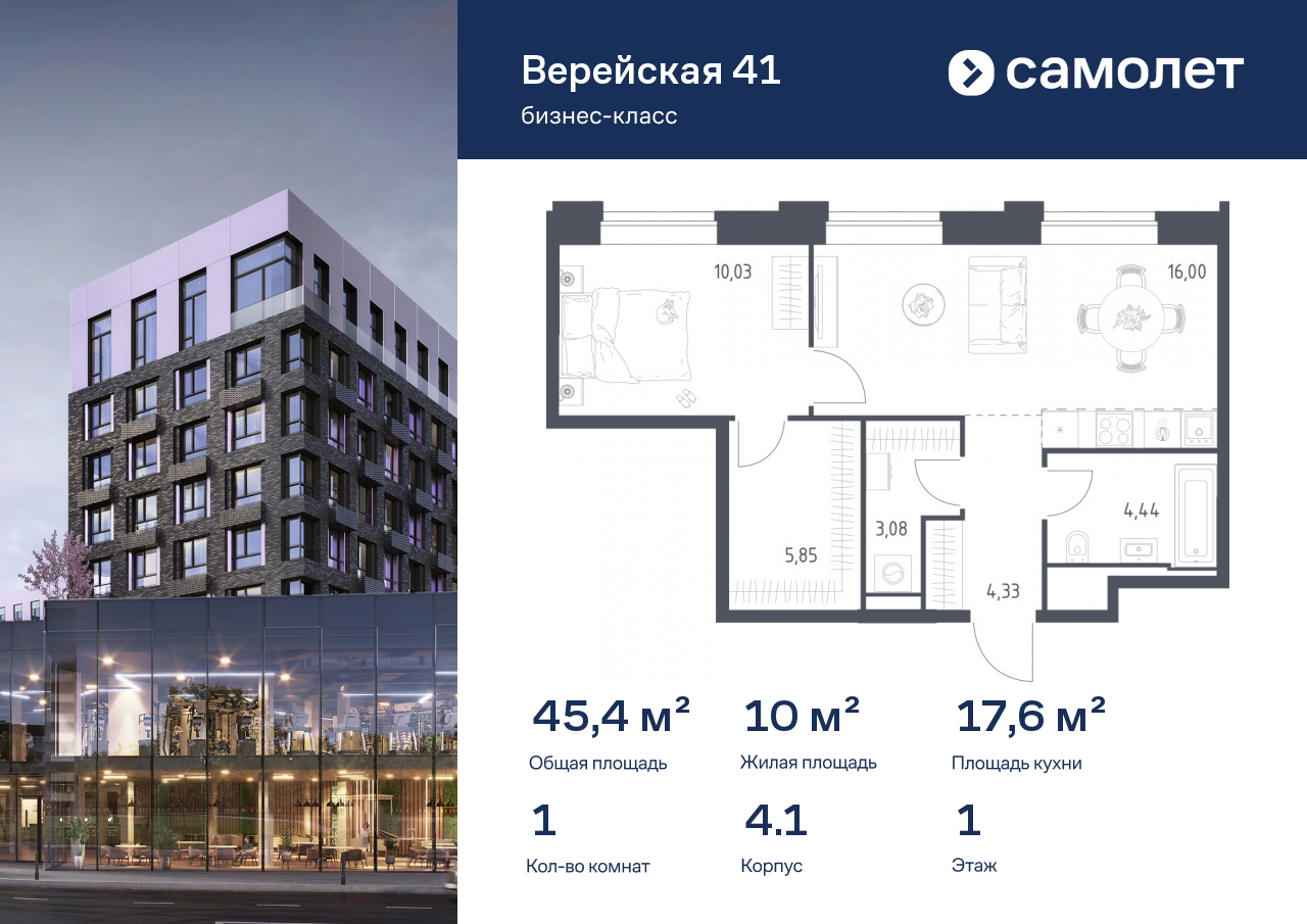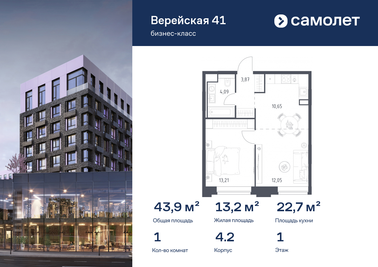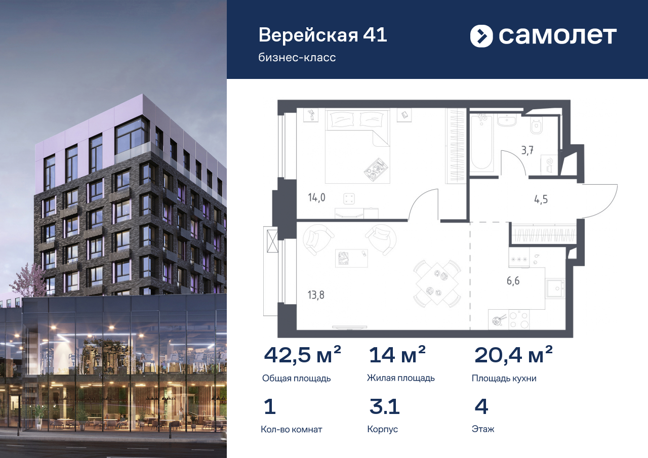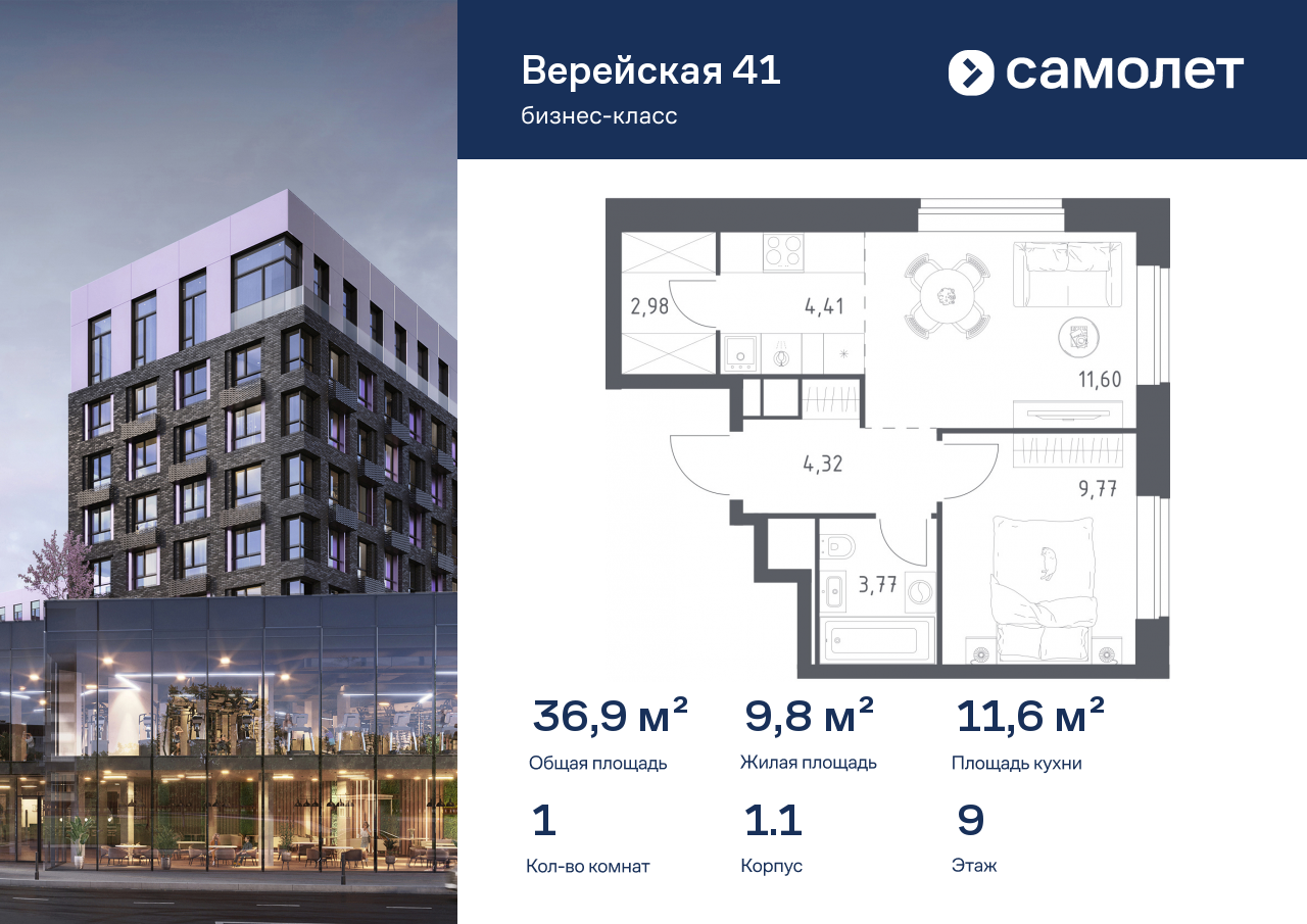 Жилой комплекс «Верейская 41» возводится застройщиком Группа "Самолёт". Проект бизнес-класса состоящий из 11 домов с высокими потолками. Здесь представлены как апартаменты с террасами, так и пентхаусы. С верхних этажей зданий открывается волшебный вид на воды реки Сетунь. Система "умного дома" поможет отказаться от переживаний о мелких бытовых моментах.