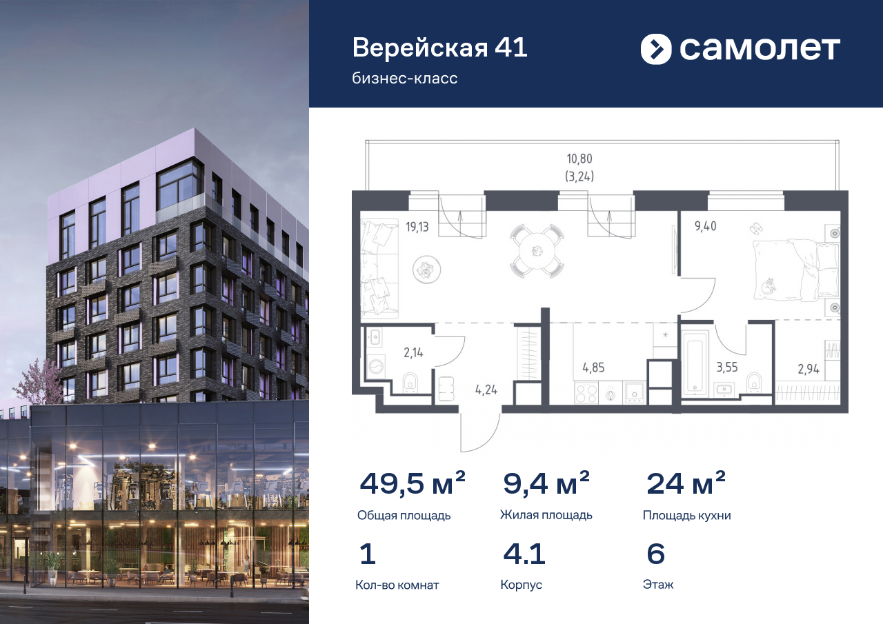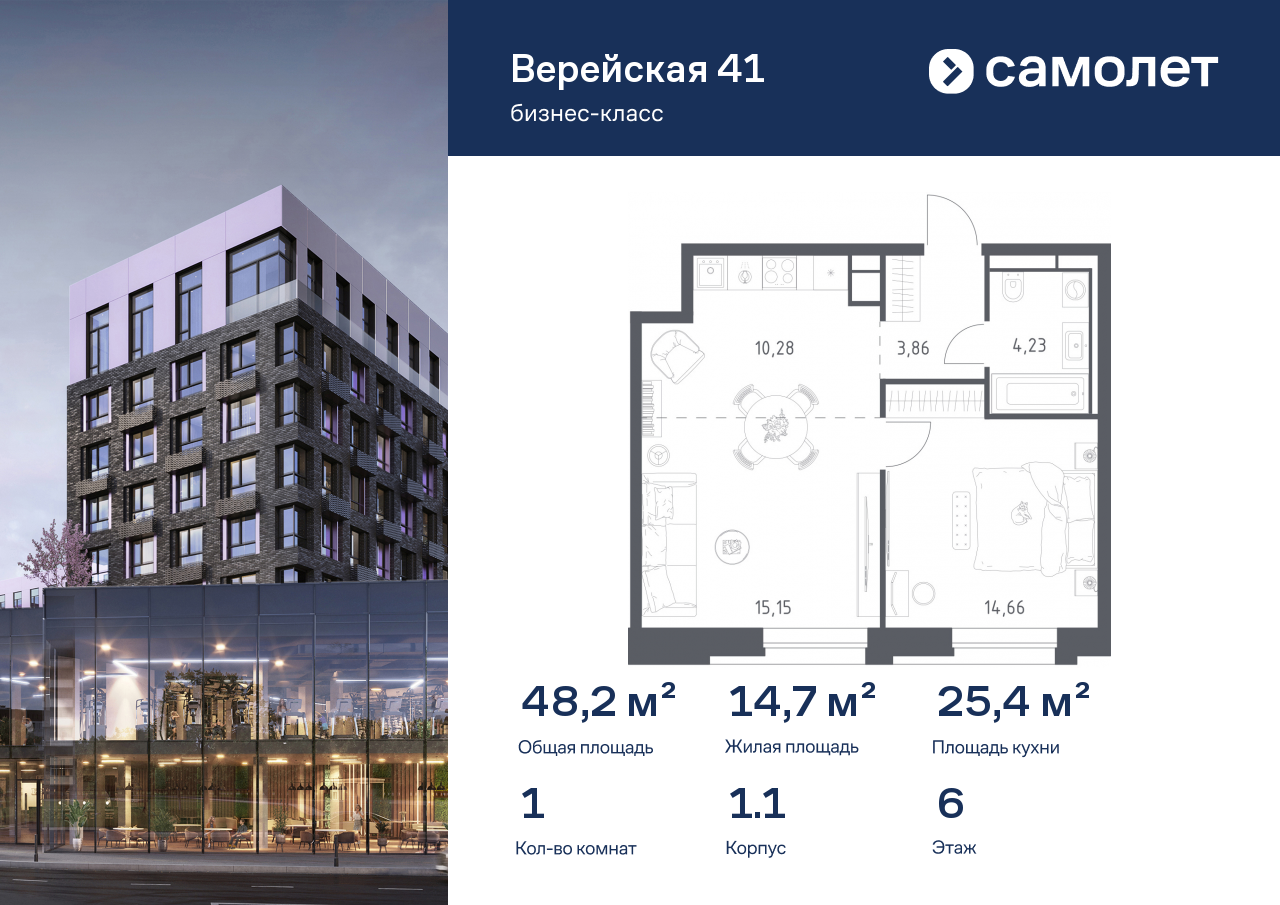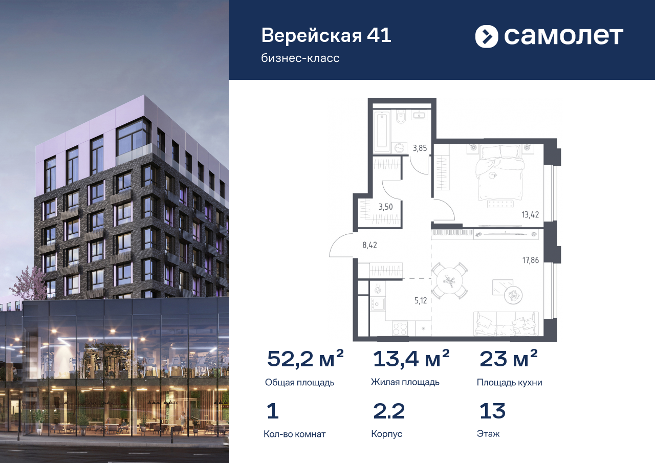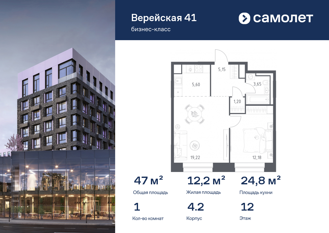Жилой комплекс «Верейская 41» возводится застройщиком Группа "Самолёт". Проект бизнес-класса состоящий из 11 домов с высокими потолками. Здесь представлены как апартаменты с террасами, так и пентхаусы. С верхних этажей зданий открывается волшебный вид на воды реки Сетунь. Система "умного дома" поможет отказаться от переживаний о мелких бытовых моментах.