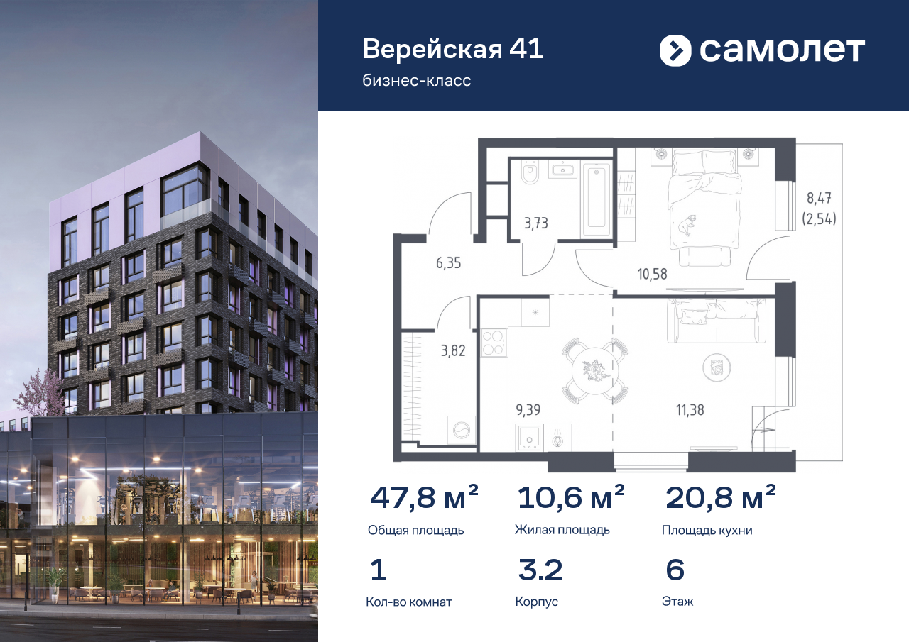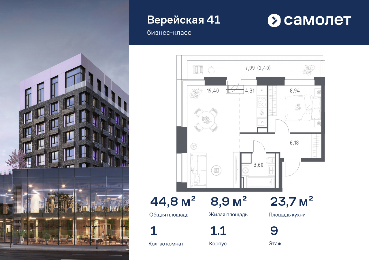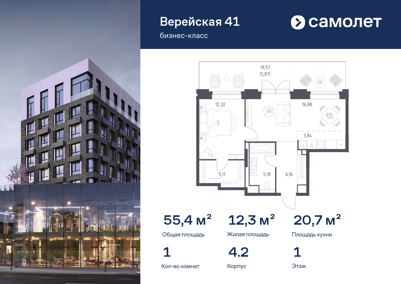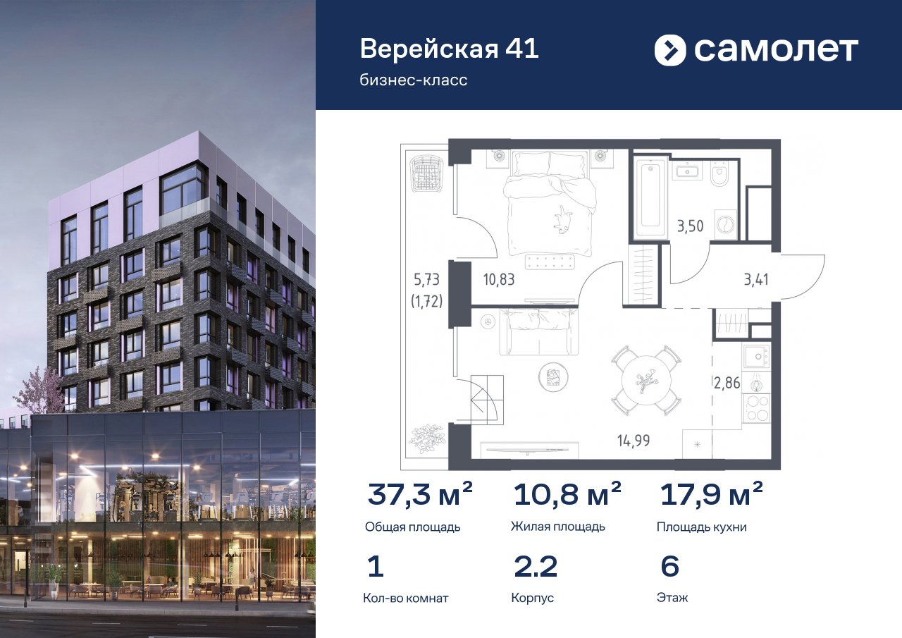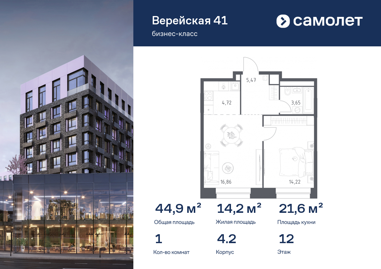 Жилой комплекс «Верейская 41» возводится застройщиком Группа "Самолёт". Проект бизнес-класса состоящий из 11 домов с высокими потолками. Здесь представлены как апартаменты с террасами, так и пентхаусы. С верхних этажей зданий открывается волшебный вид на воды реки Сетунь. Система "умного дома" поможет отказаться от переживаний о мелких бытовых моментах.
