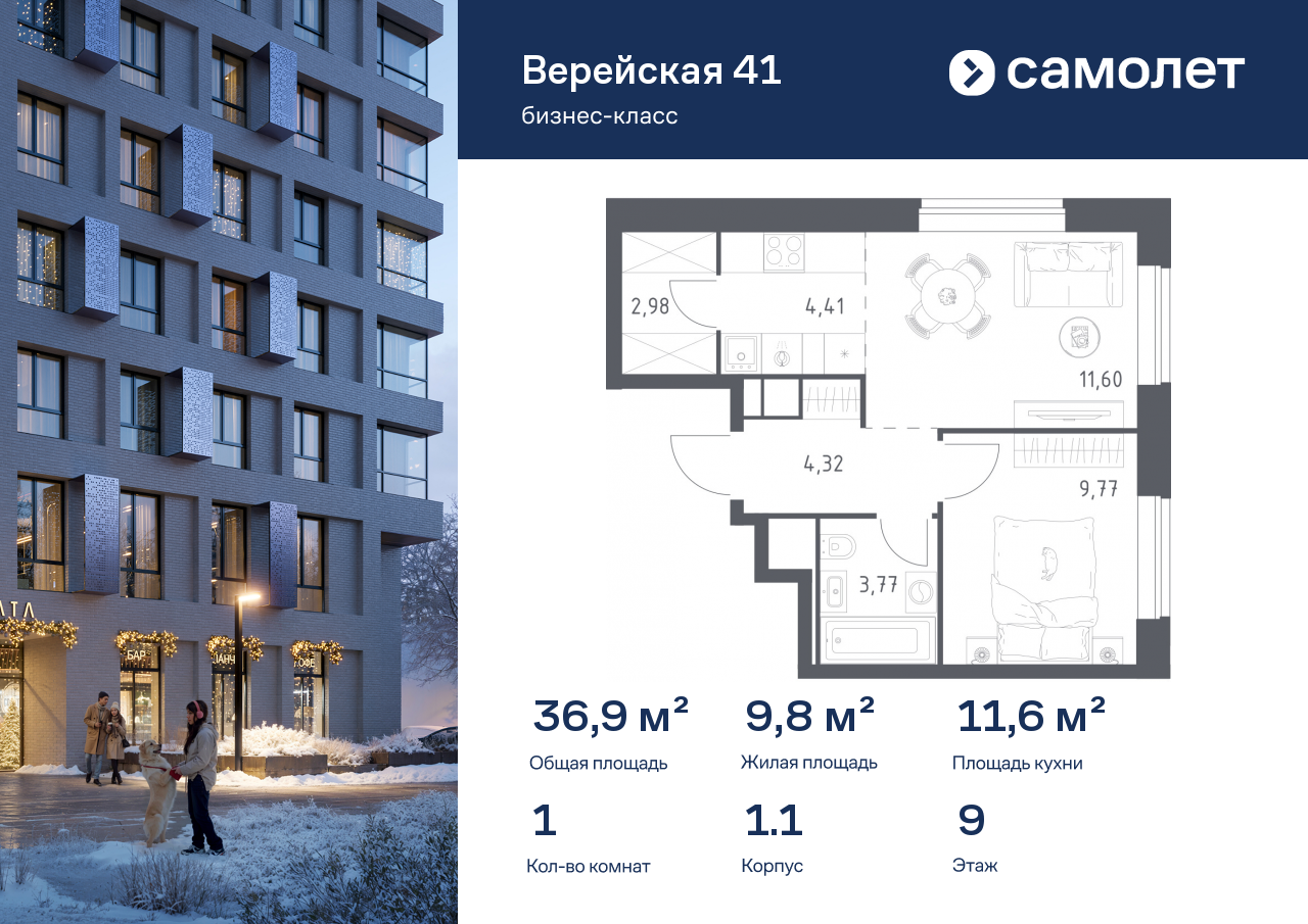 Жилой комплекс «Верейская 41» возводится застройщиком Группа "Самолёт". Проект бизнес-класса состоящий из 11 домов с высокими потолками. Здесь представлены как апартаменты с террасами, так и пентхаусы. С верхних этажей зданий открывается волшебный вид на воды реки Сетунь. Система "умного дома" поможет отказаться от переживаний о мелких бытовых моментах.