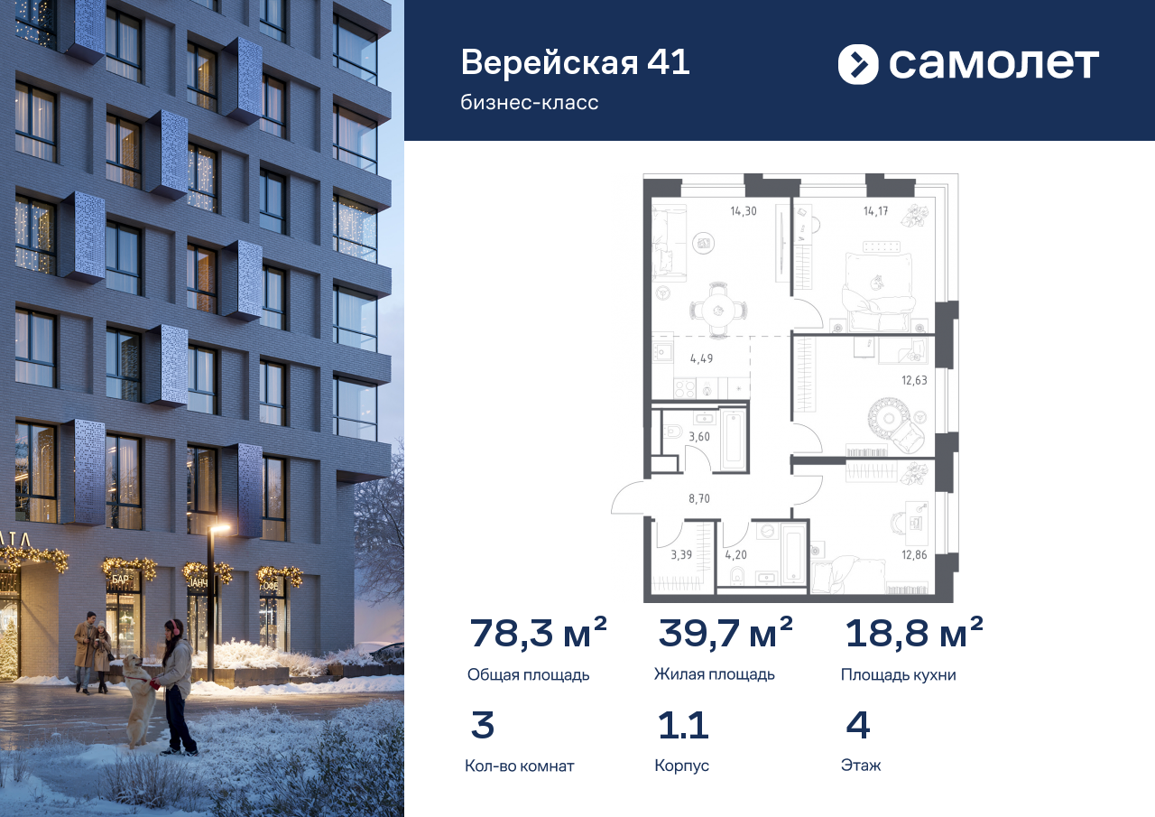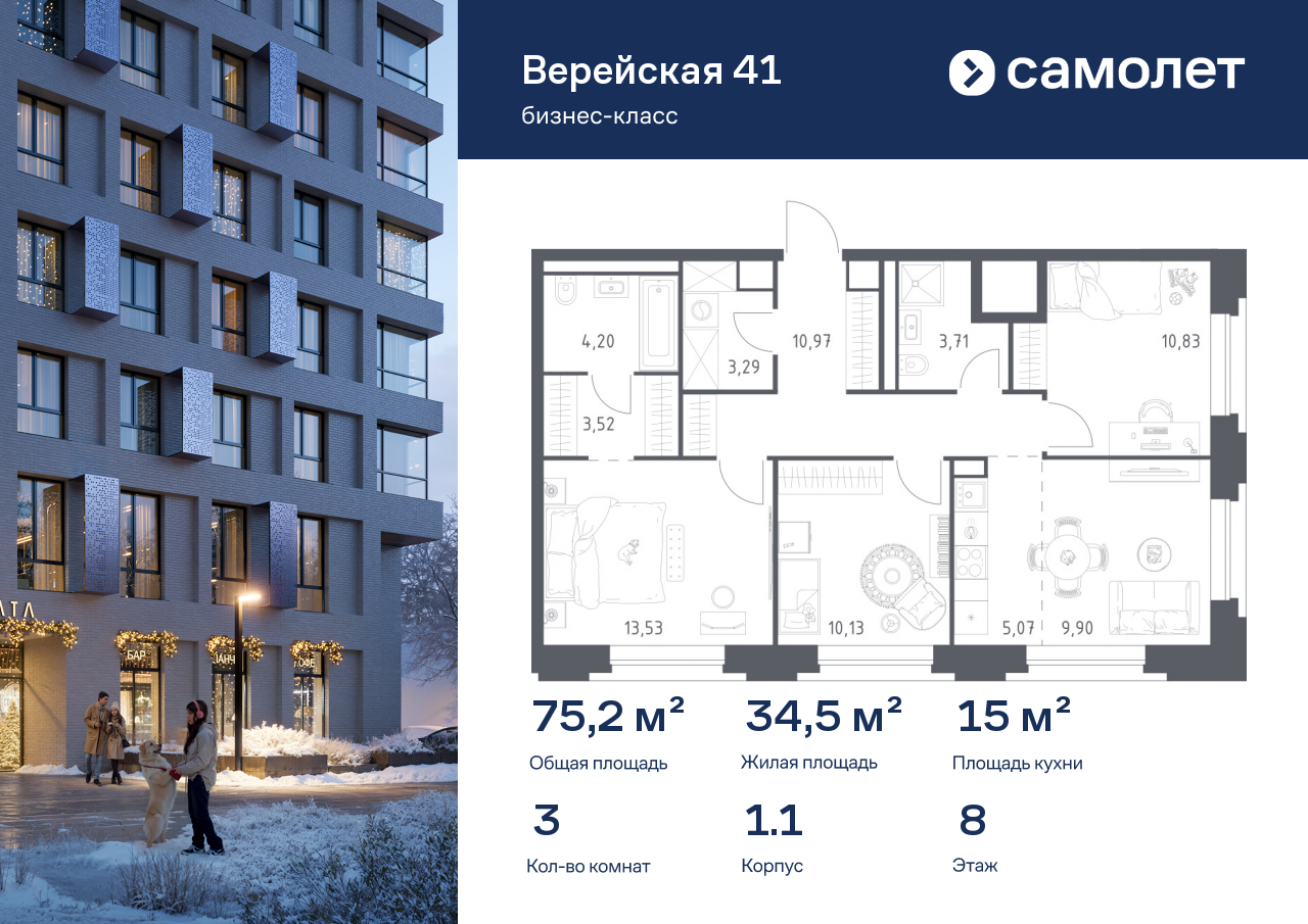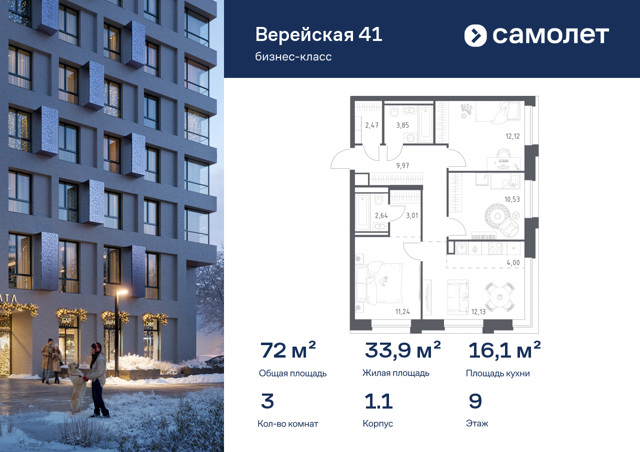 Трехкомнатные квартиры в ЖК «Верейская 41»