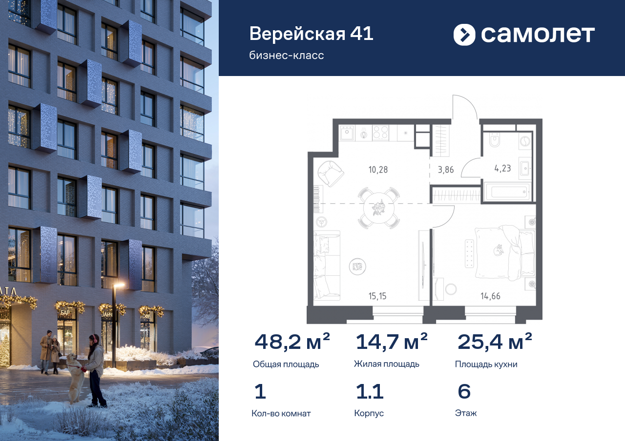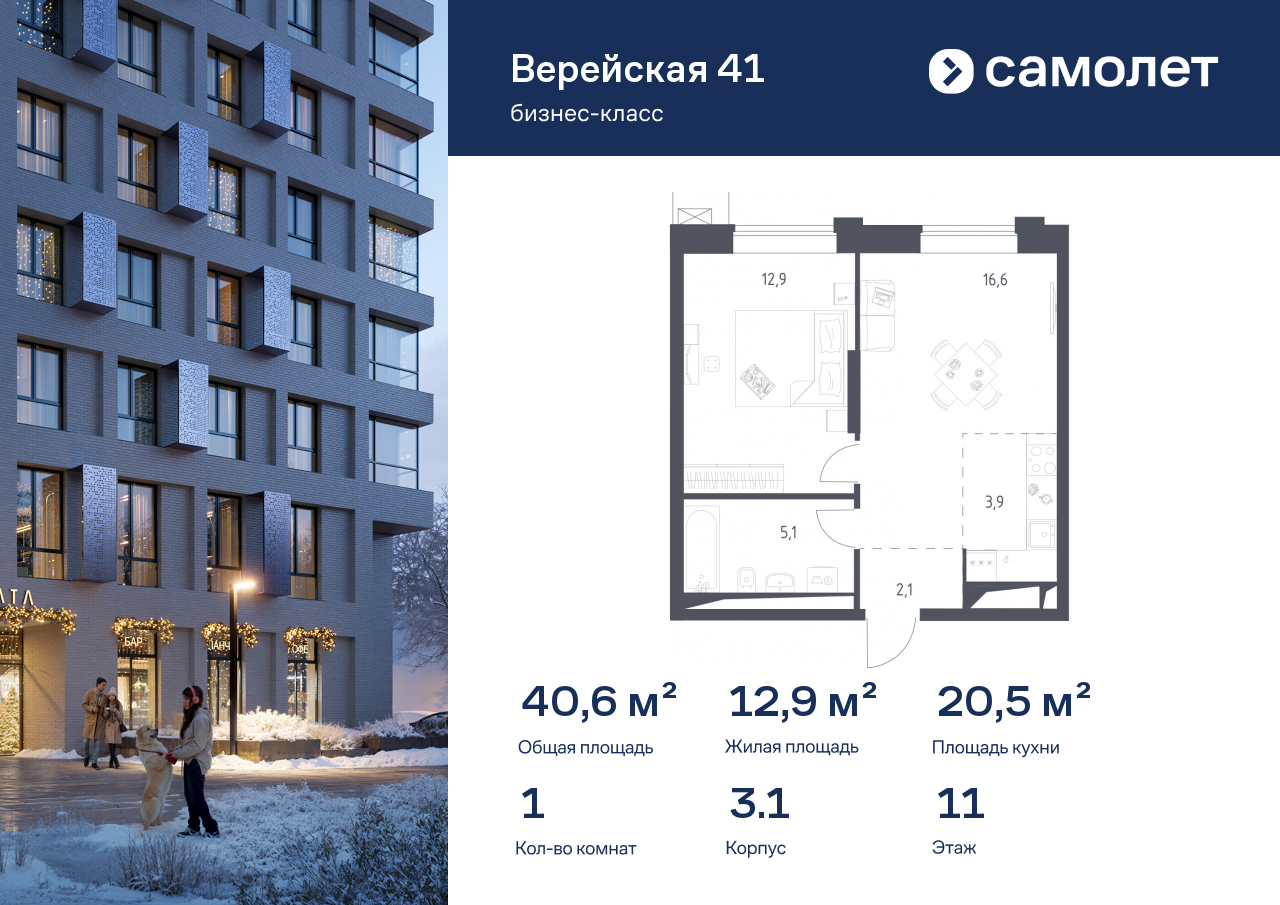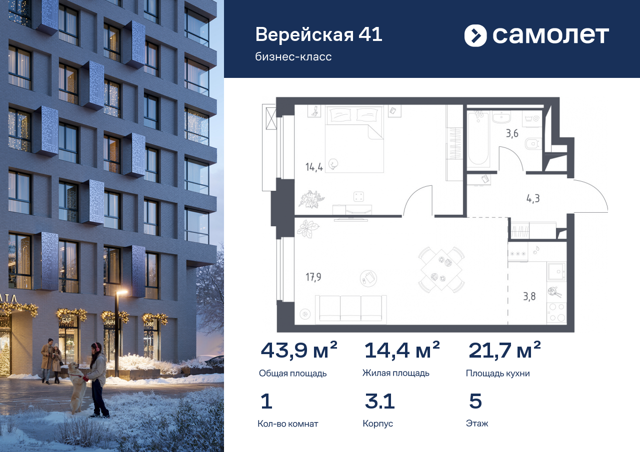 Жилой комплекс «Верейская 41» возводится застройщиком Группа "Самолёт". Проект бизнес-класса состоящий из 11 домов с высокими потолками. Здесь представлены как апартаменты с террасами, так и пентхаусы. С верхних этажей зданий открывается волшебный вид на воды реки Сетунь. Система "умного дома" поможет отказаться от переживаний о мелких бытовых моментах.