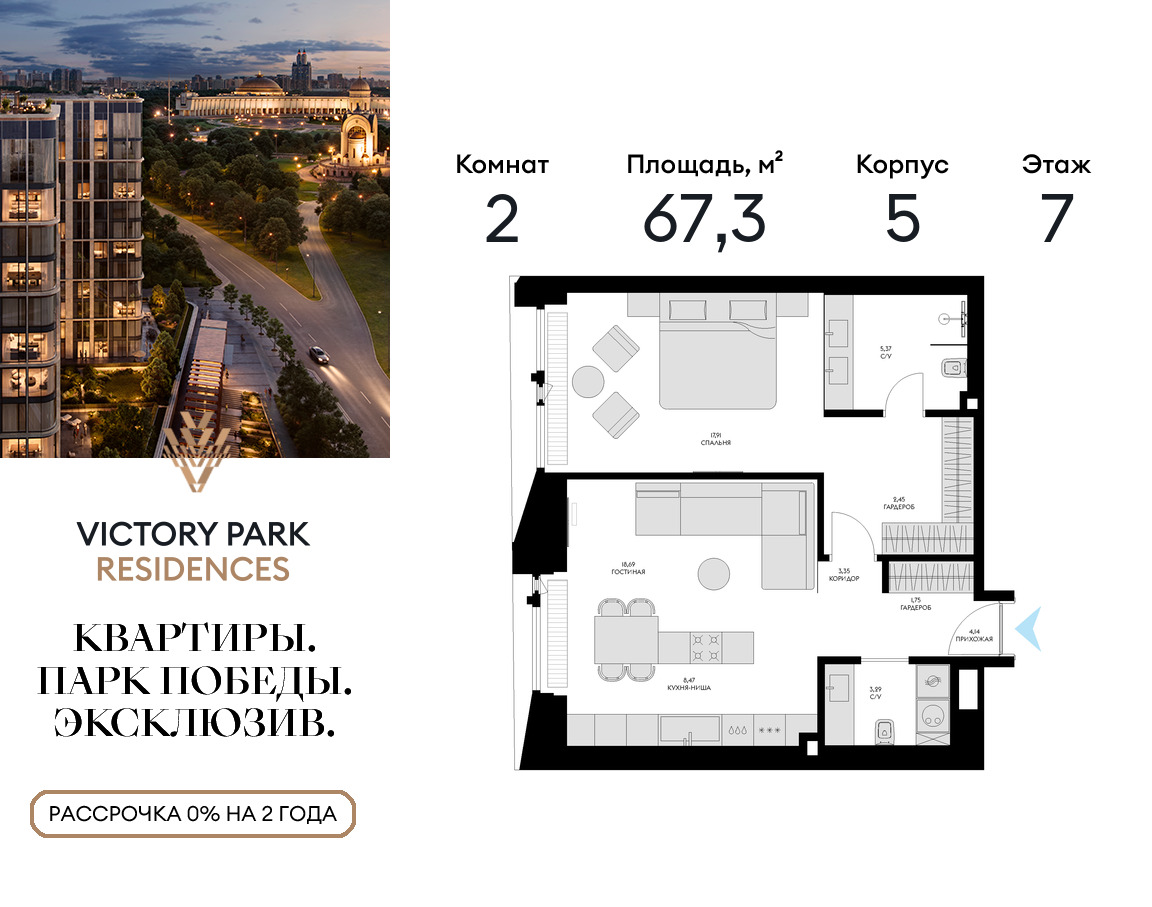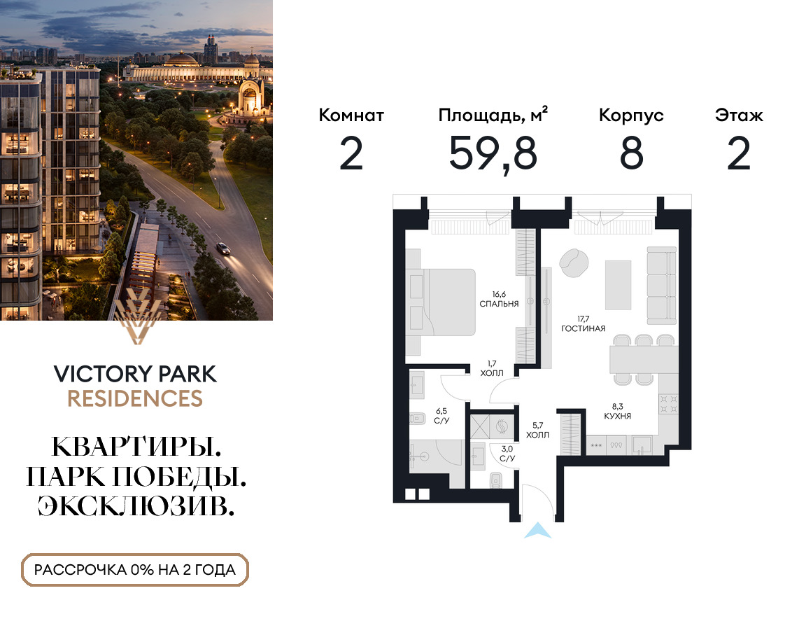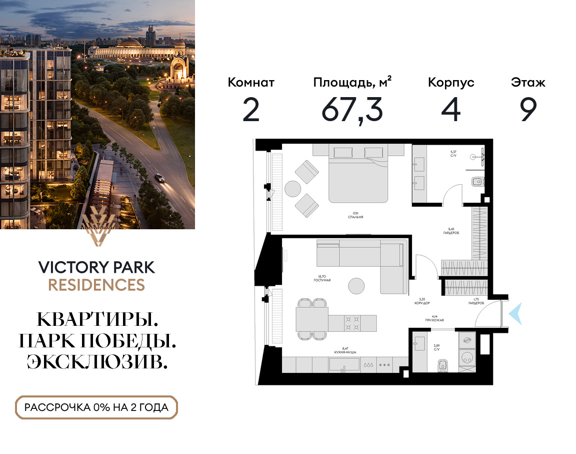 Двухкомнатные квартиры в ЖК Victory Park Residences (Виктори Парк Резиденсез)