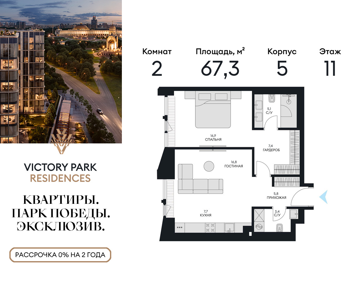 Двухкомнатные квартиры в ЖК Victory Park Residences (Виктори Парк Резиденсез)
