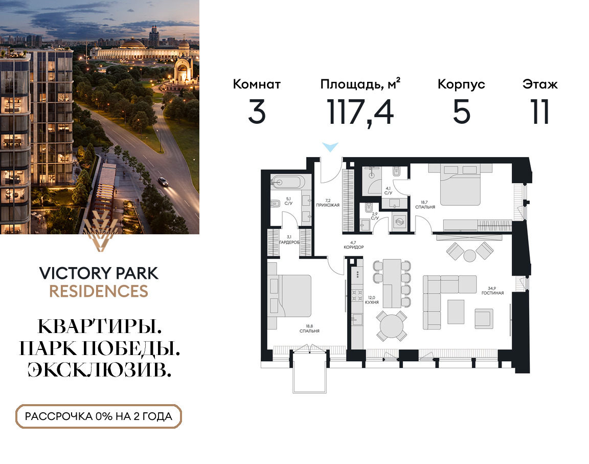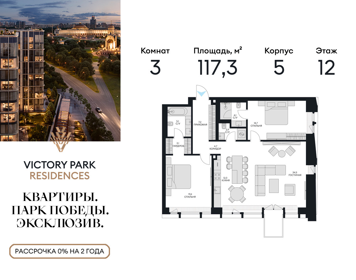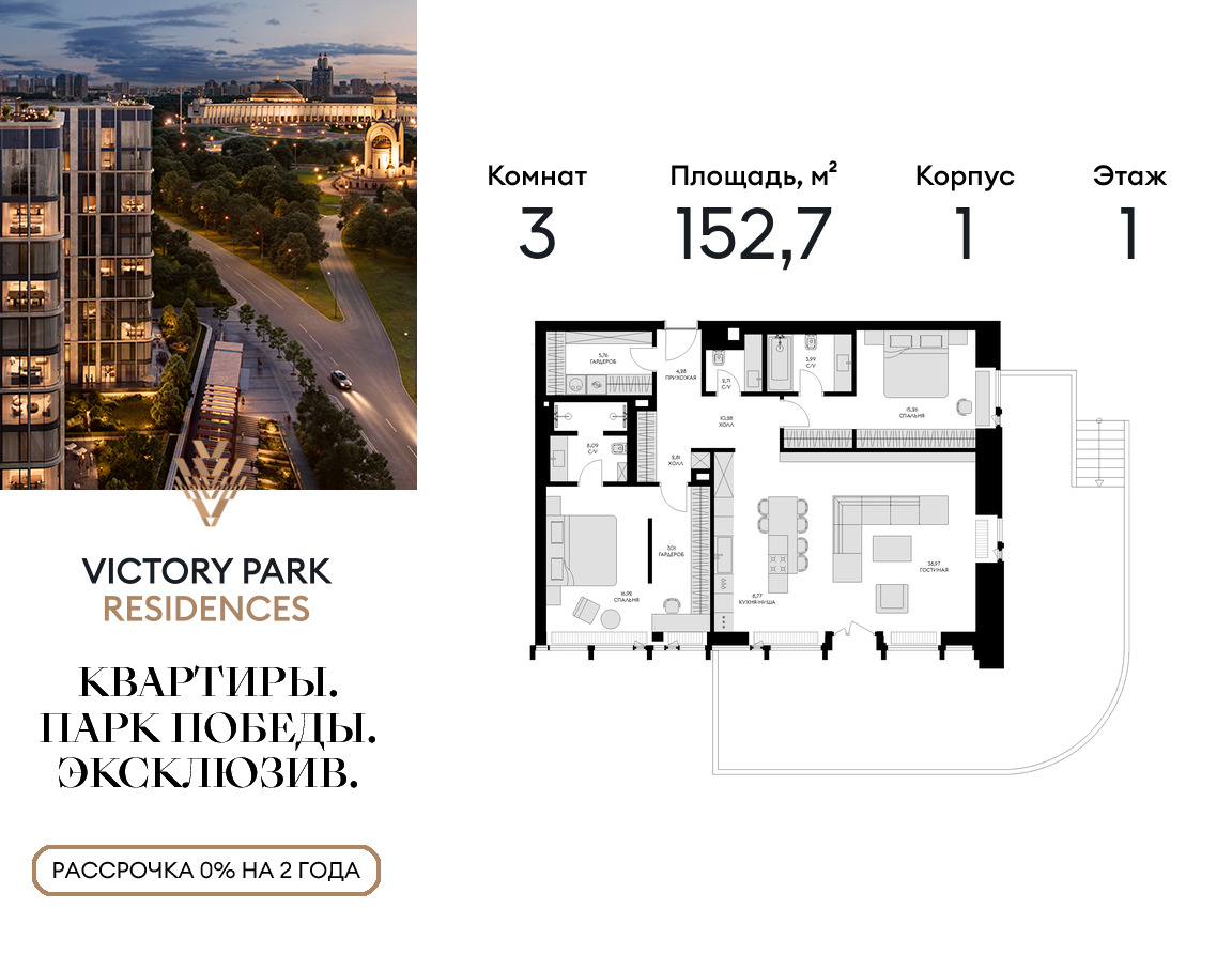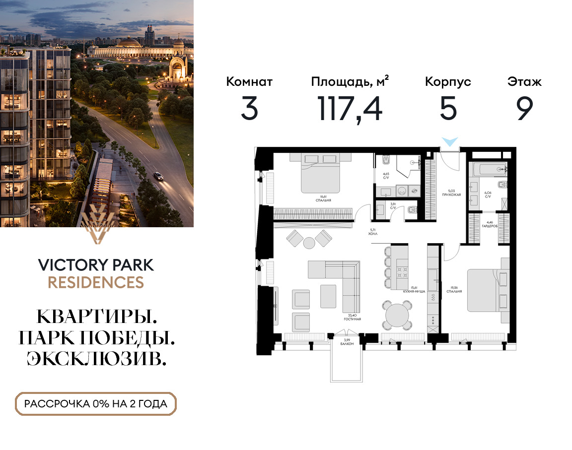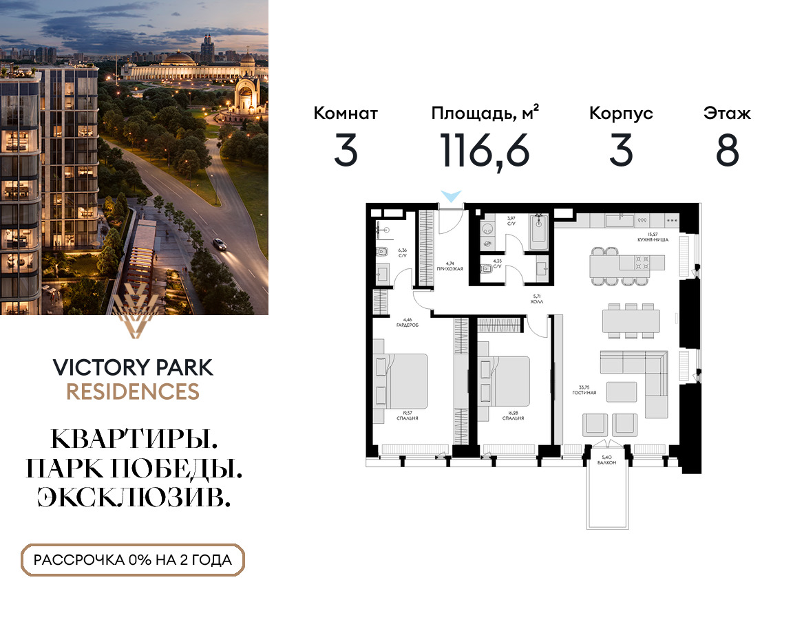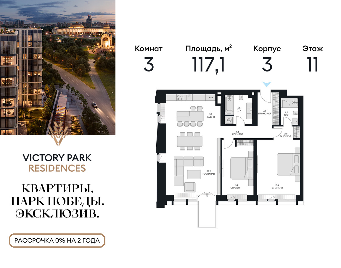 Трехкомнатные квартиры в ЖК Victory Park Residences (Виктори Парк Резиденсез)