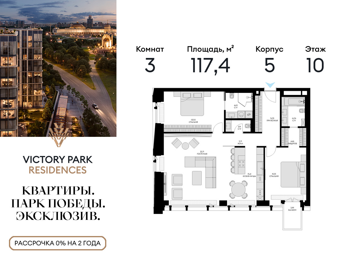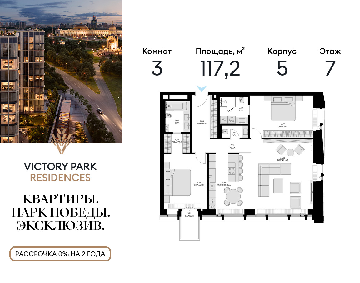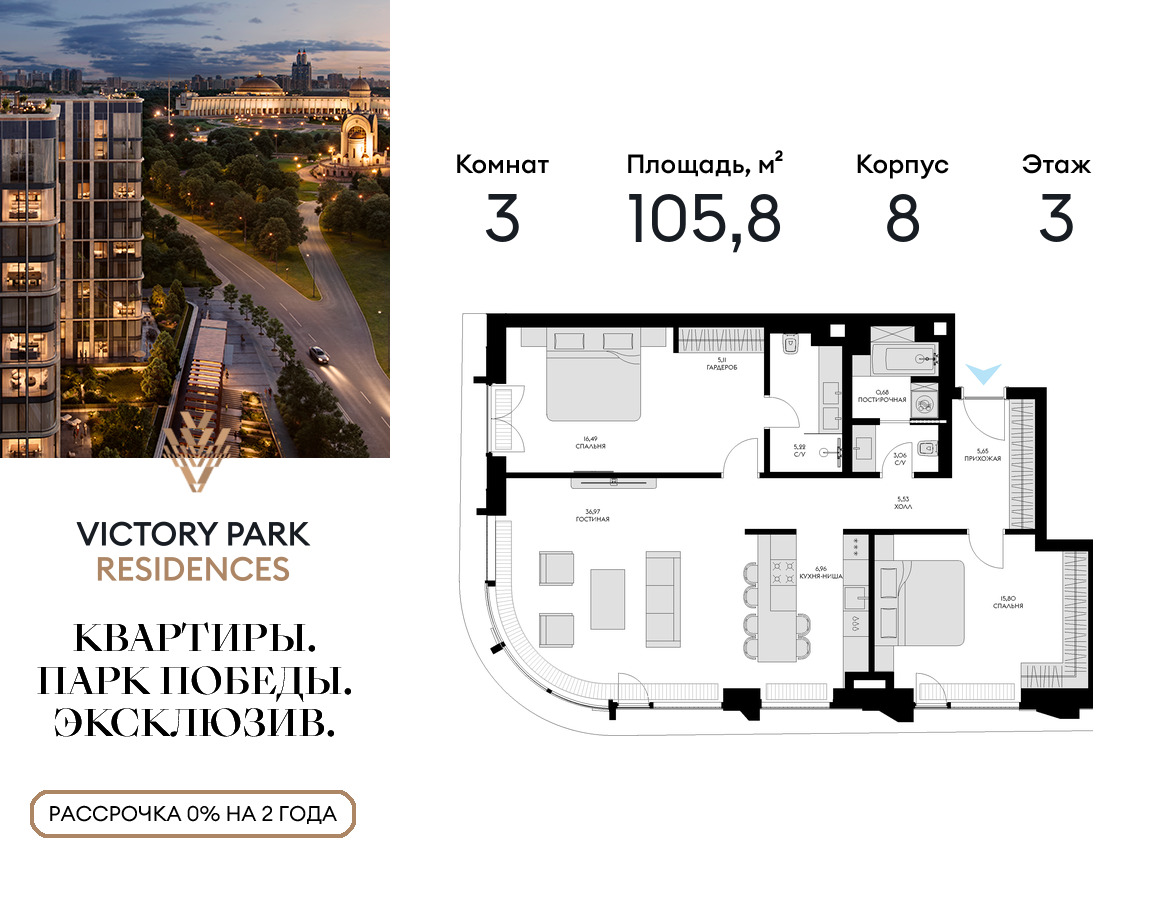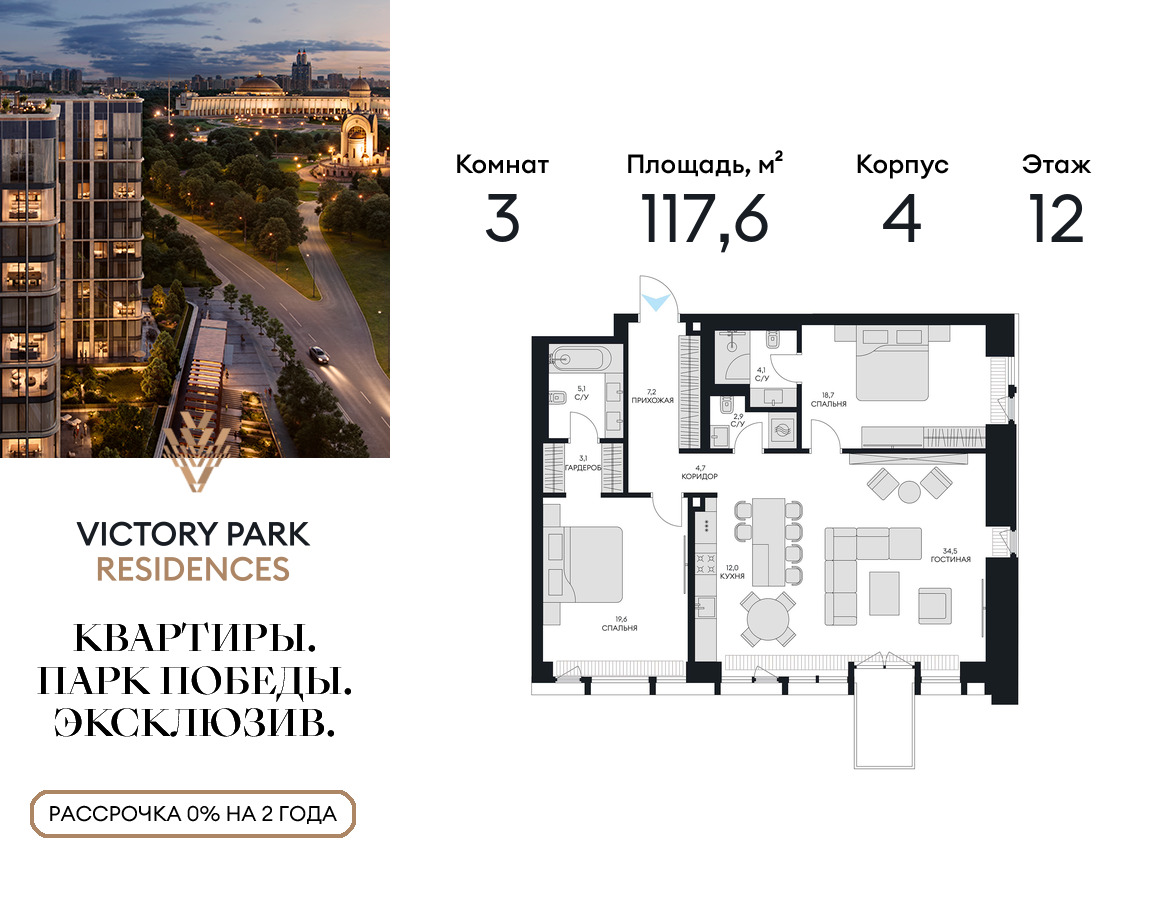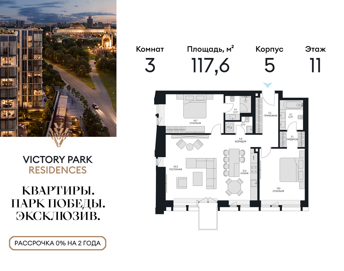 Трехкомнатные квартиры в ЖК Victory Park Residences (Виктори Парк Резиденсез)