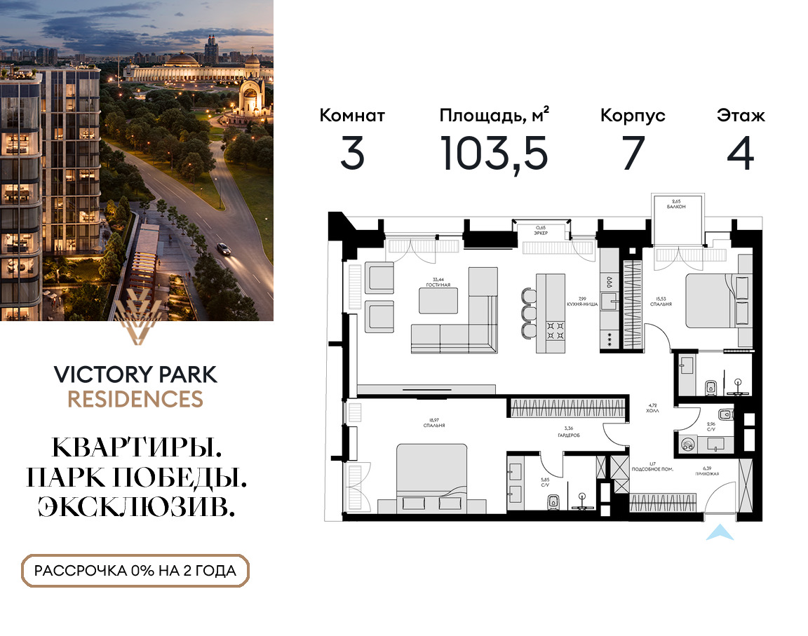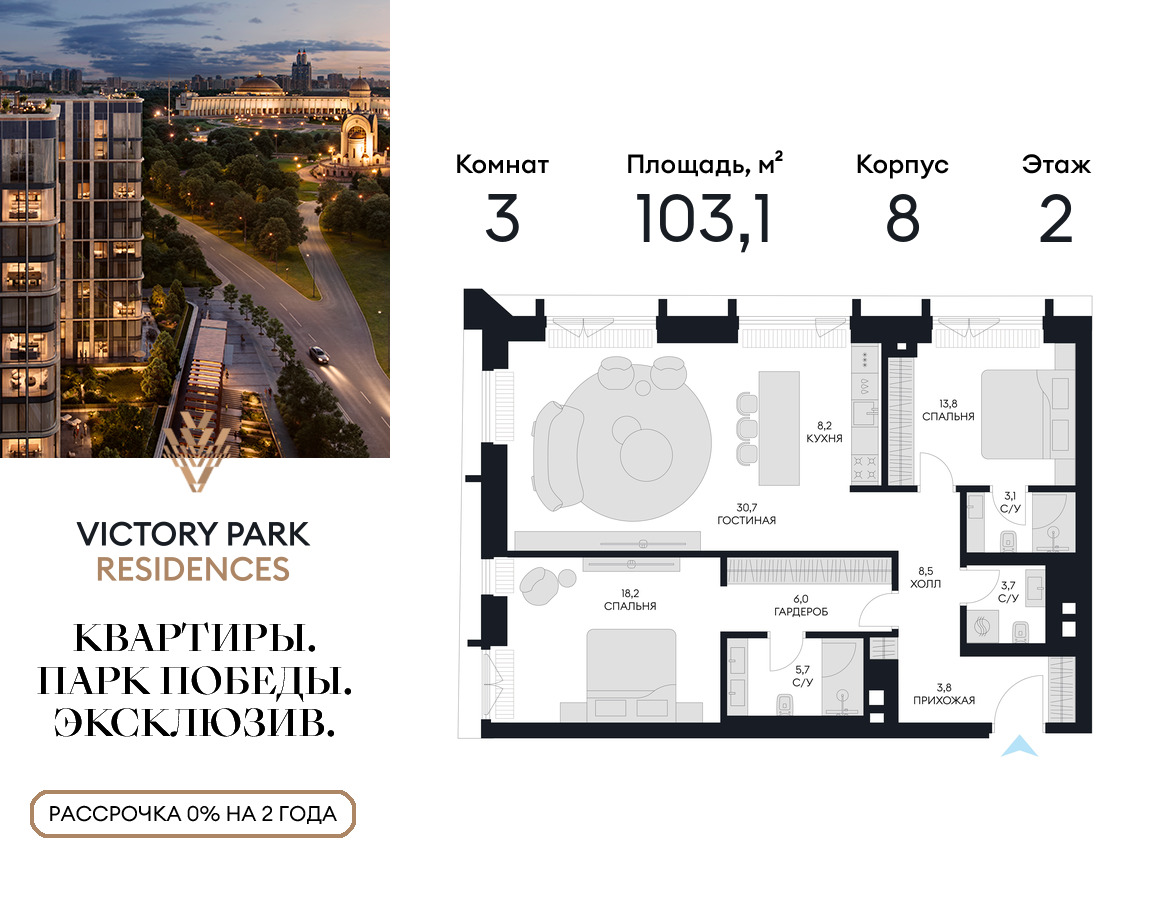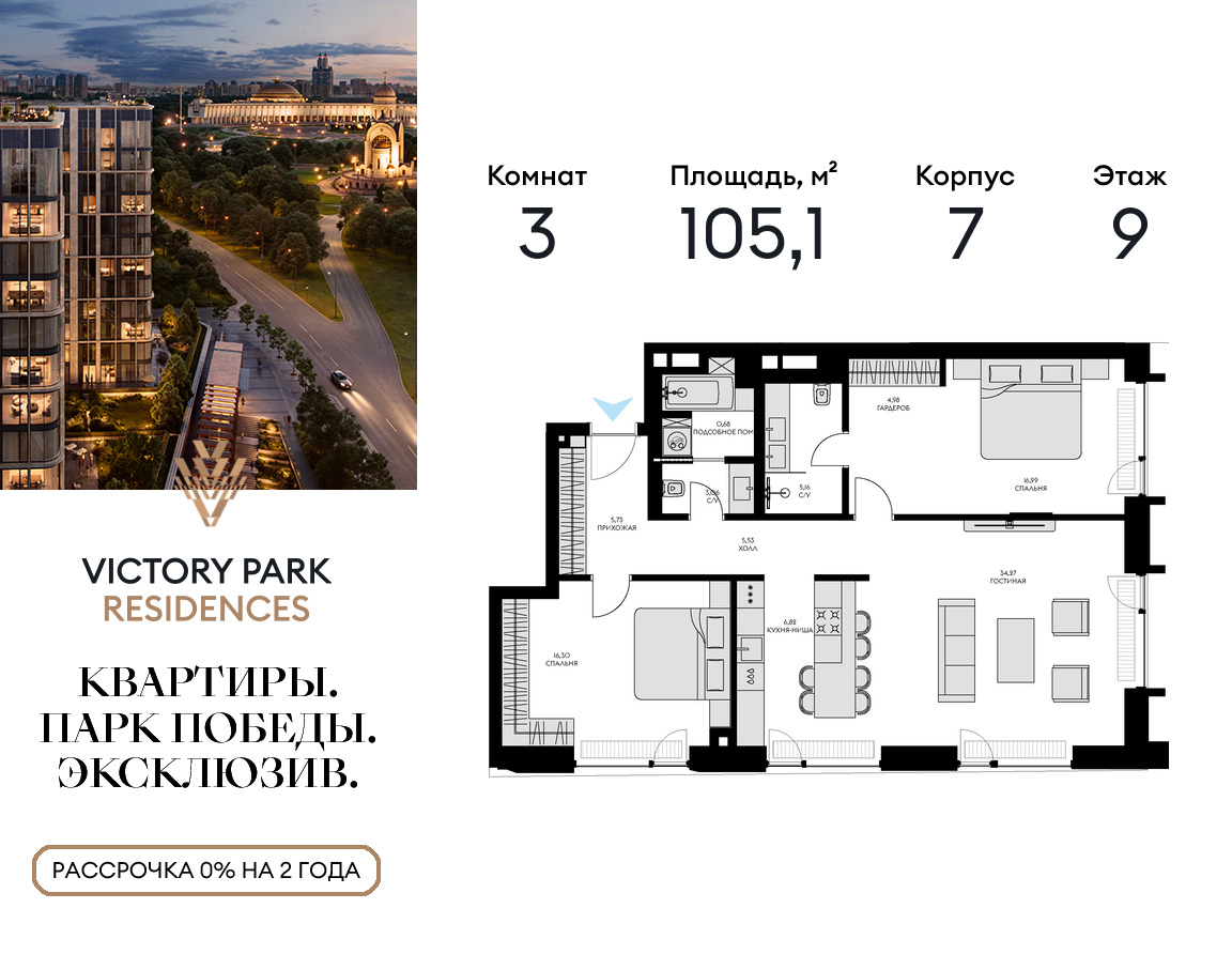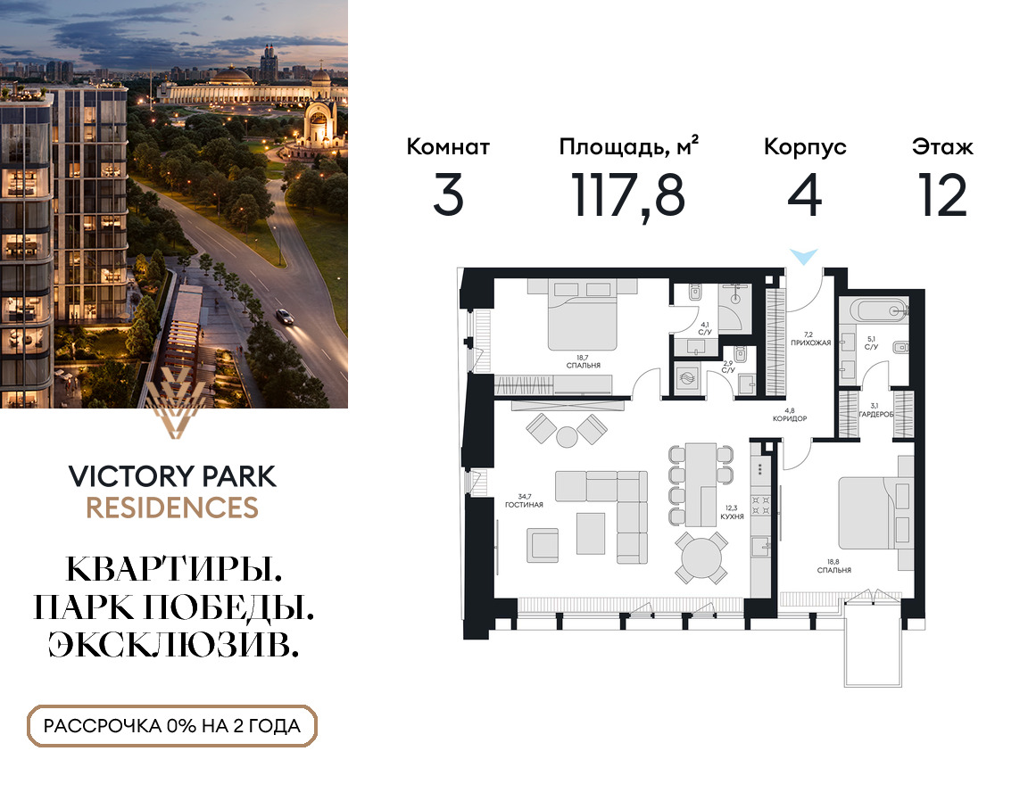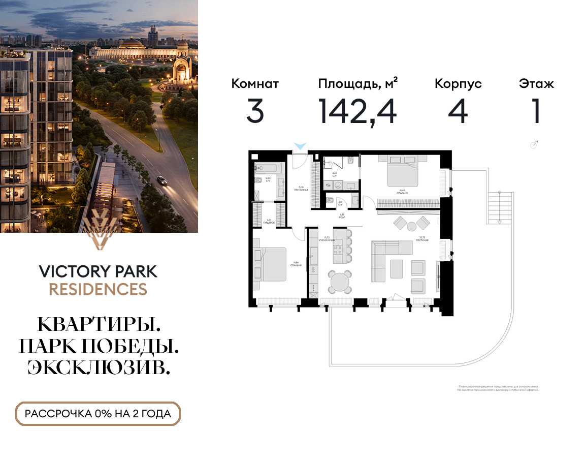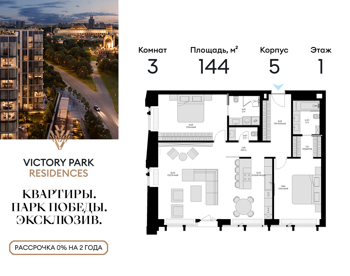 Трехкомнатные квартиры в ЖК Victory Park Residences (Виктори Парк Резиденсез)