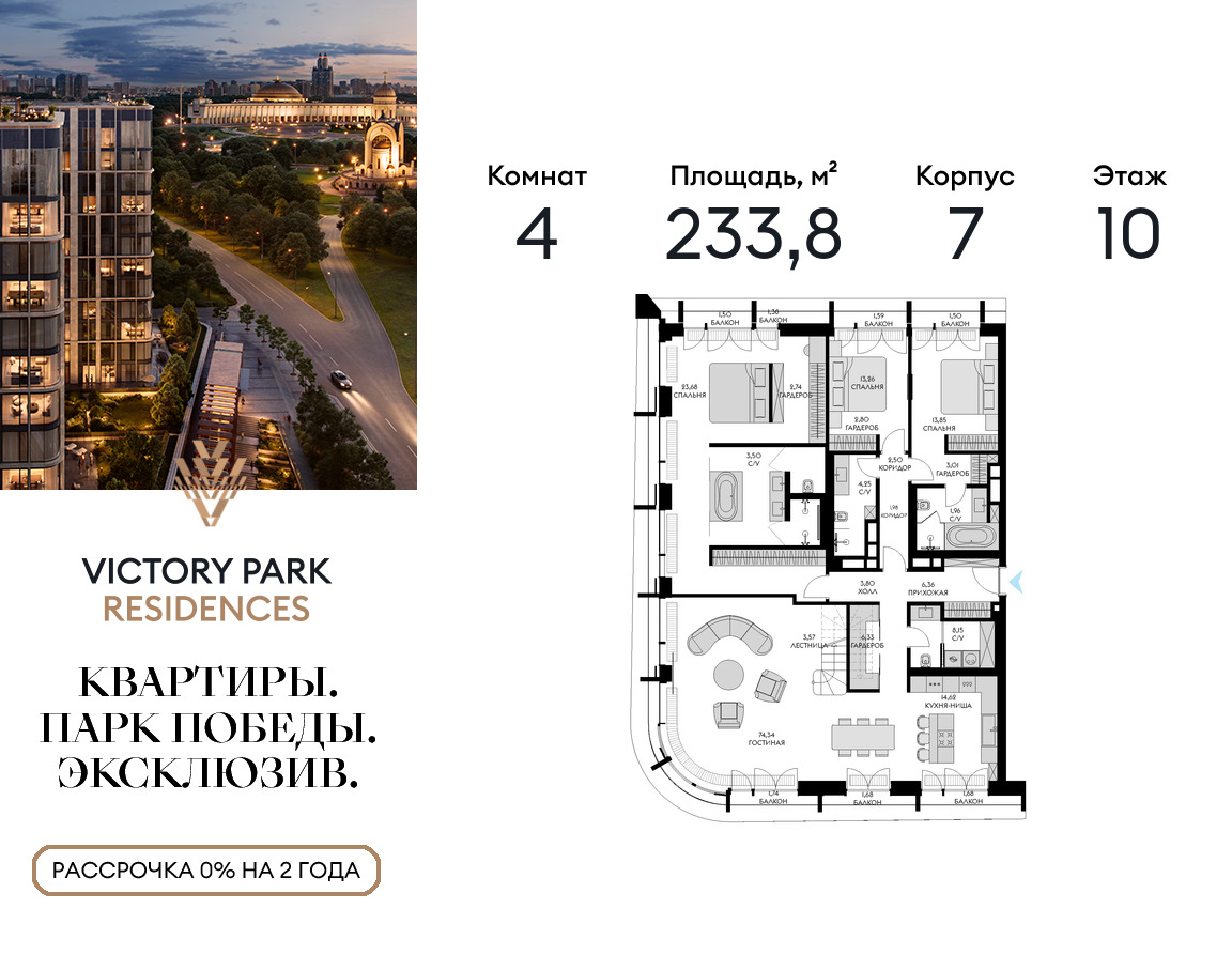 Четырехкомнатные квартиры в ЖК Victory Park Residences (Виктори Парк Резиденсез)