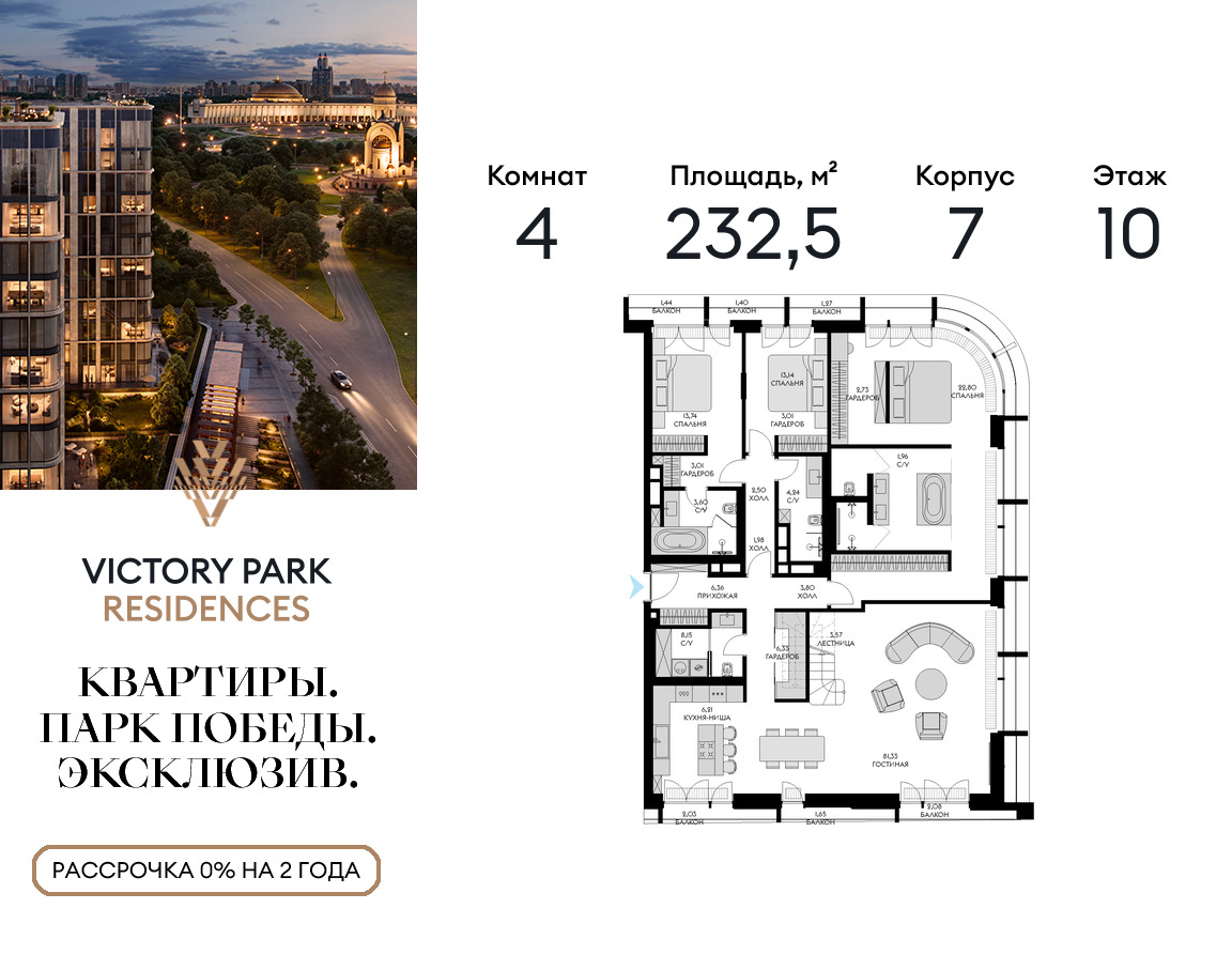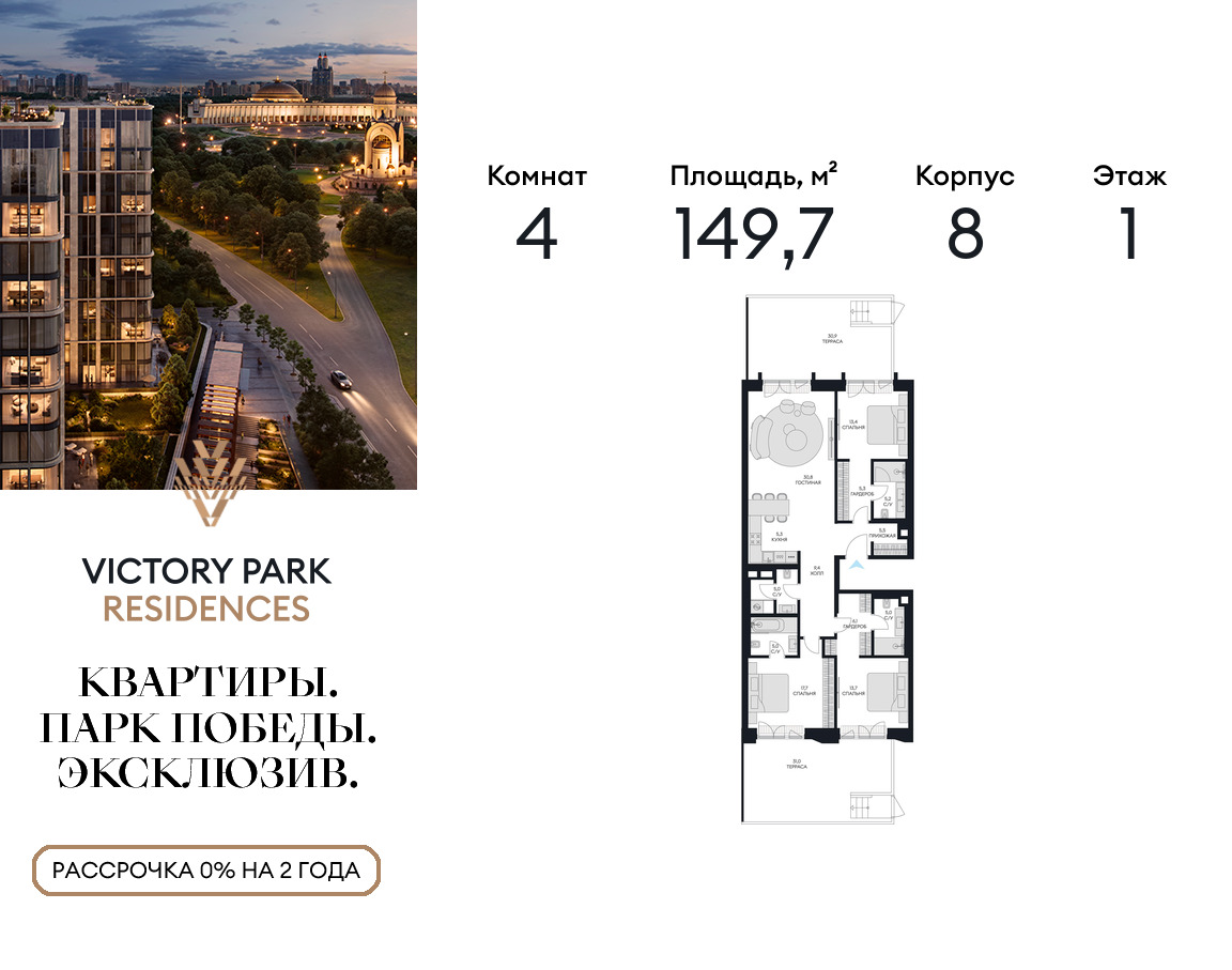 Четырехкомнатные квартиры в ЖК Victory Park Residences (Виктори Парк Резиденсез)